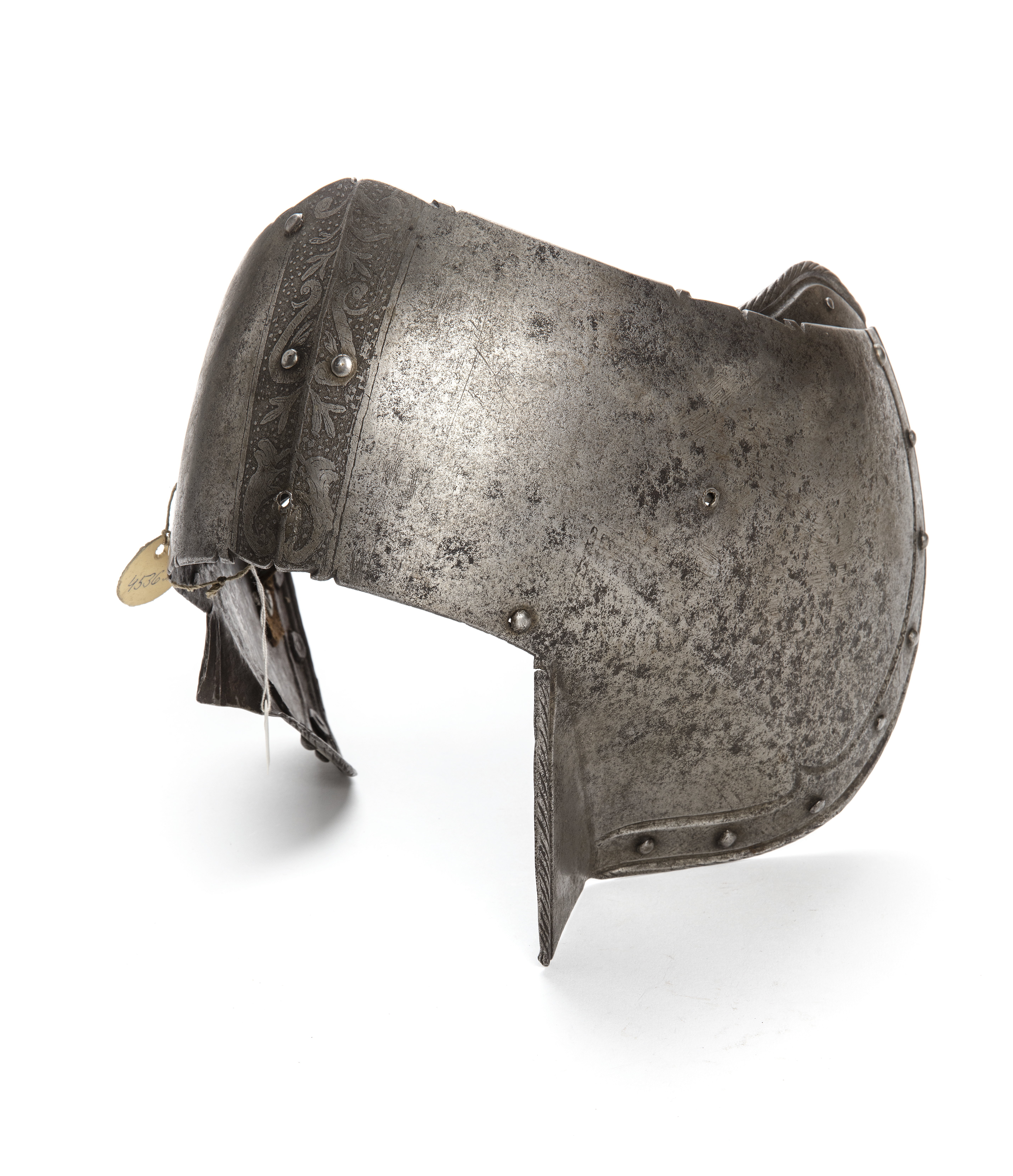 Dessa rustningsdelar tillhör en rustning som inkom till Livrustkammaren genom Karl XV:s testamente. Den hade tidigare varit överintendenten Fritz von Dardels ägo. Till denna rustning, som tillverkats i Nordtyskland under 1500-talet mitt, tillverkades under 1800-talet kompletterande delar. Dessa avlägsnades år 1894 men finns fortfarande kvar i Livrustkammarens samlingar.