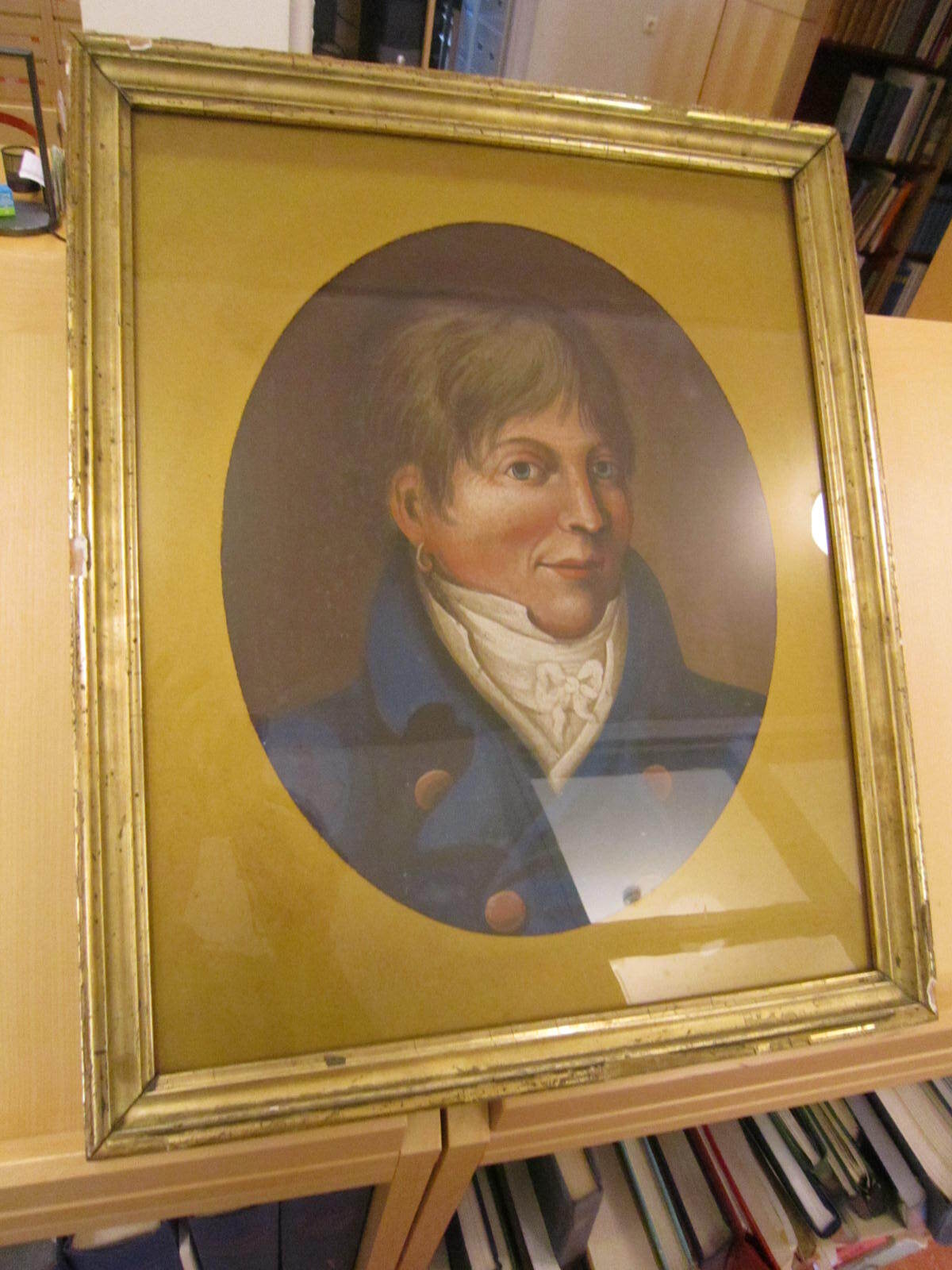 Gouacheporträtt av Eduard Ludendorff (1790–1824). Trekvartsprofil från höger. Ludendorff bär en blå rock och har en ring i höger öra. Porträttet är målat 1821 av Bengt Frökenberg (1776–1845) dekorationsmålare och rådman i Linköping.