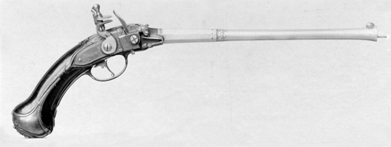 Flintlåsmagasinpistol med roterande vals, Emanuel Wetschgi, Augsburg ca 1700, serienr 20.