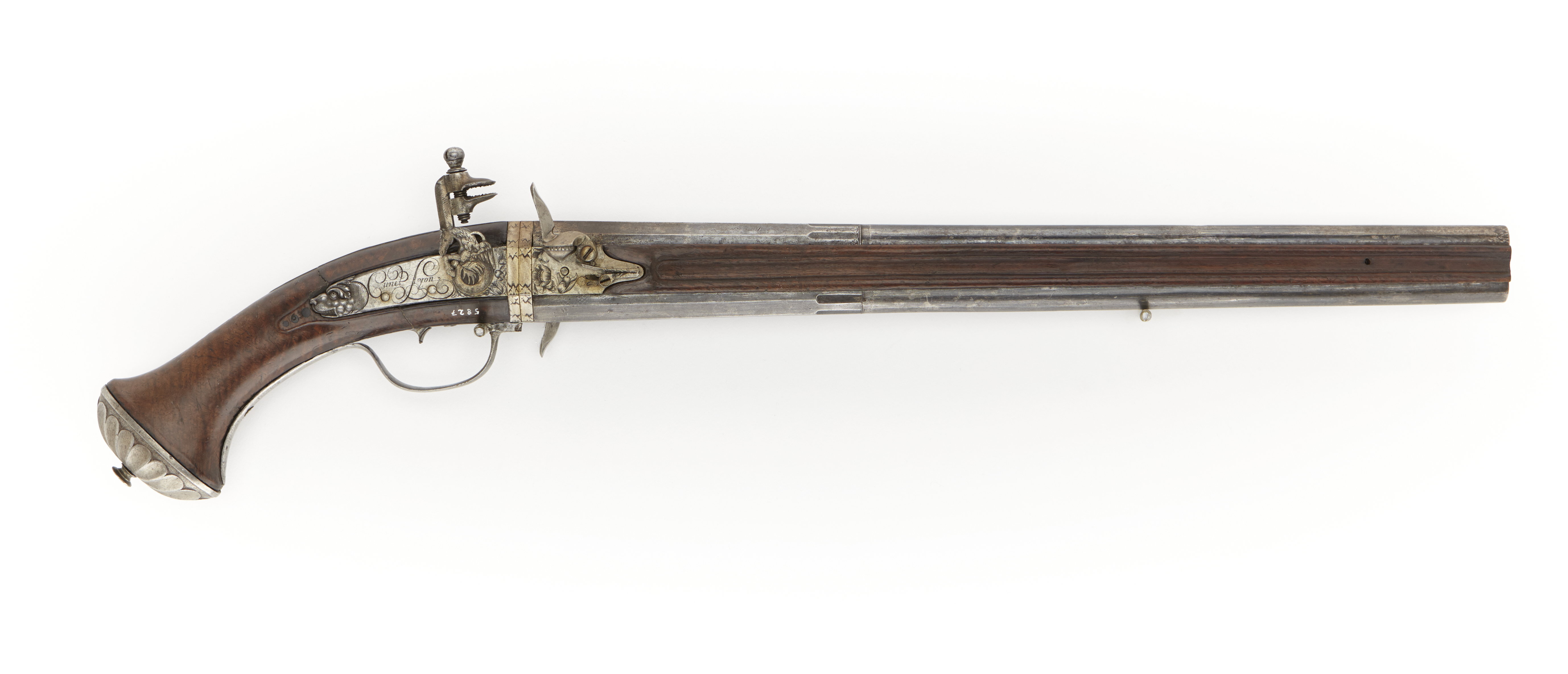 Flintlåswenderpistol, signerad Claude Cunet, Lyon, ca 1650- ca 1660.
