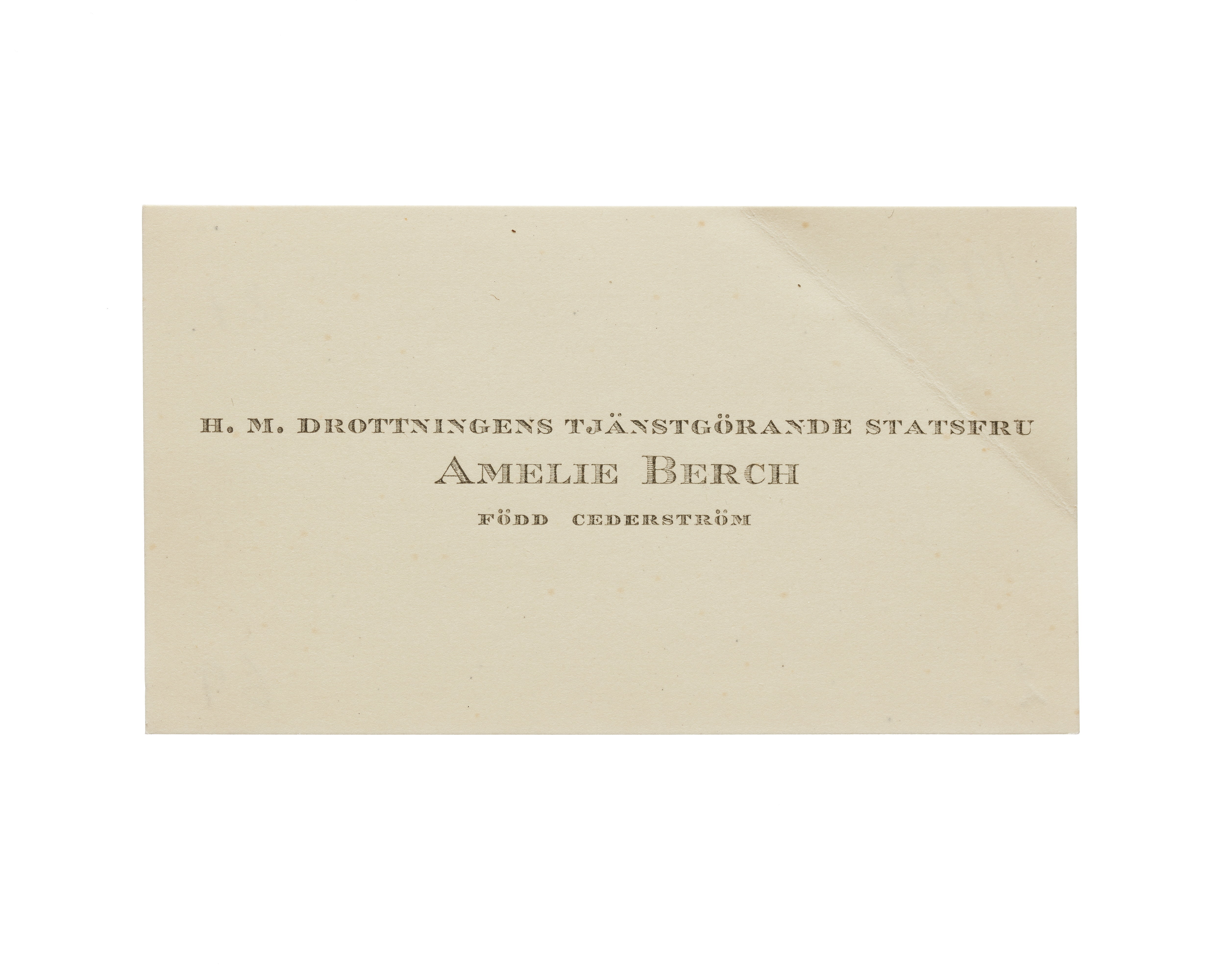 Visitkort från Amelie Berch f. friherrinna Cederström.