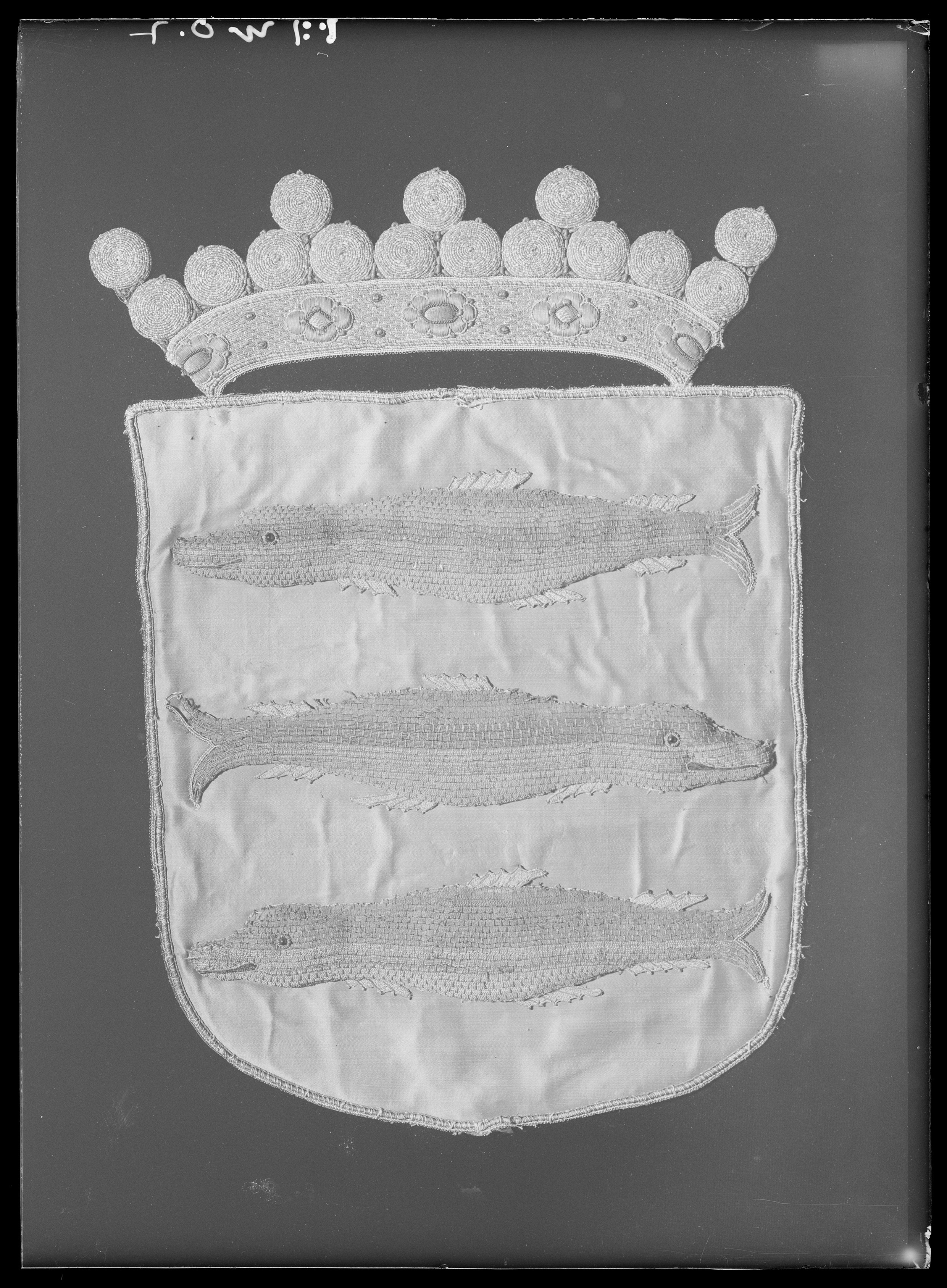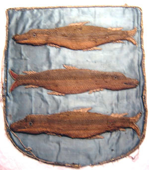 Ångermanlands vapen, broderat för hästtäcke buret vid Karl X Gustavs begravning den 4 november 1660.