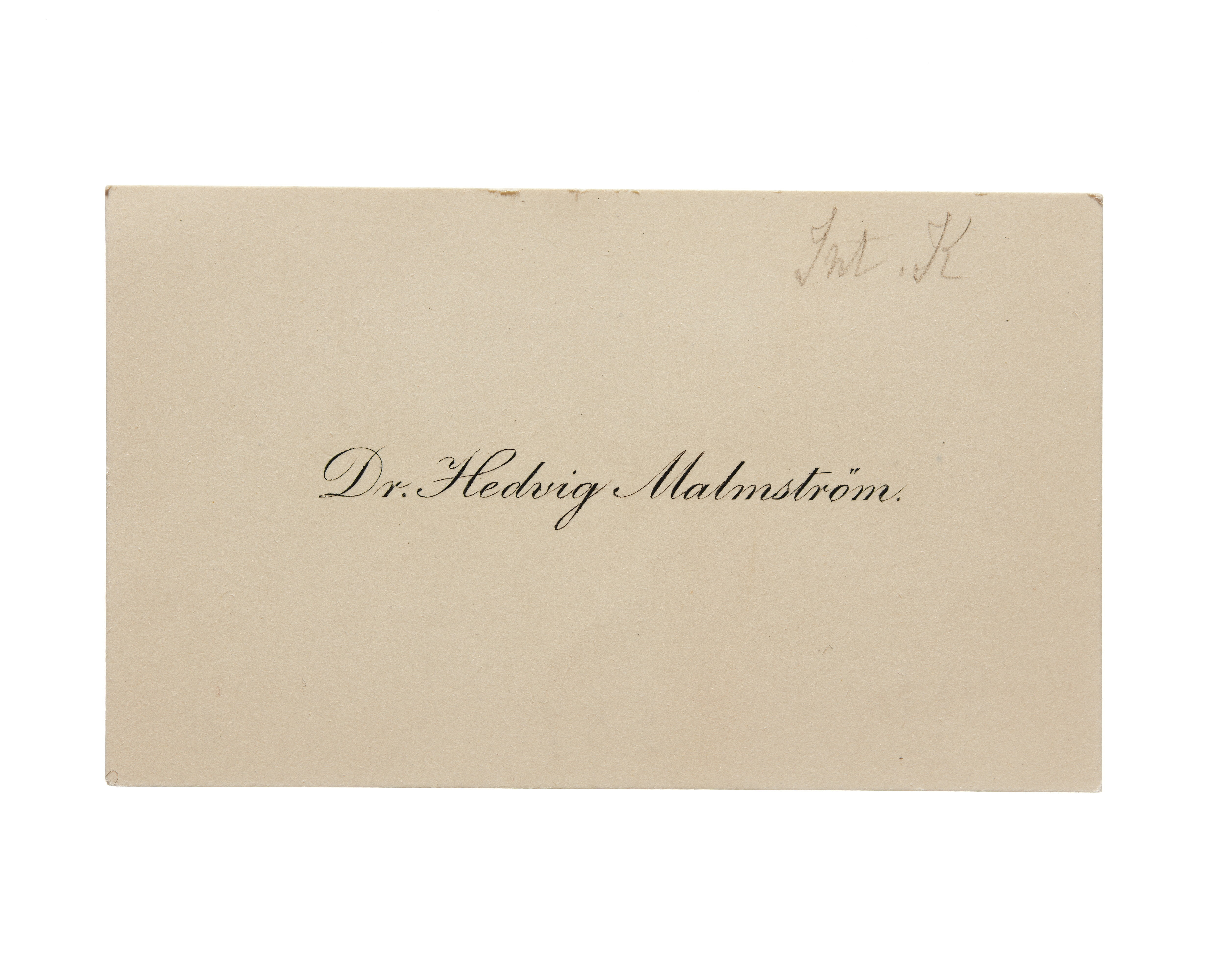 Visitkort från Dr. Hedvig Malmström.