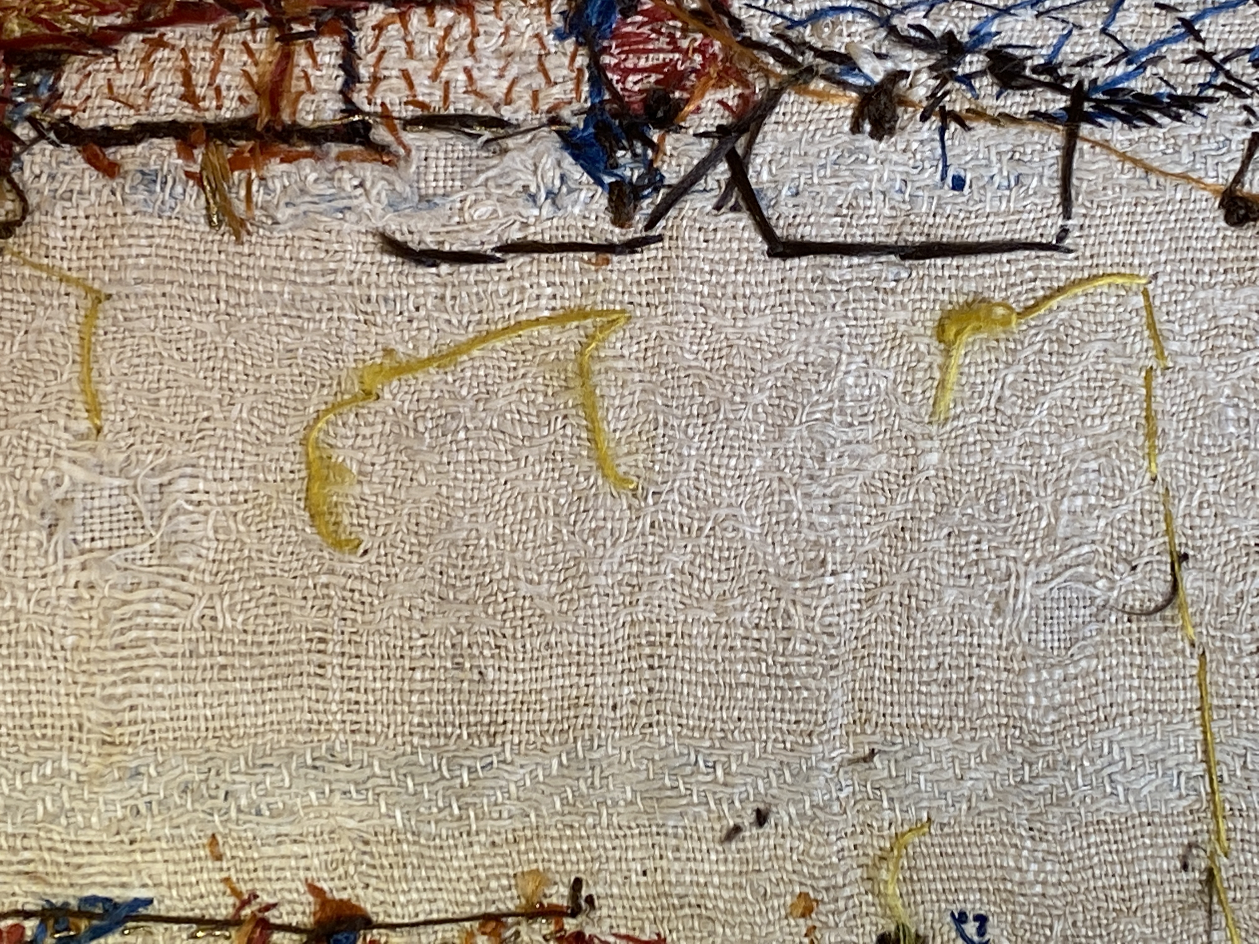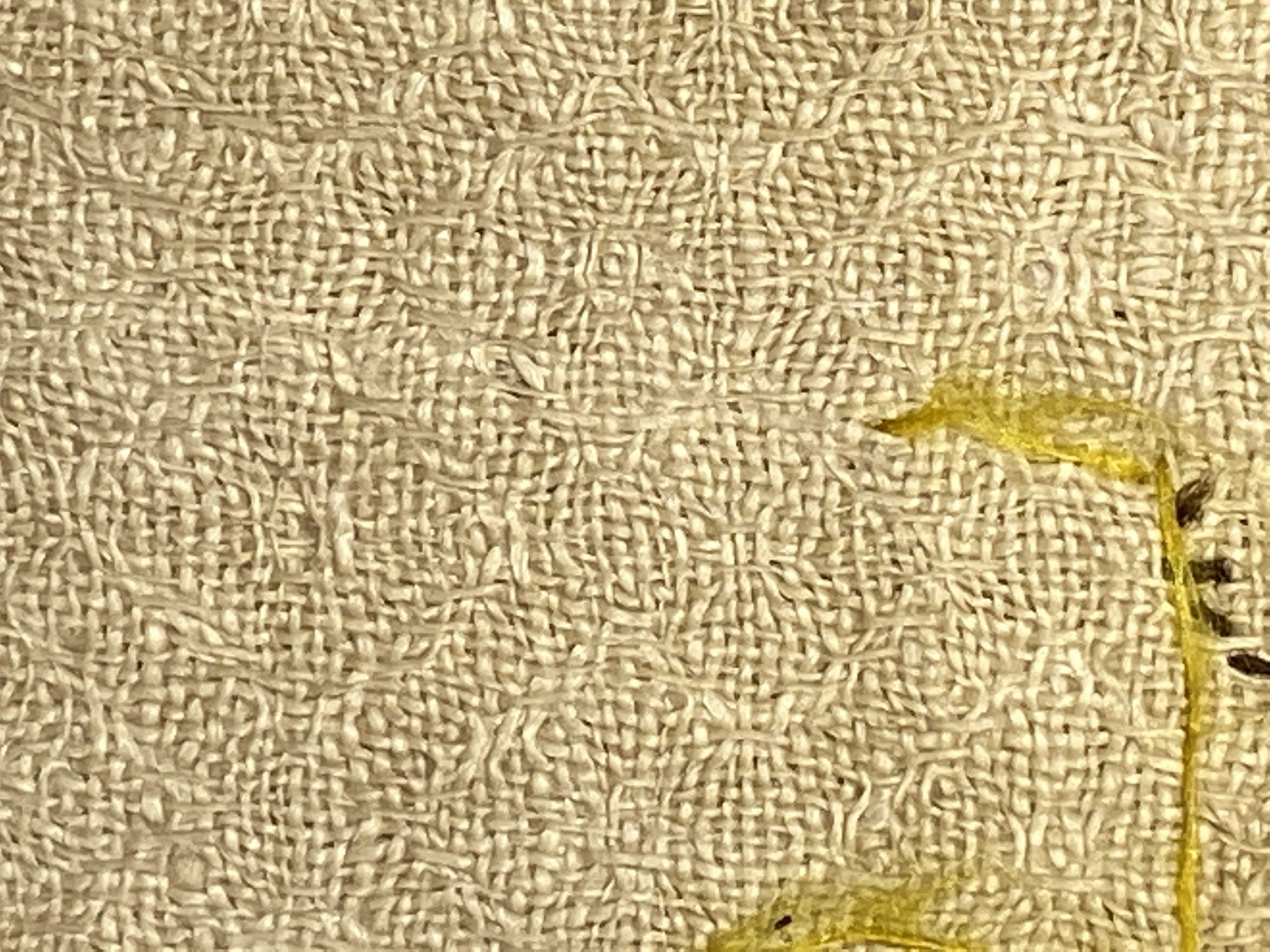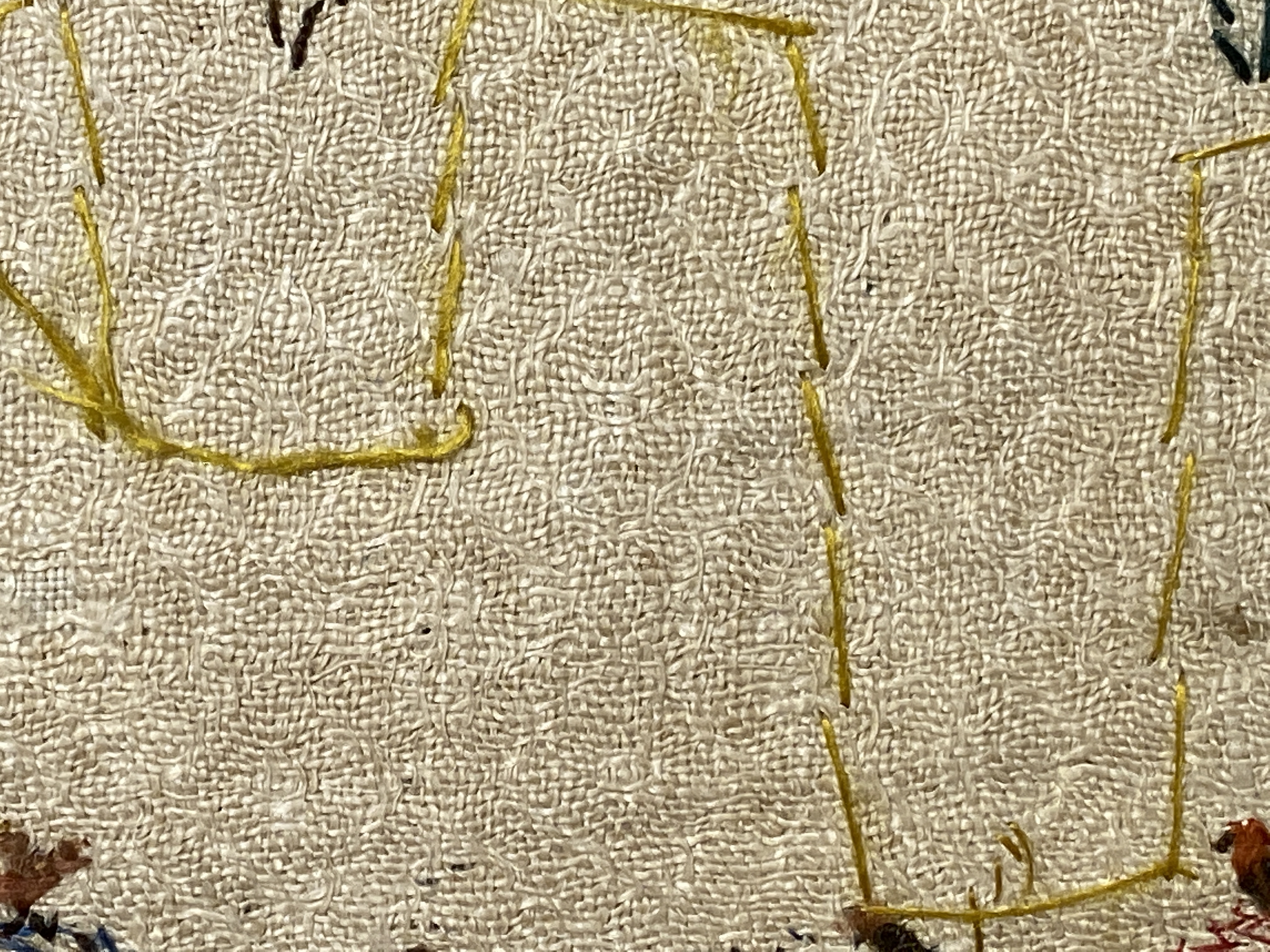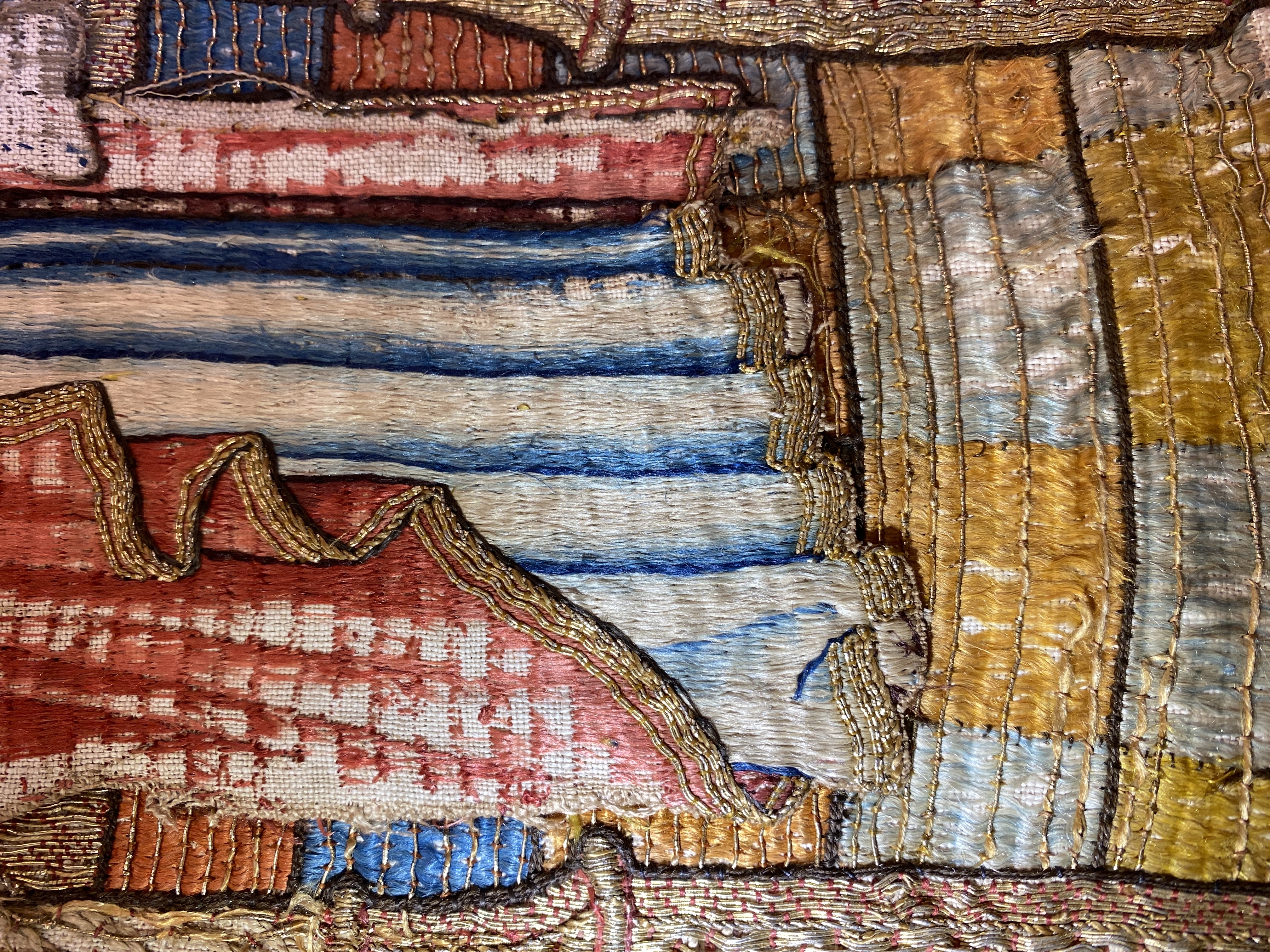 Figurbroderi, S. Petrus, S. Katarina och S. Jakob dä. Inköpt 1890.(Utställd 1997) Från en okänd kyrka kommer det nederländska brämet med St Petrus, St Katarina och St Jakob d.ä.