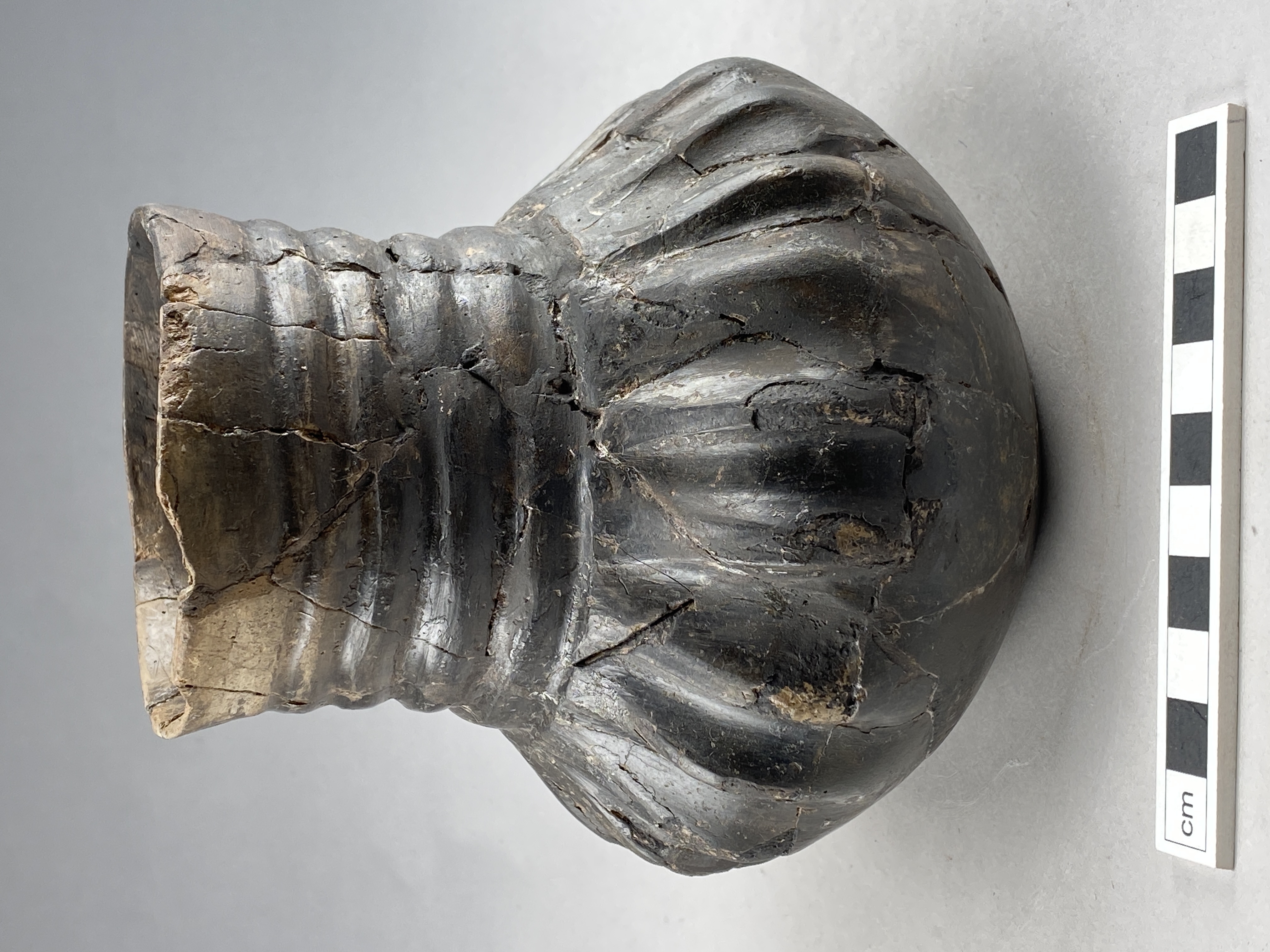 Bägare med hög smal hals och lågt sittande buk
