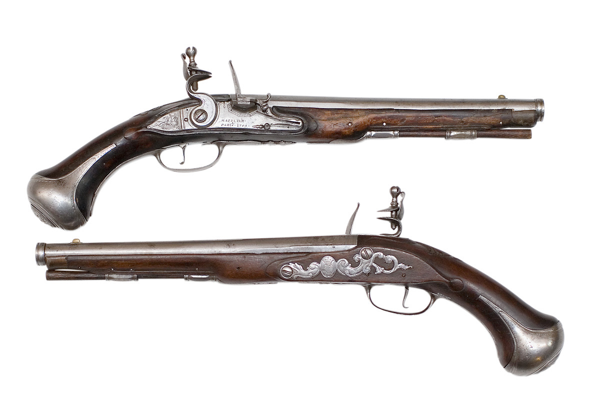 Flintlåspistol, Mazelier, Paris 1704, reparerad och signerad av Johan Tellberg, Norrtälje före 1719,