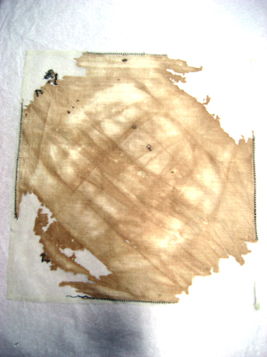 Kvadratisk halsduk av tunnt vitt linne. Halsduken kantas av en 2 mm bred fåll med svart broderi. I två av hörnen förekommer en fragmentarisk dekor i ett svart broderi, föreställande en volut och en kvist. Hörnen på duken saknas. Troligen har det förekommit broderier i samtliga hörn. Halsduken är gulaktigt missfärgad. Det förekommer spridda hål med brunaktiga kanter. Halsduken är konserverad med krepelin. Halsduken syddes tillsammans med Torsångskarlens dräkt samt tre andra dräkter till det museum som inrättades på 1750-talet, i Ornässtugan där Gustav Vasa övernattat. Dräkterna syddes av skräddare Erik Säterbeck, medan halsklädena till dem tillverkades lokalt av kvinnor i Gagnef och skickades till Brandberg av skolmästaren där, Johan Klingberg. Föremålen fanns utställda i Ornässtugan fram till 1950-talet då de plockades ned för konservering i Livrustkammarens konserveringsateljé.