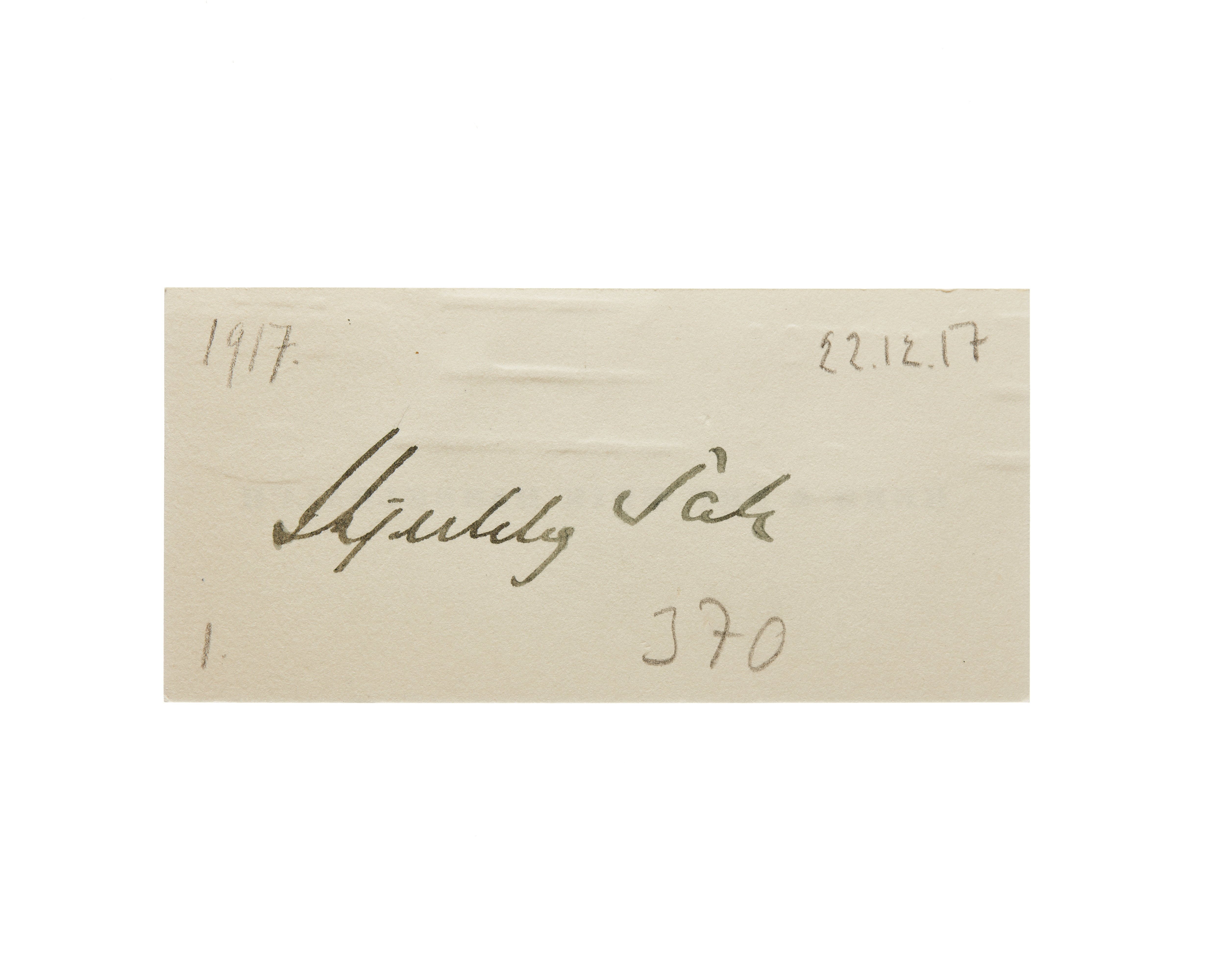 Ett visitkort från Herr Erik Hasselbalch och Fru Hasselbalch, daterat 1917. Handskrift (baksidan) "....".