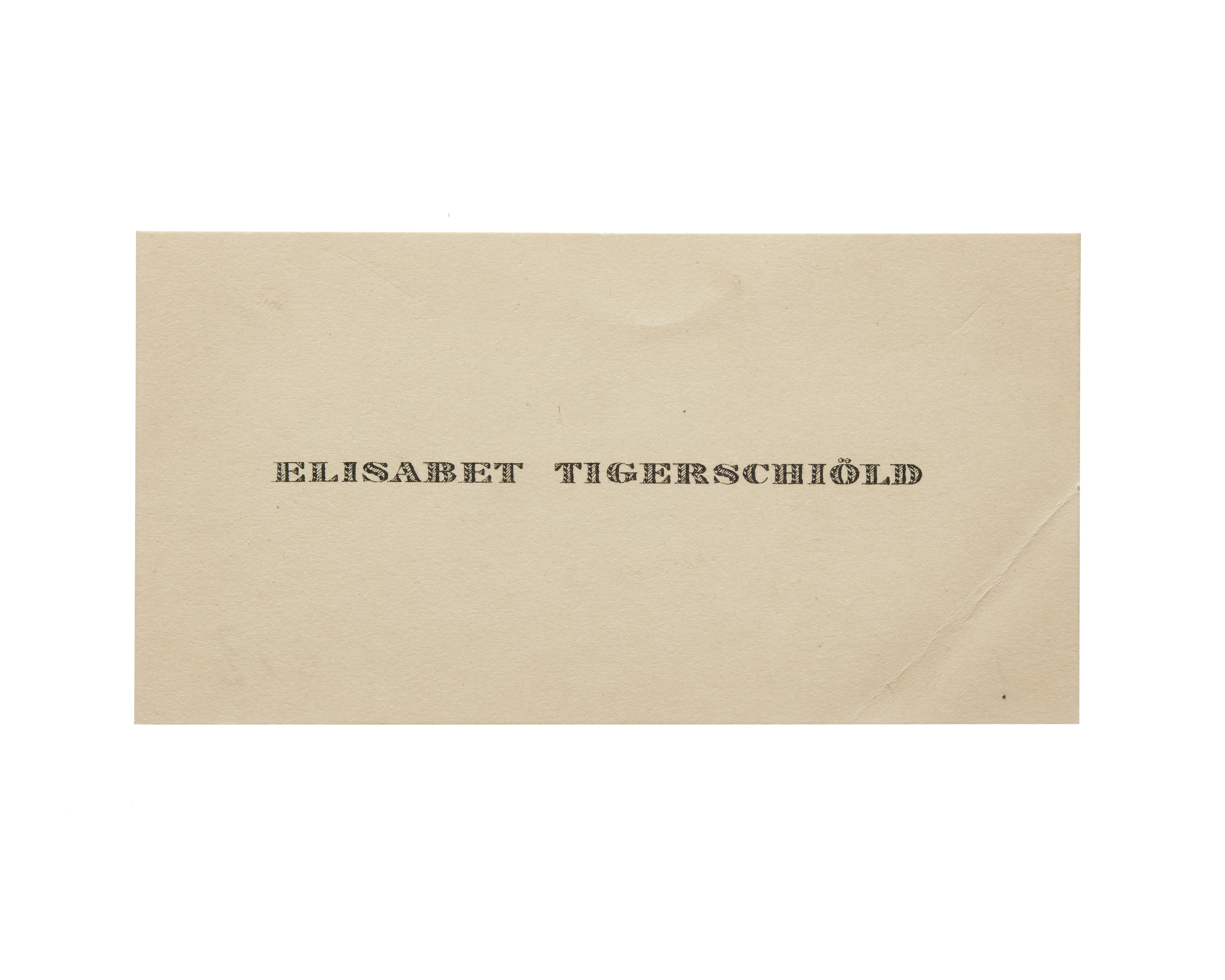 Ett visitkort från Elisabet Tigerschiöld, daterat 1921, vikt nedre högra hörnet.