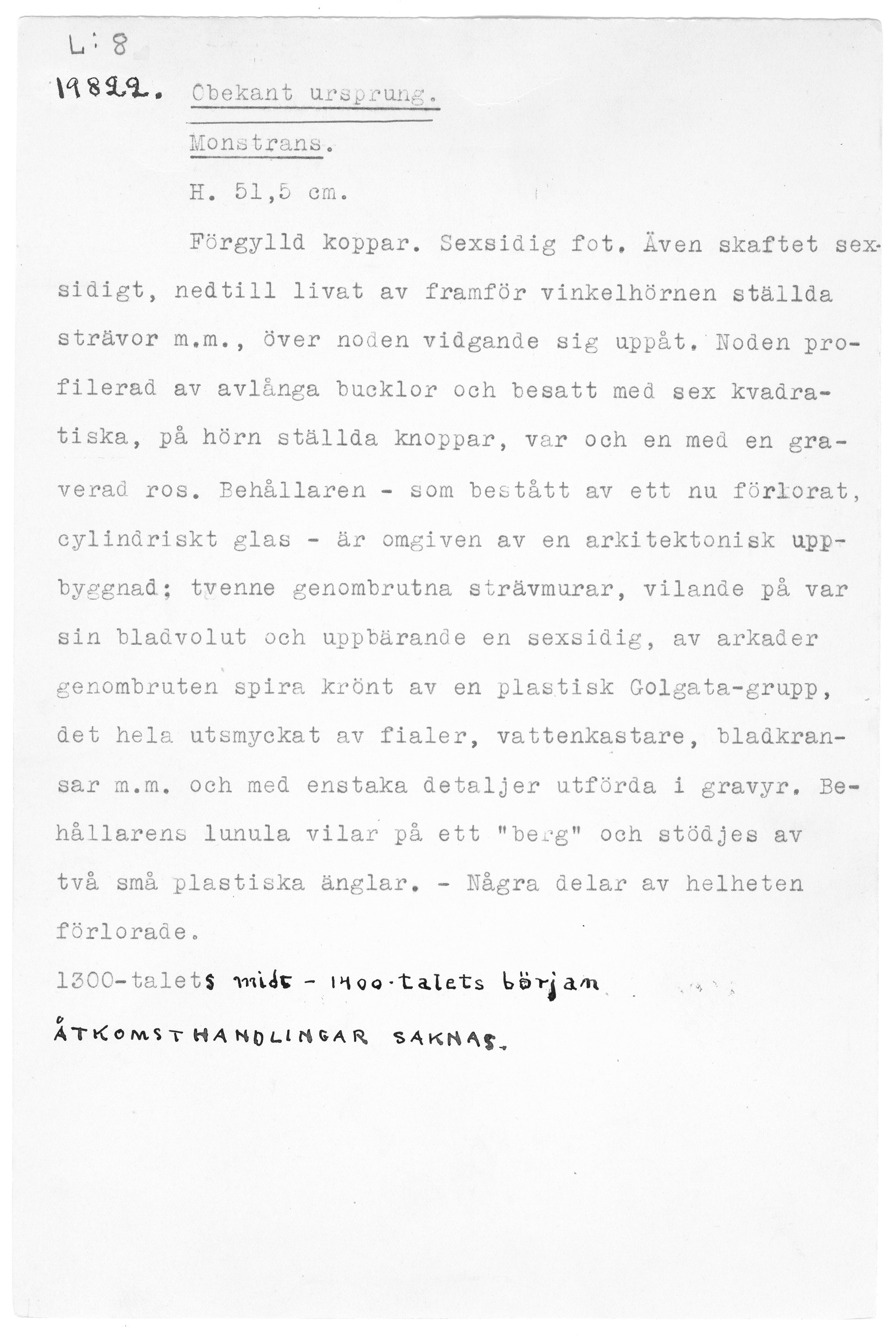 | Föremålsnummer |