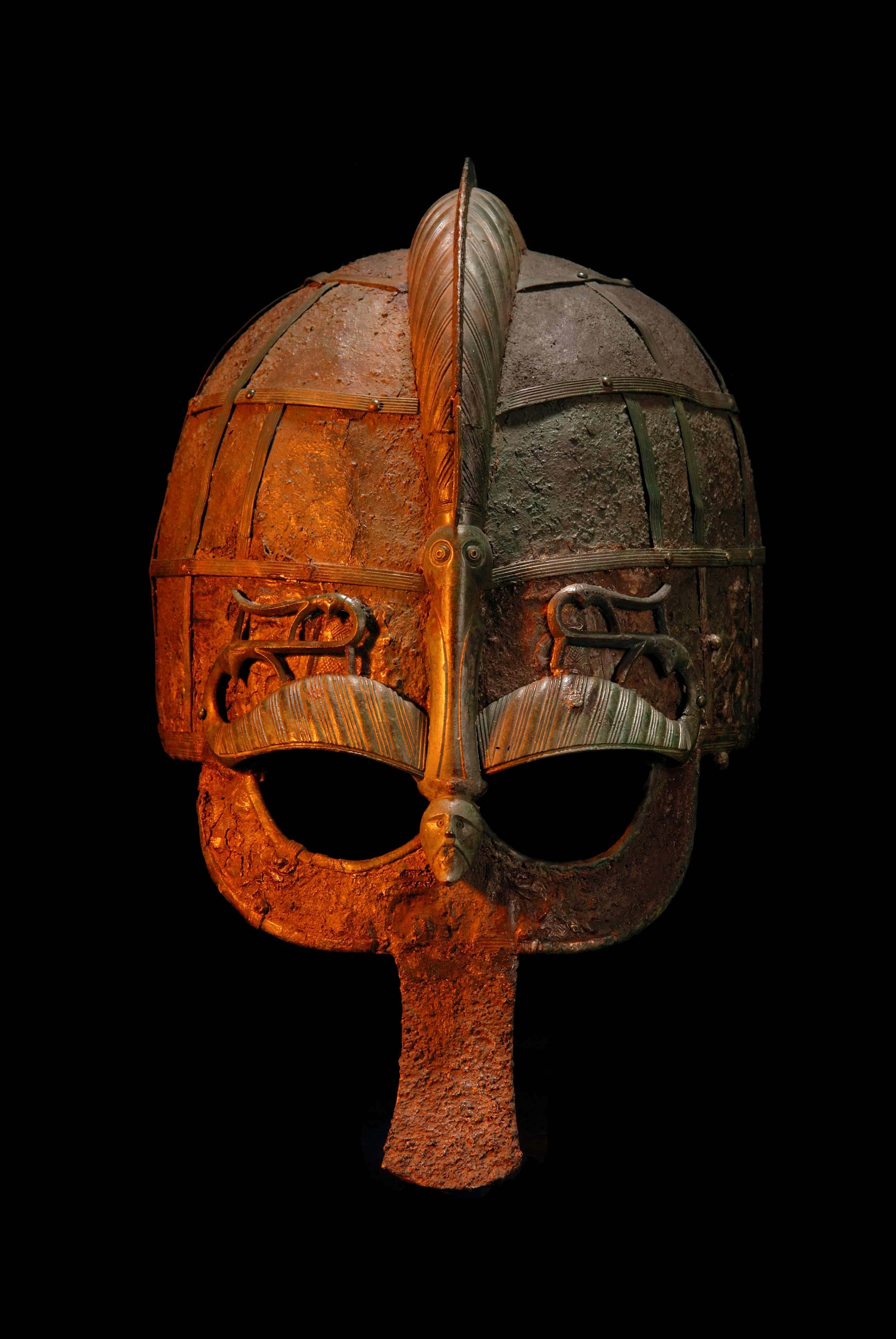 Hjälm med kam. Med ringbrynja som ansikts- oh nackskydd (hjälmbrynja) (Arwidsson grupp B2).