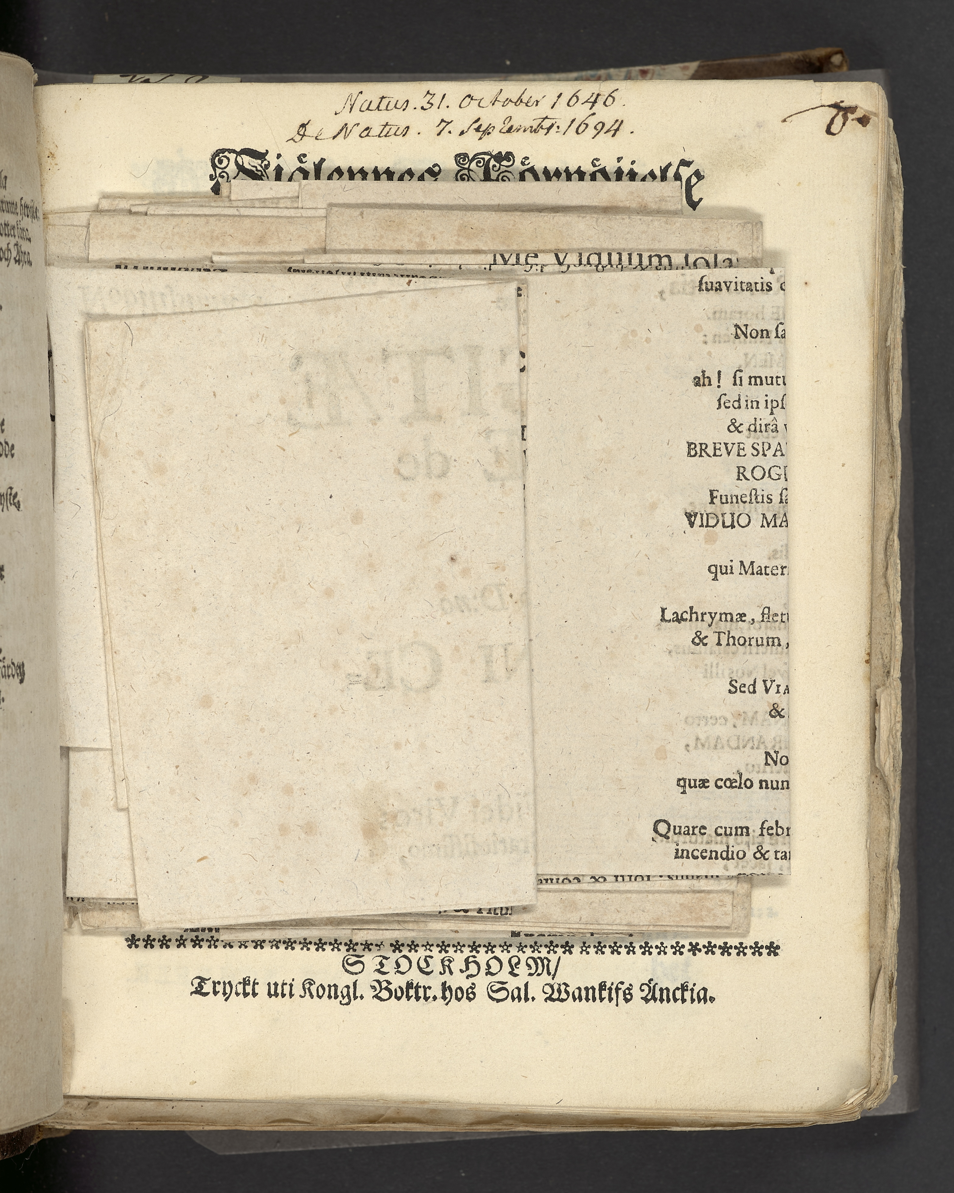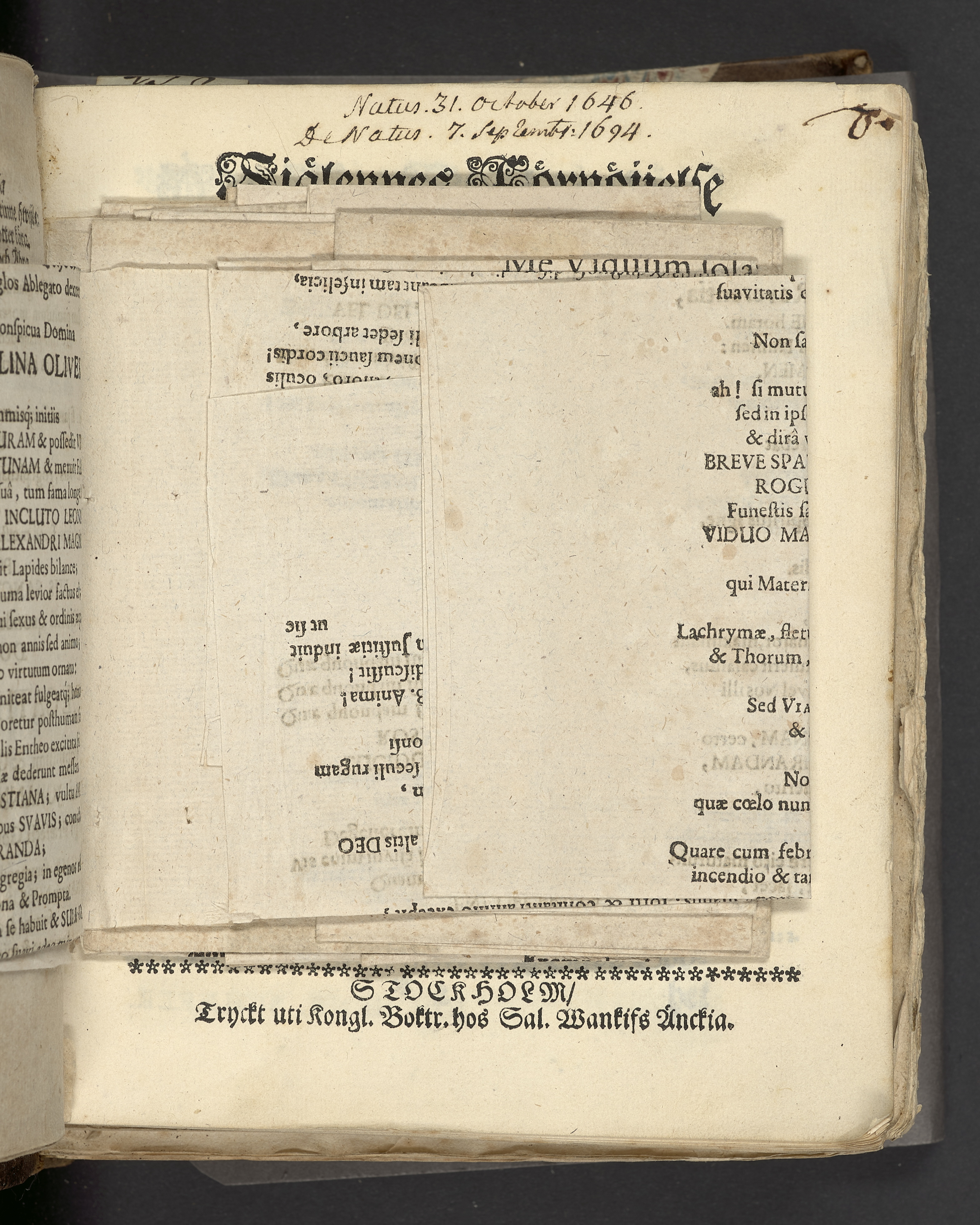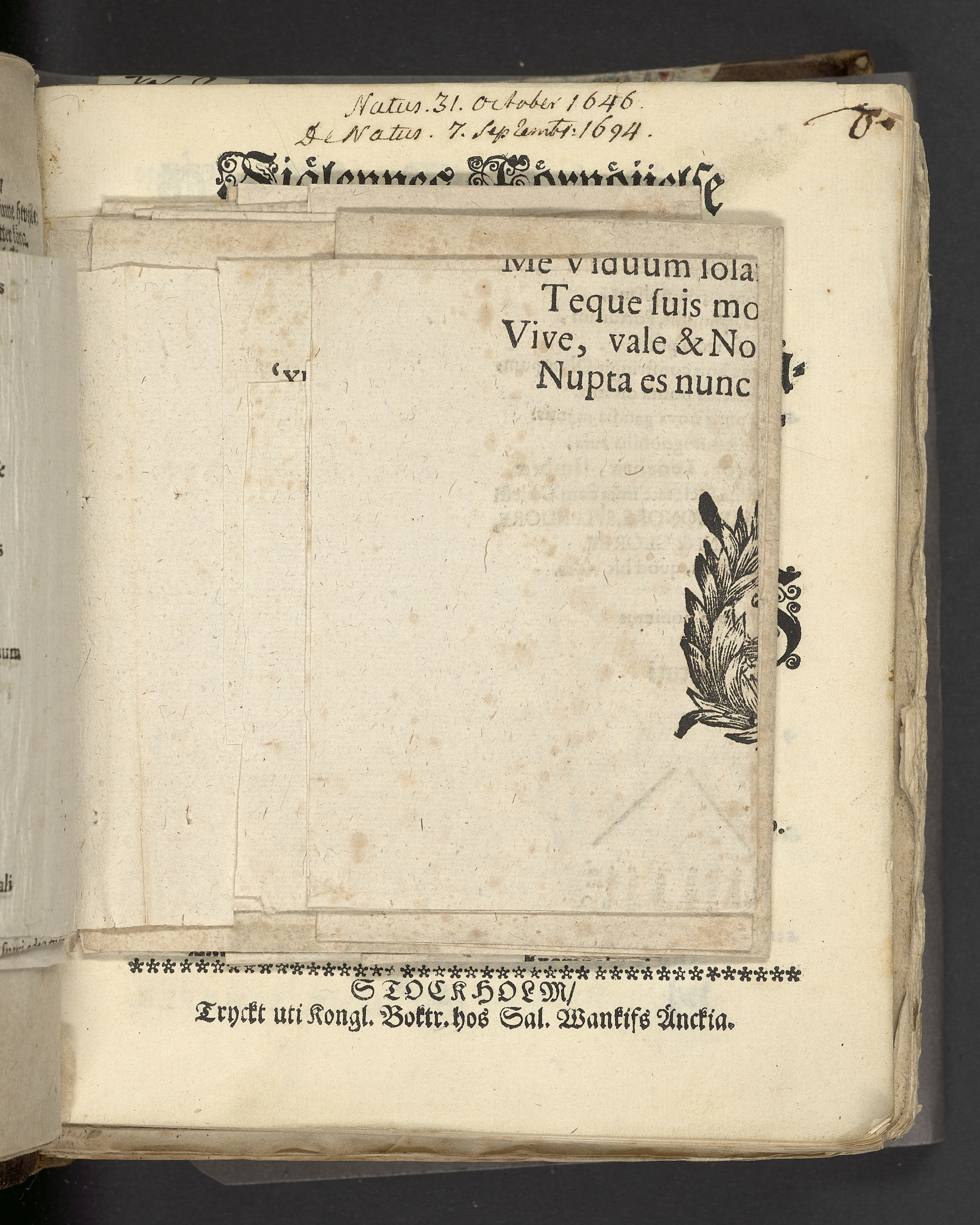 Sacri cineres ... memoriæ dom. Brigitæ Catharinæ de Leyonbergh ... domino Johanni Ceder-Krantz, domino de Wegholm ... offerunteer ... a Nicolao Neogardt.