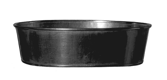 FÄRSFORM av bleckplåt. Oval, med plan botten och något snett utstående kant med en vertikalt gående fals vid vardera änden; kring brädden en trådlagd utstående stav; botten med på utsidan uppvikt kant. Höjd: 5,7 cm.; längd: 20,1 cm.; bredd: 15,3 cm.