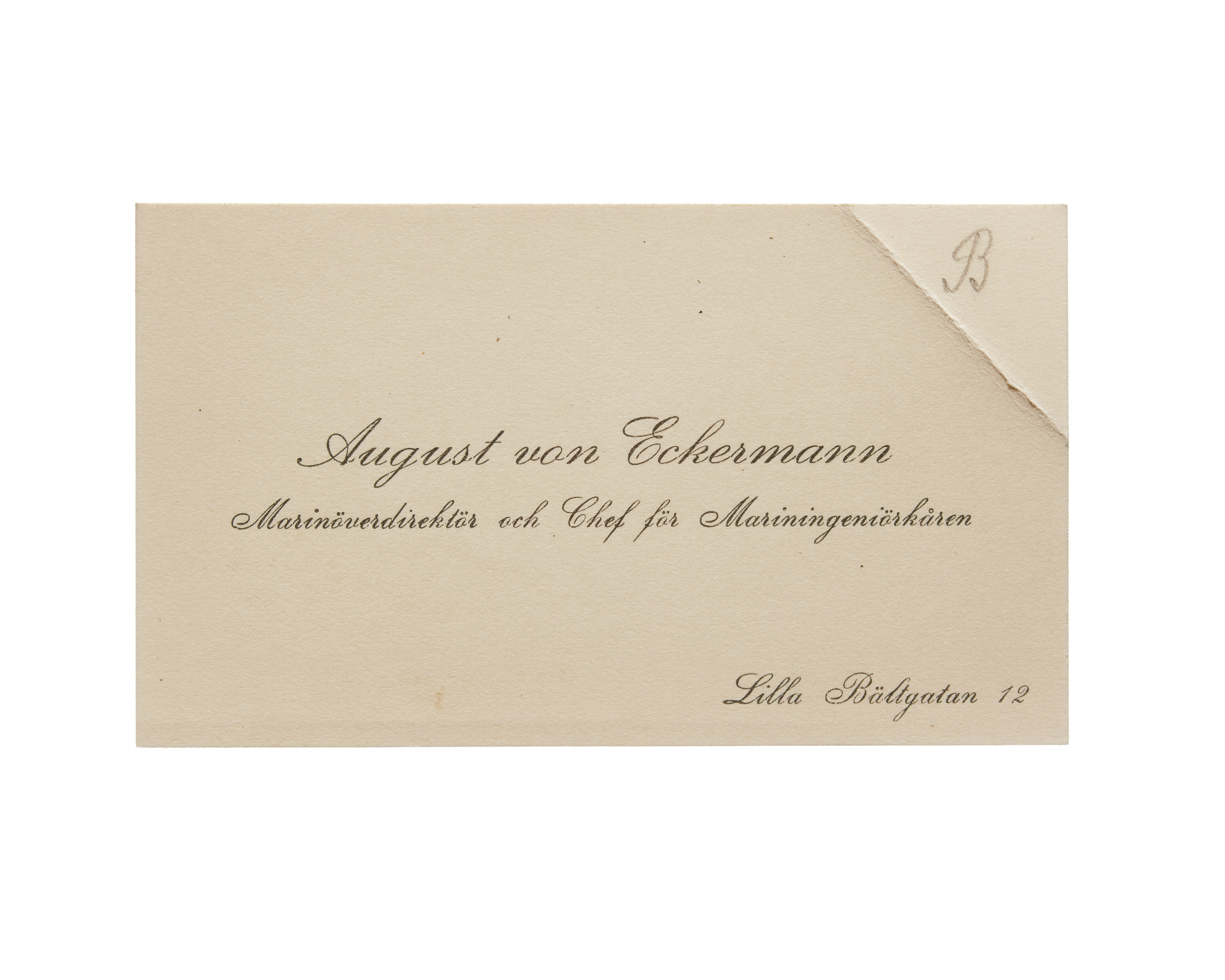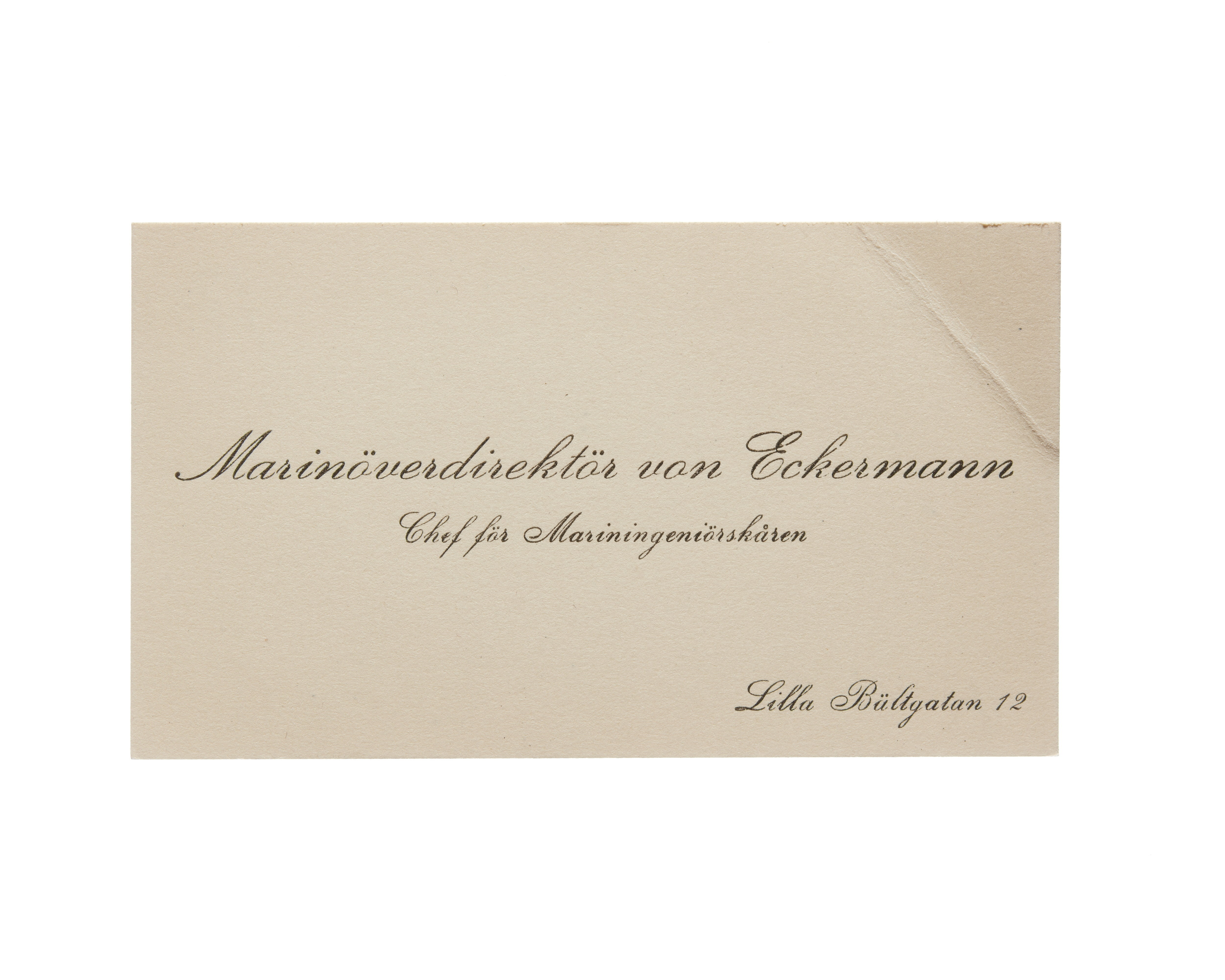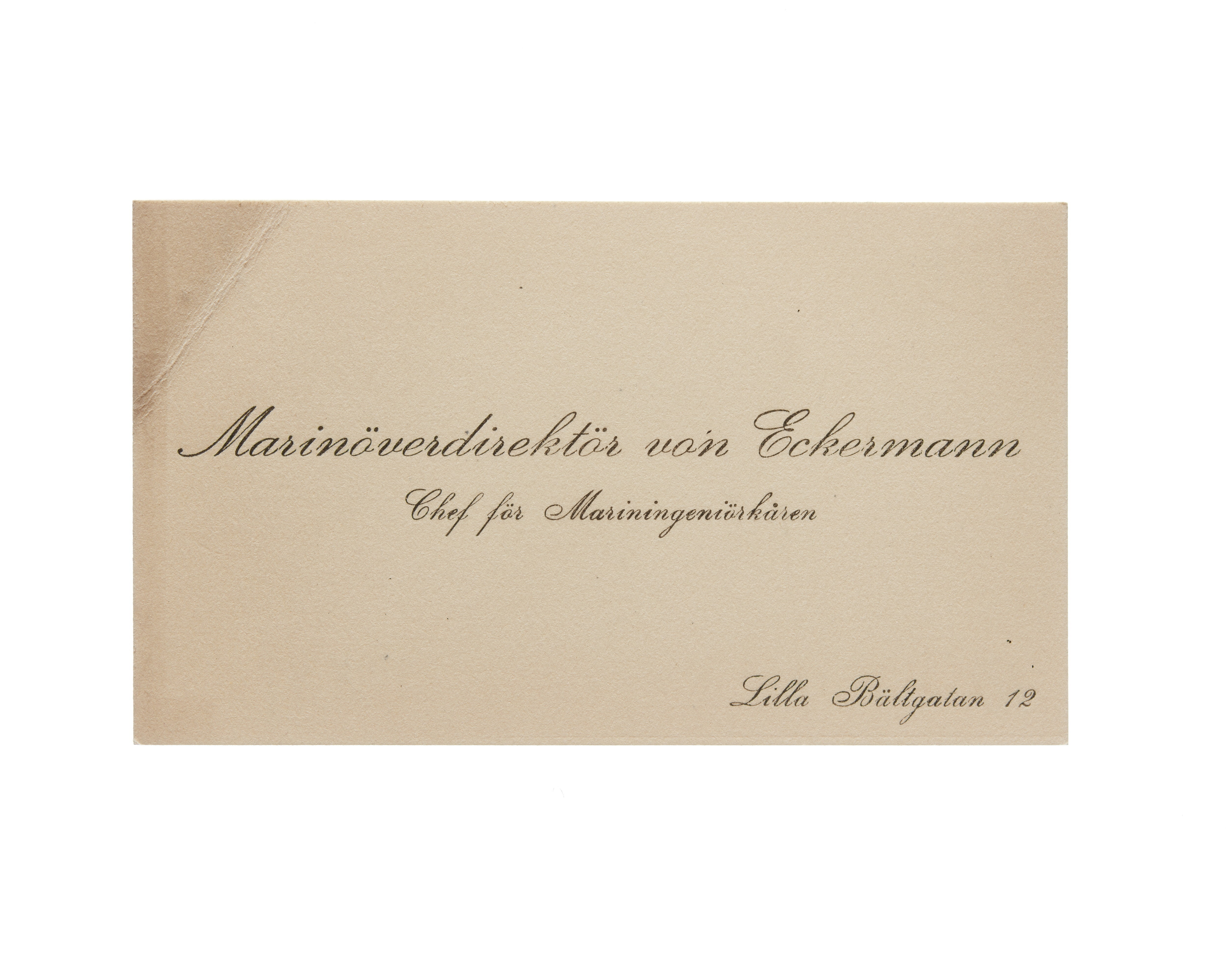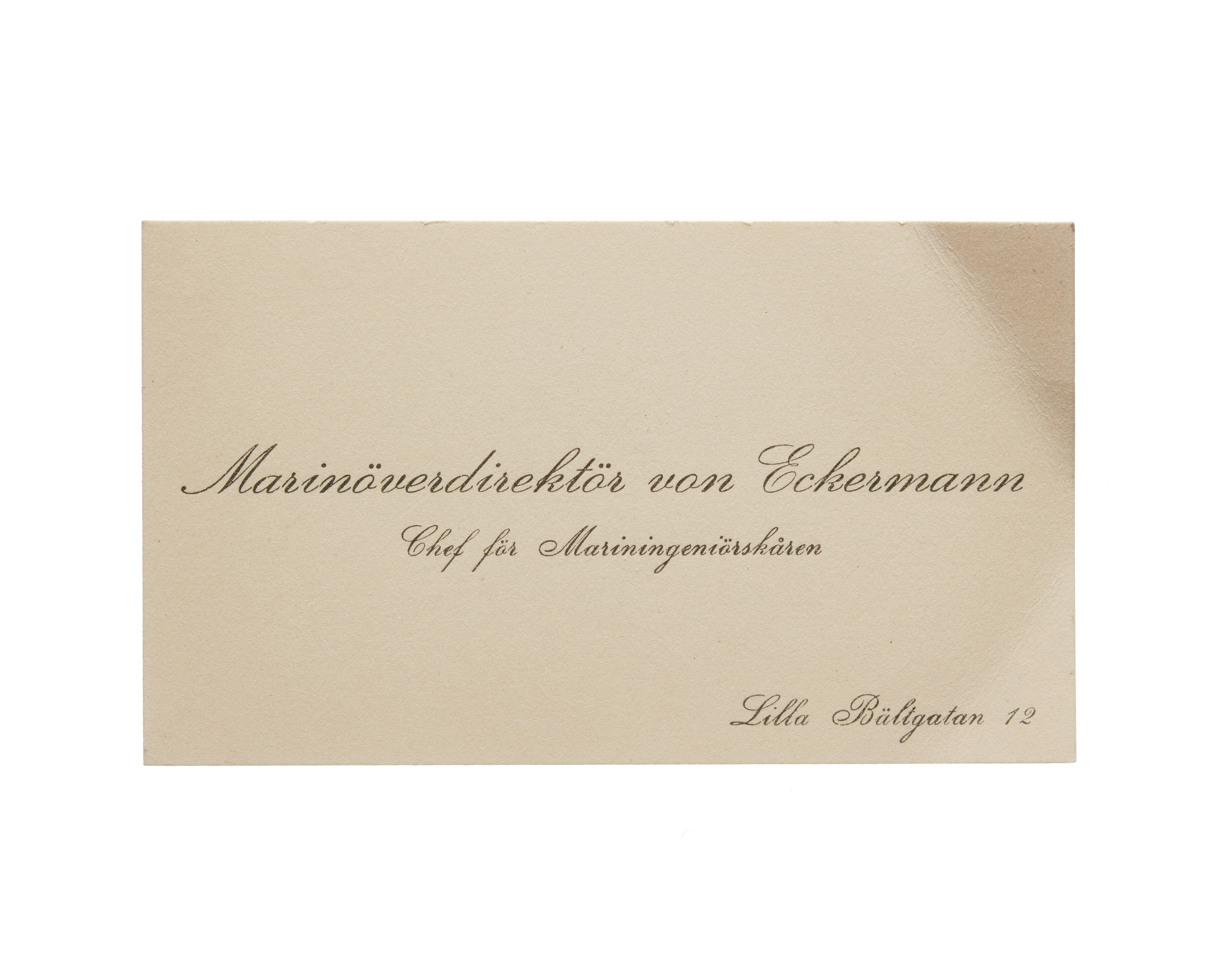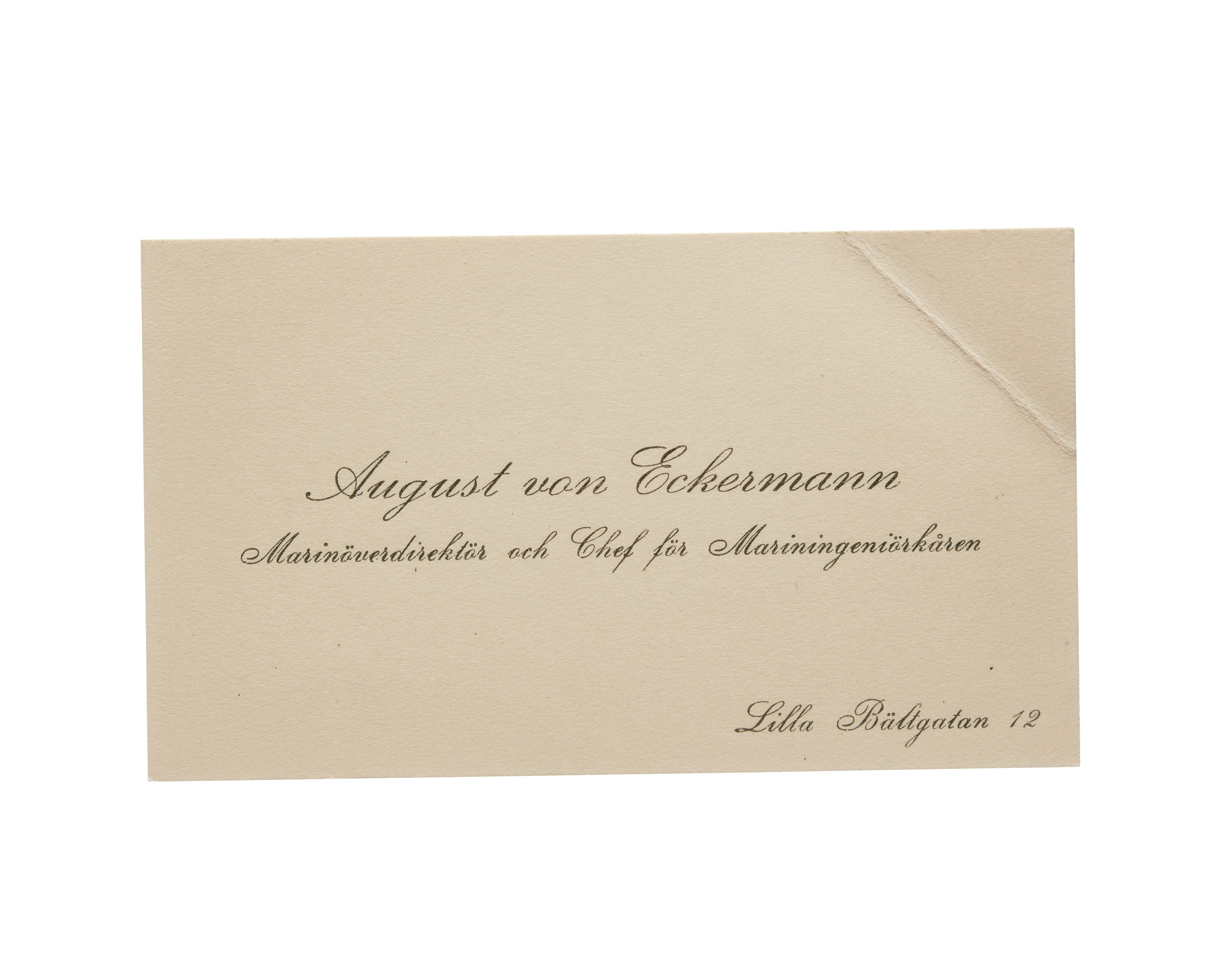 Visitkort från Agust von Eckermann, marinöverdirektör och chef för mariningenjörkåren.