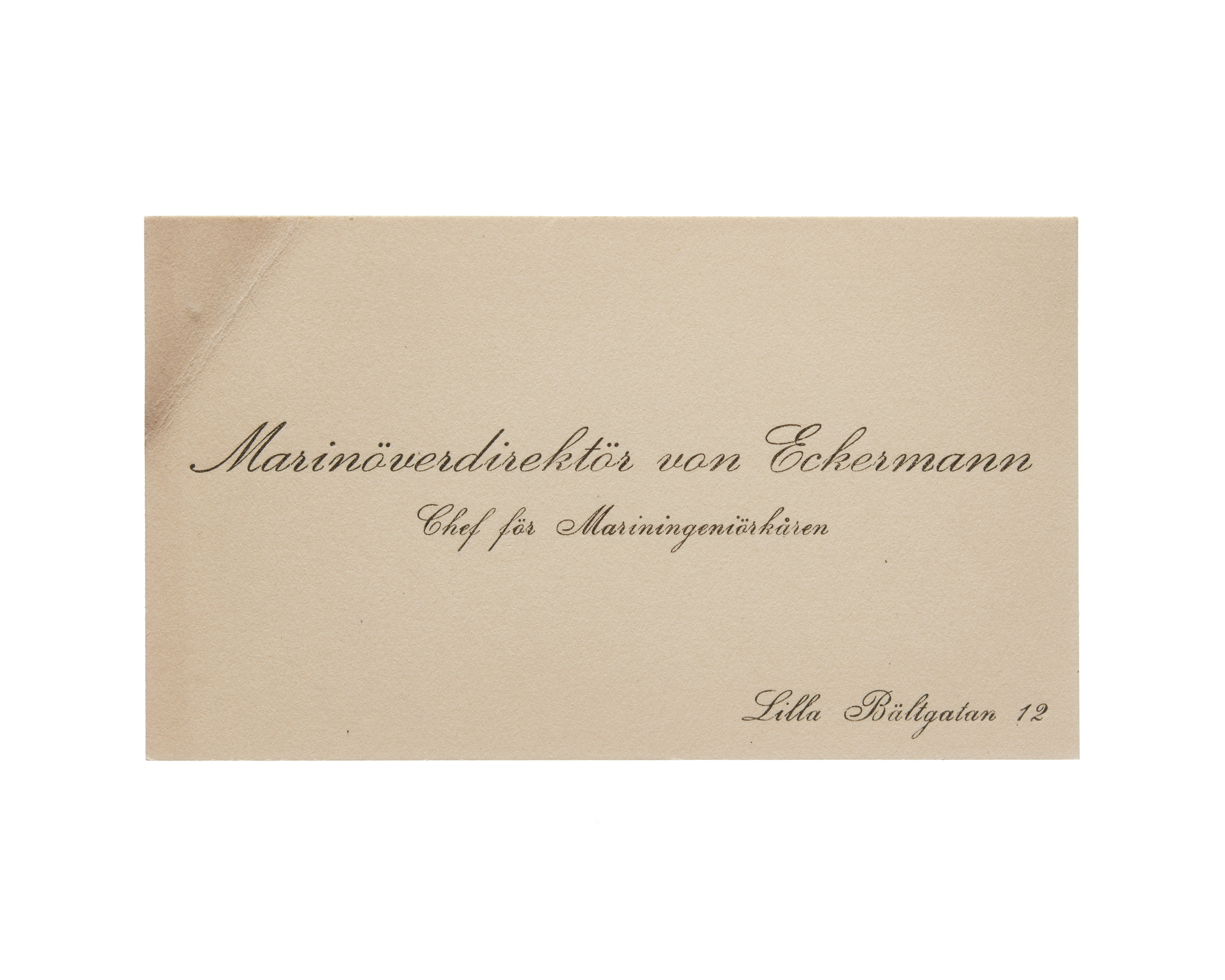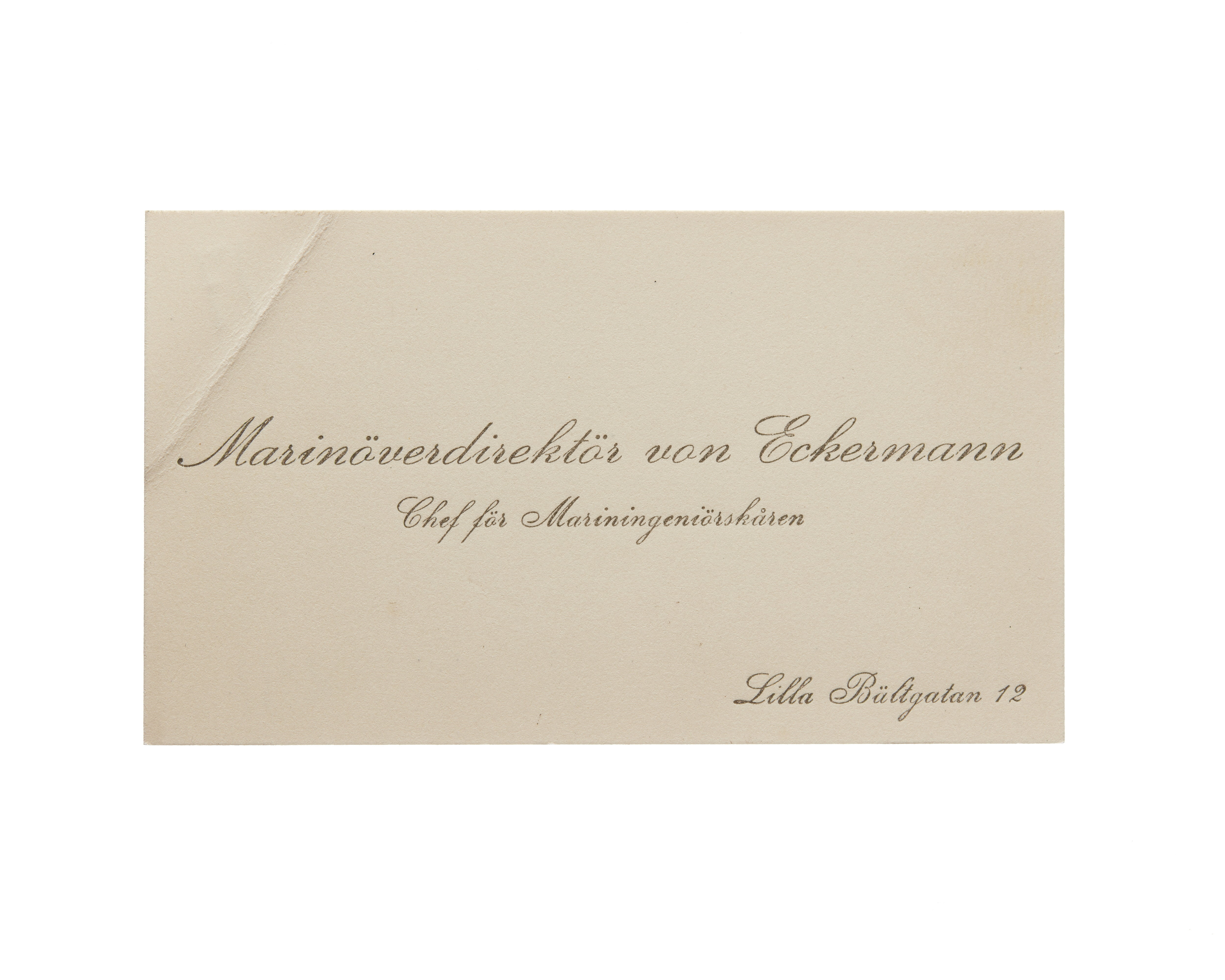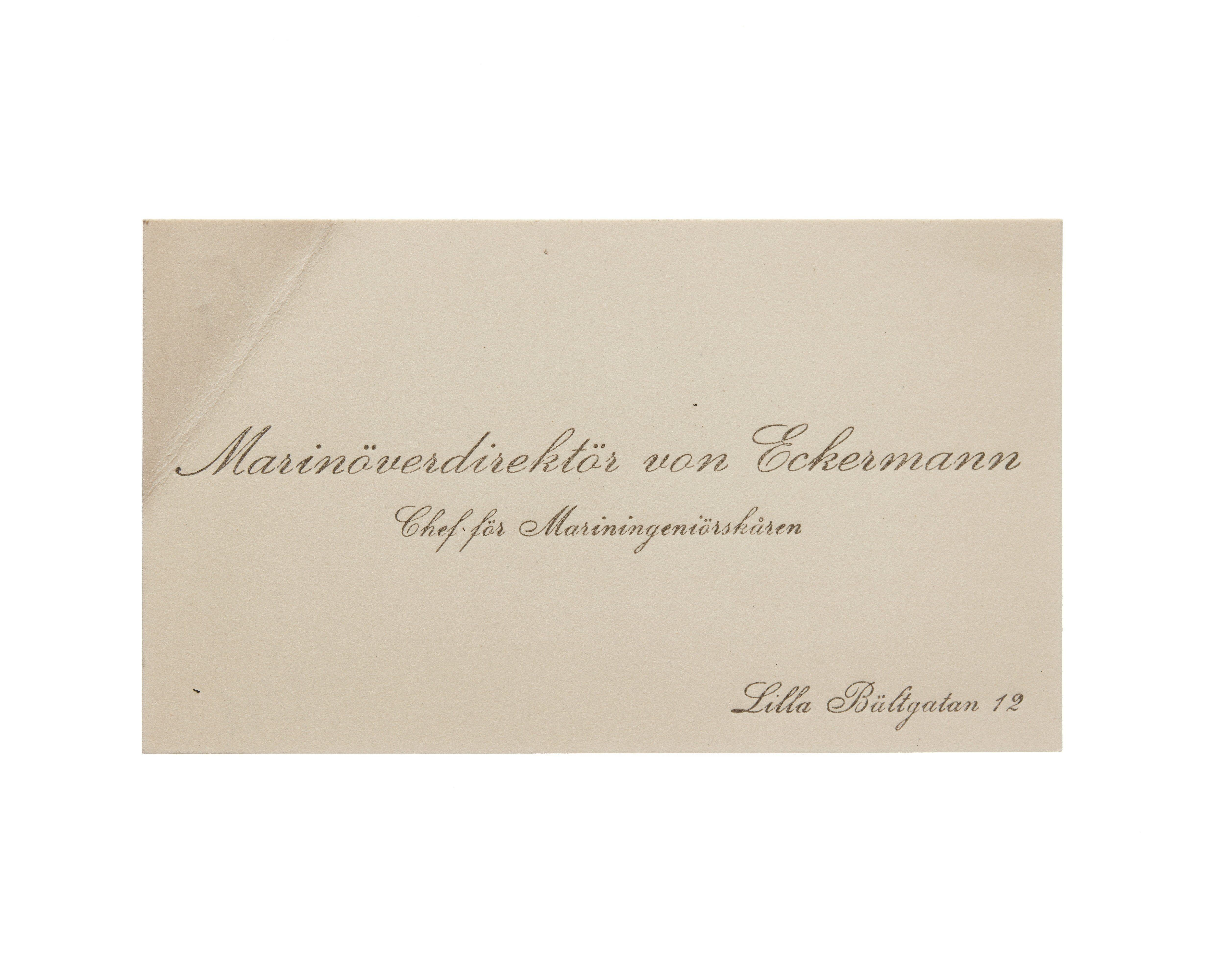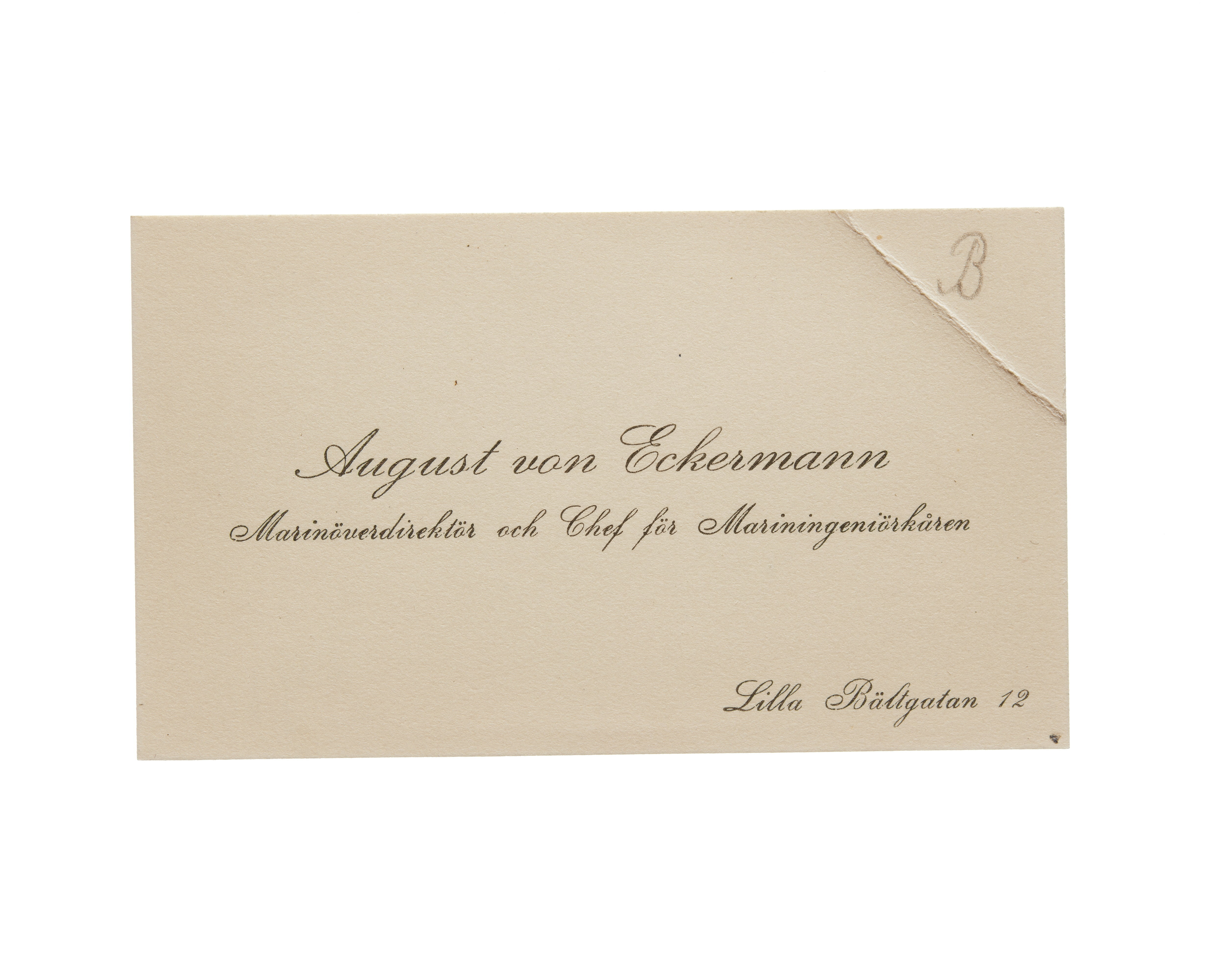 Visitkort från Agust von Eckermann, marinöverdirektör och chef för mariningenjörkåren.