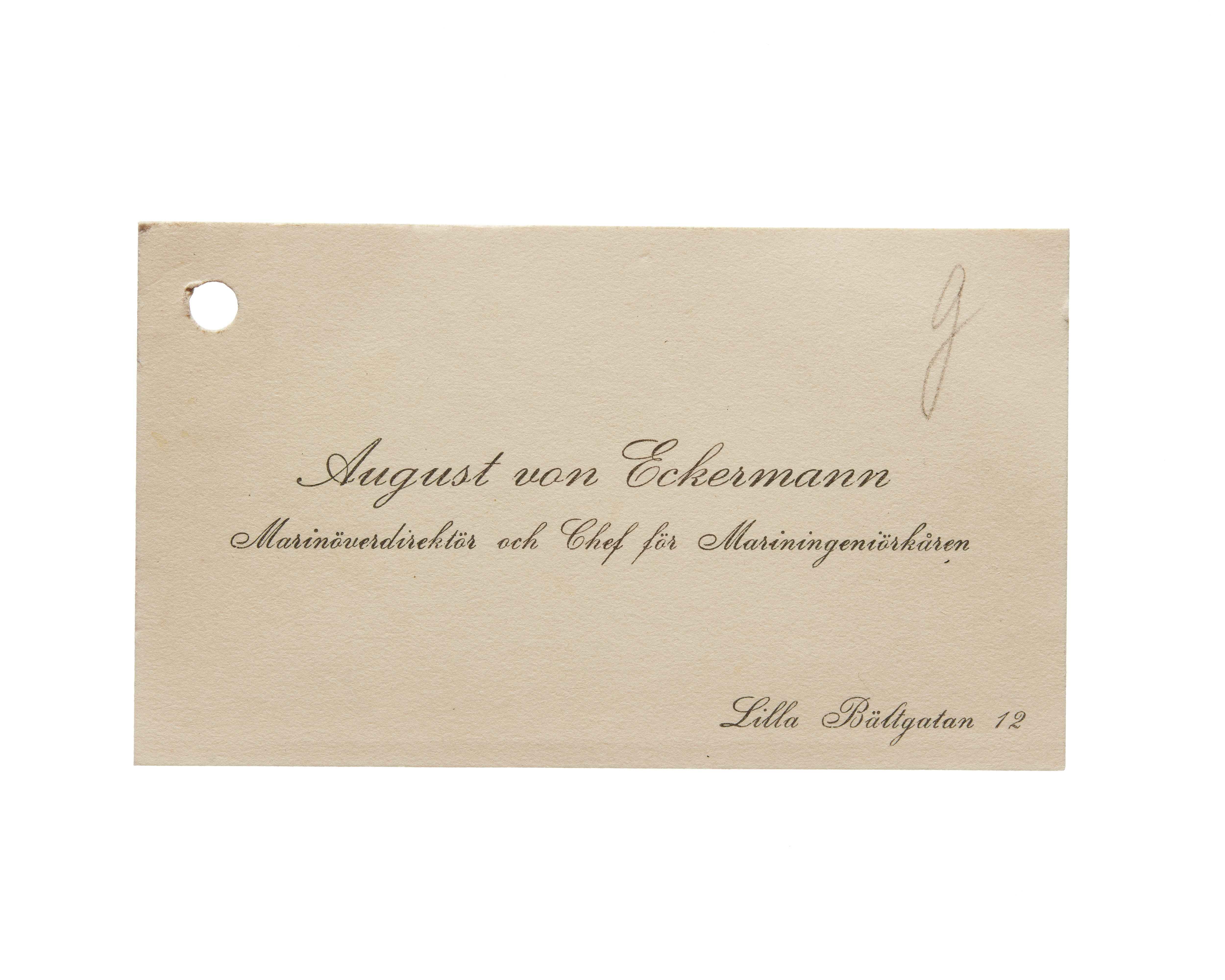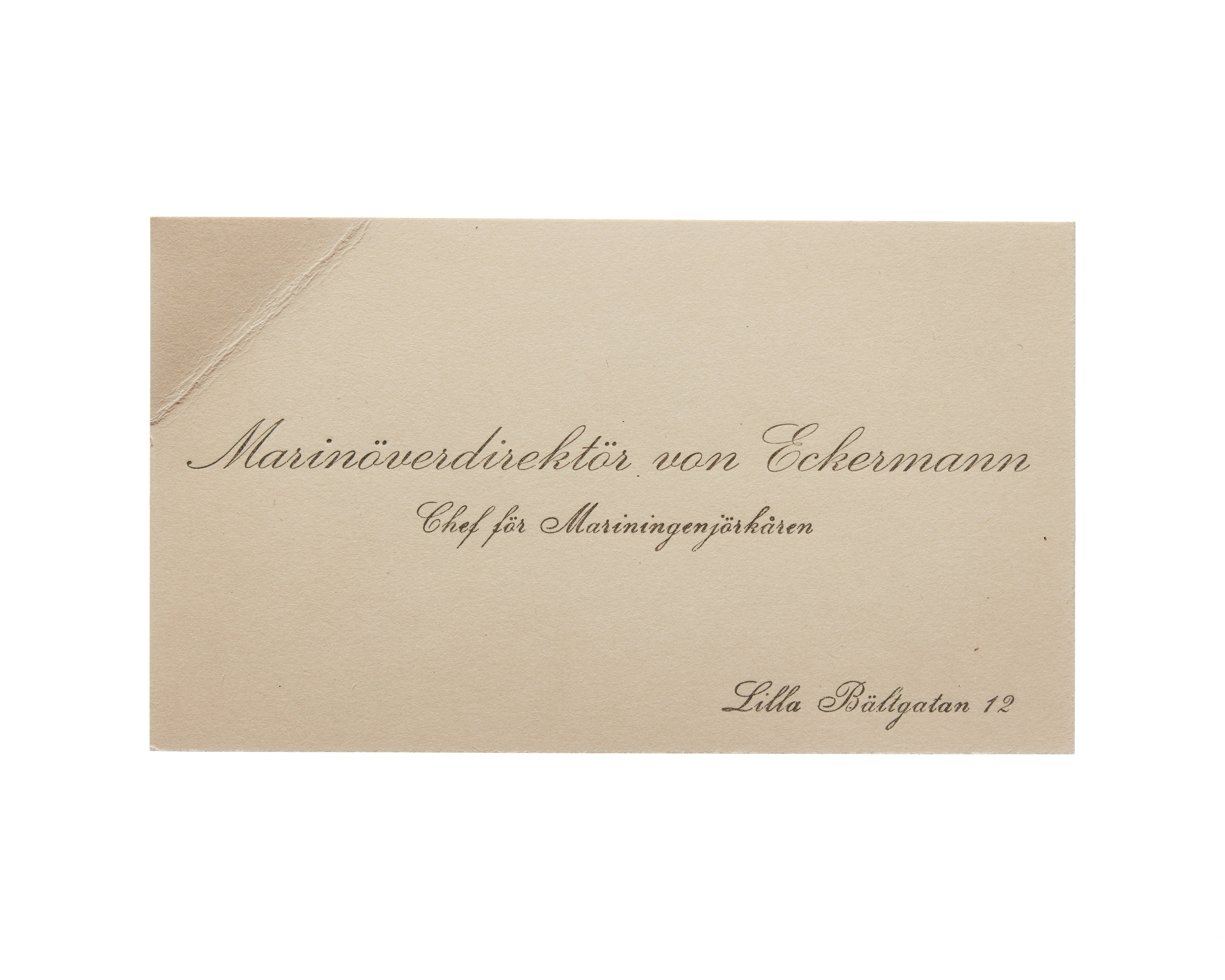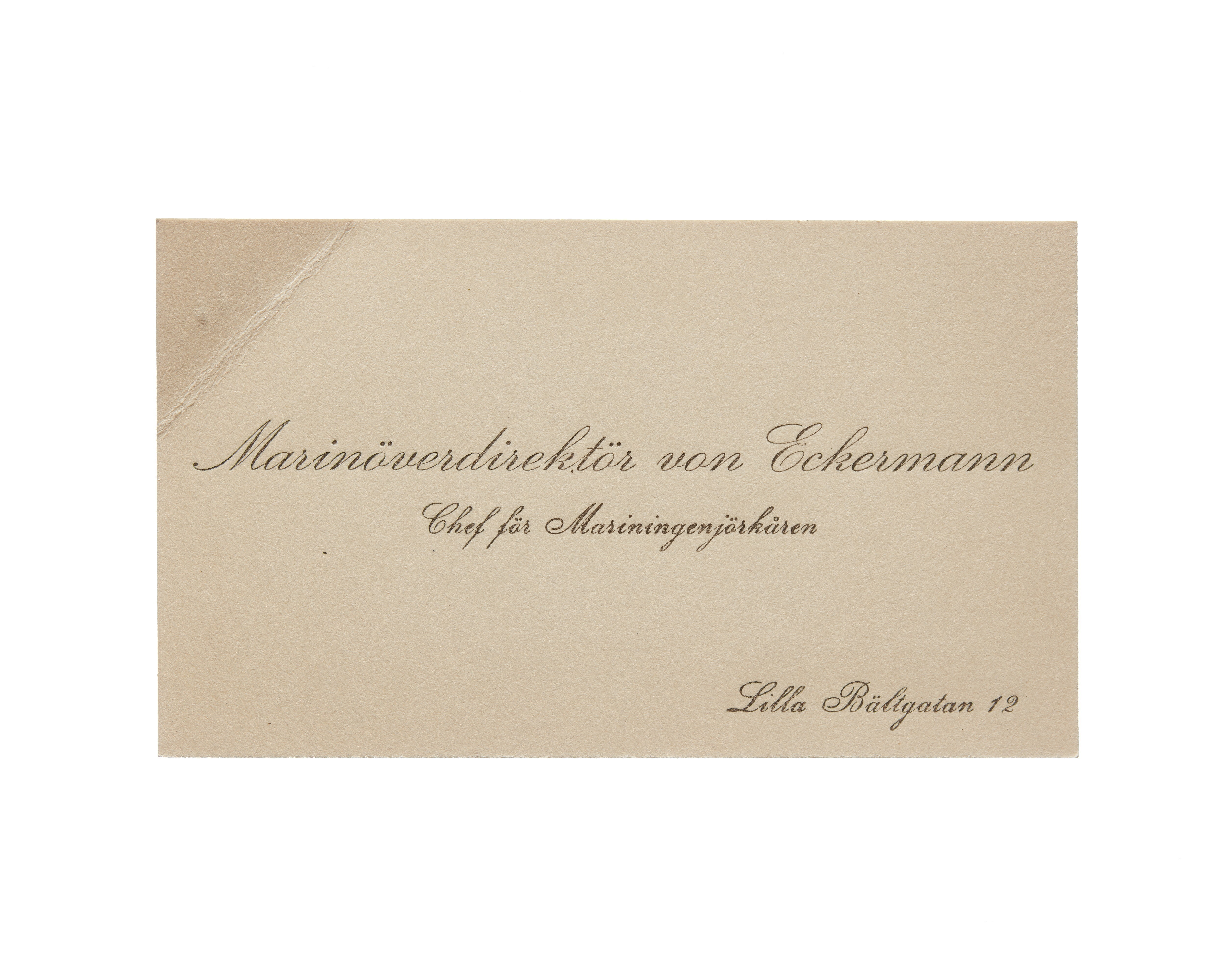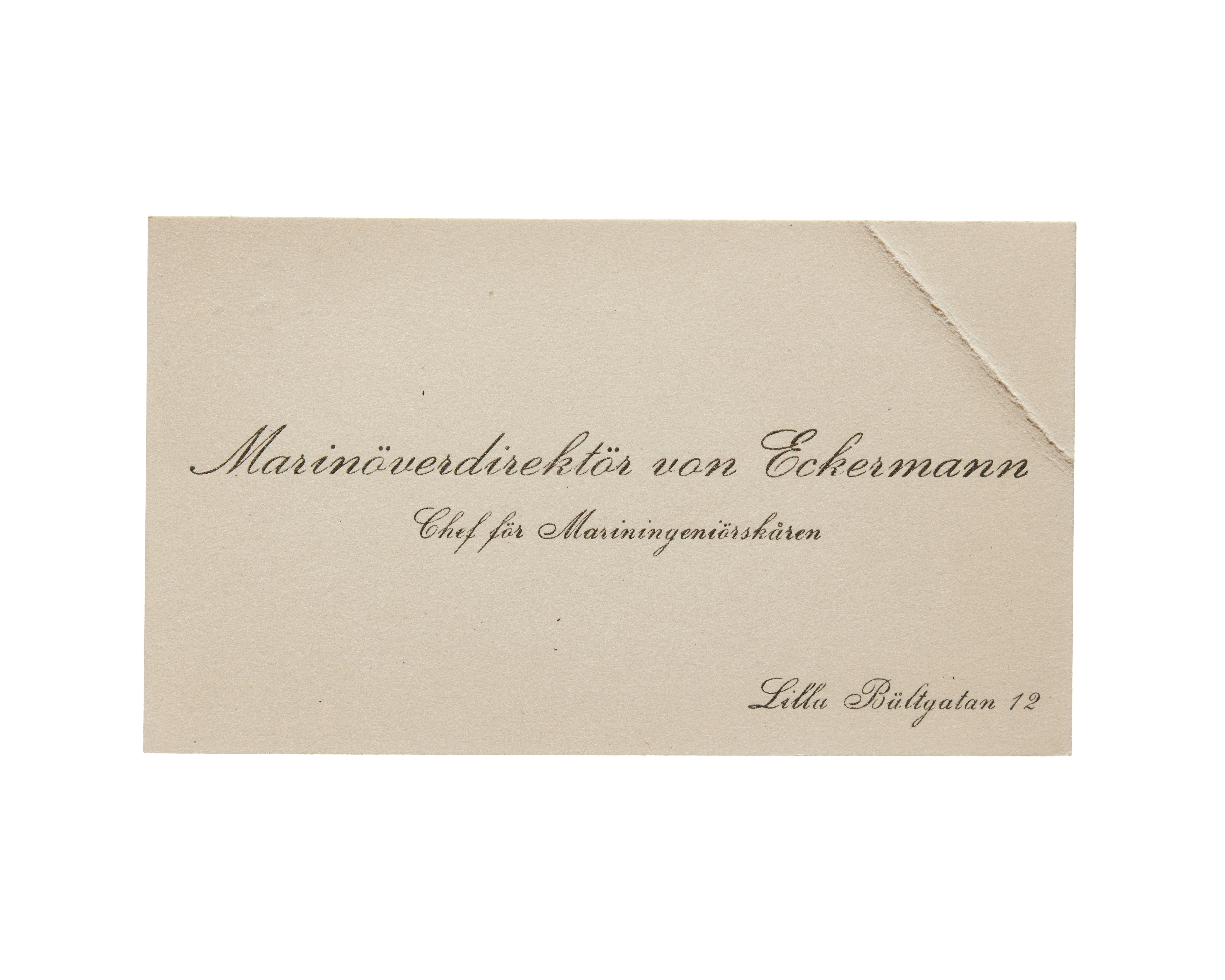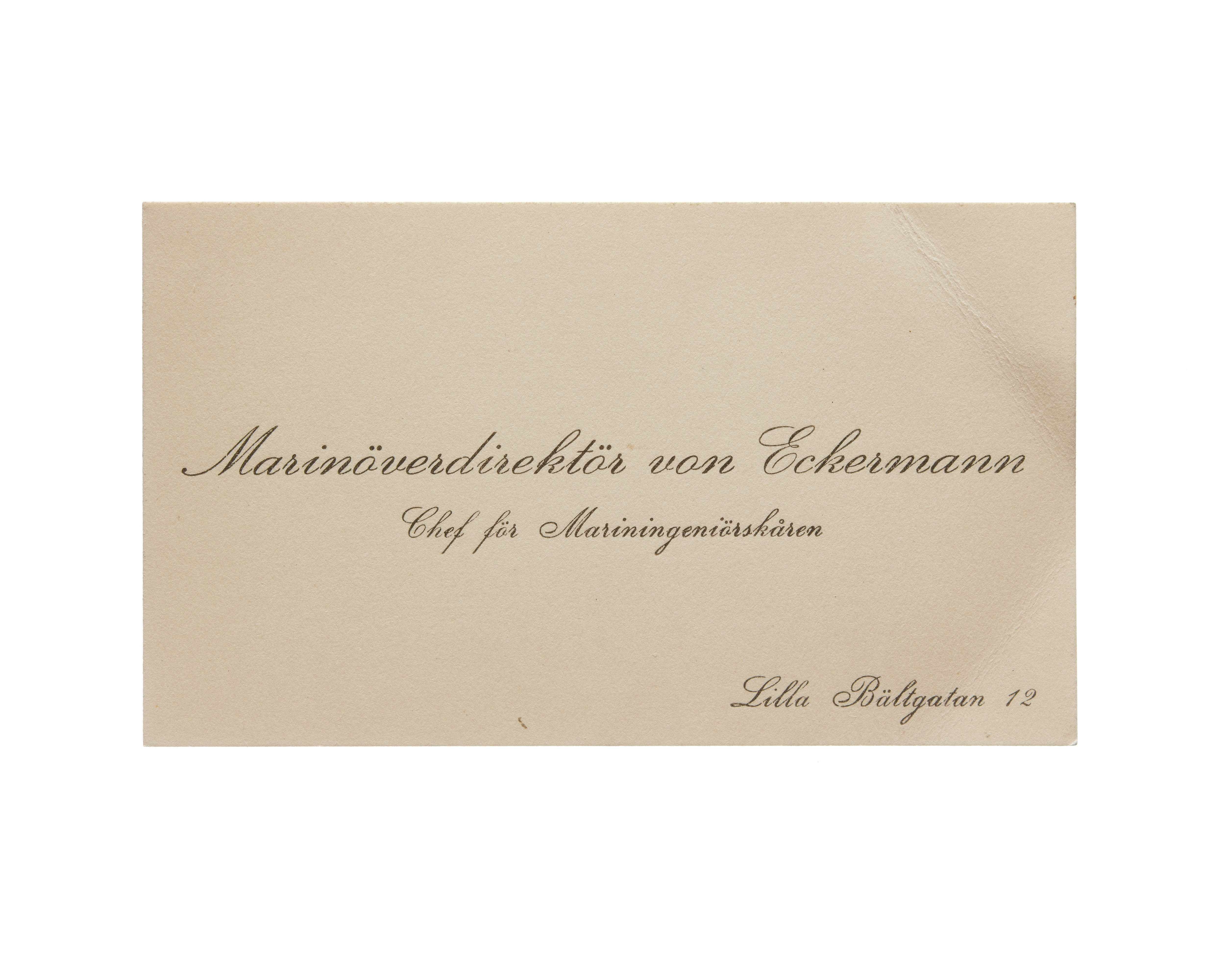 Visitkort från Agust von Eckermann, marinöverdirektör och chef för mariningenjörkåren.