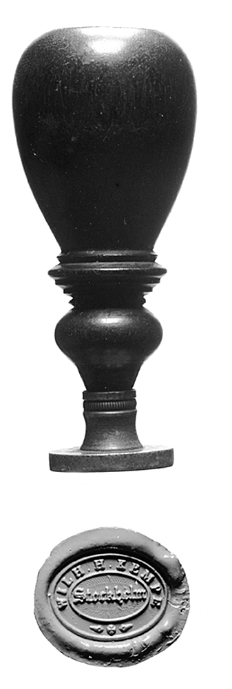 Sigillstamp graverad med WILH.H.KEMPE Stockholm med skaft av ebenholts.