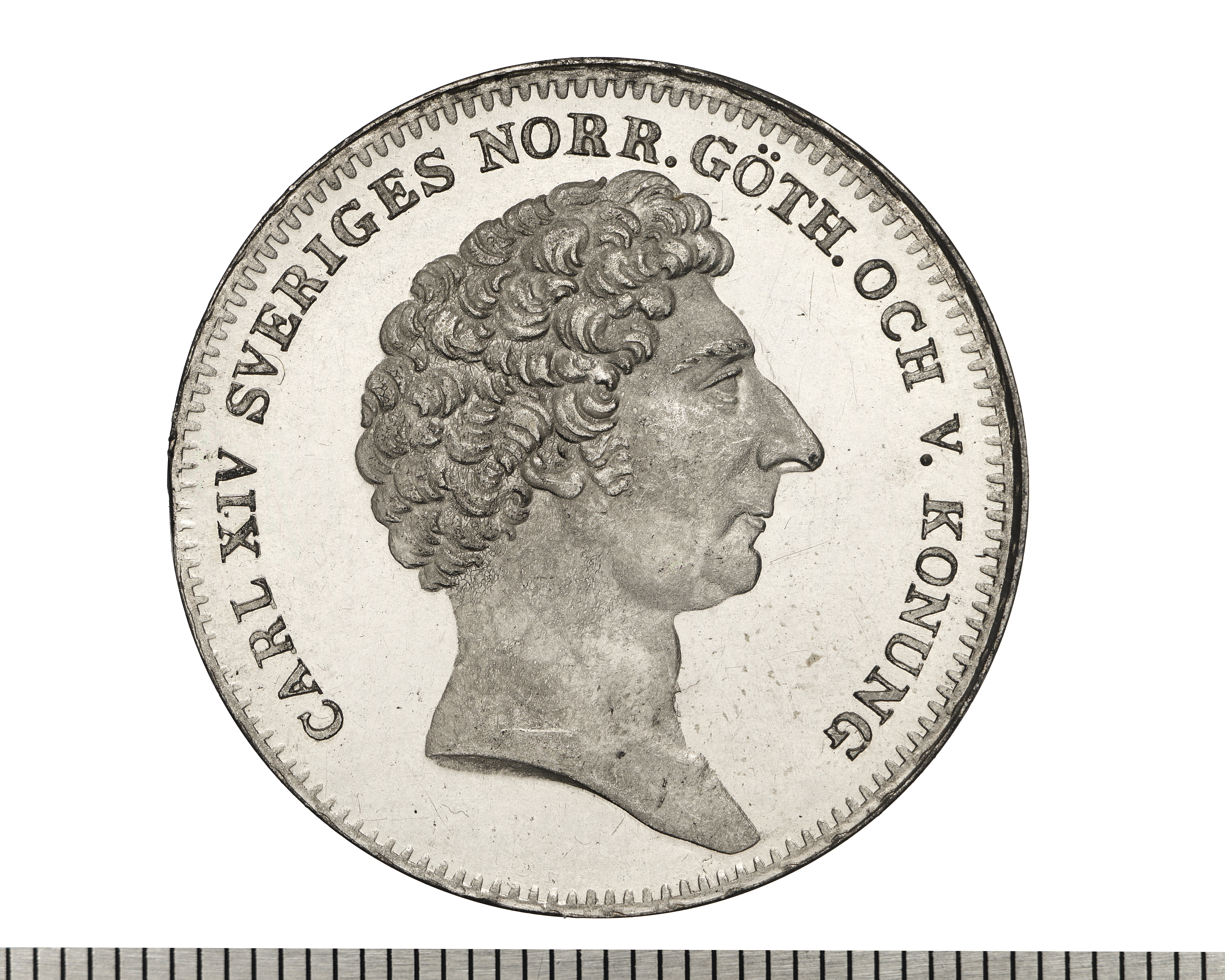 Upphov: Karl XIV Johan av Sverige och Norge. Media: Bonnevier, Helena. Ekonomiska museet - Kungliga myntkabinettet/SHM, (CC BY 4.0) Du får bearbeta och dela verket för alla ändamål, även kommersiella, så länge du anger upphovsperson och licensgivare.