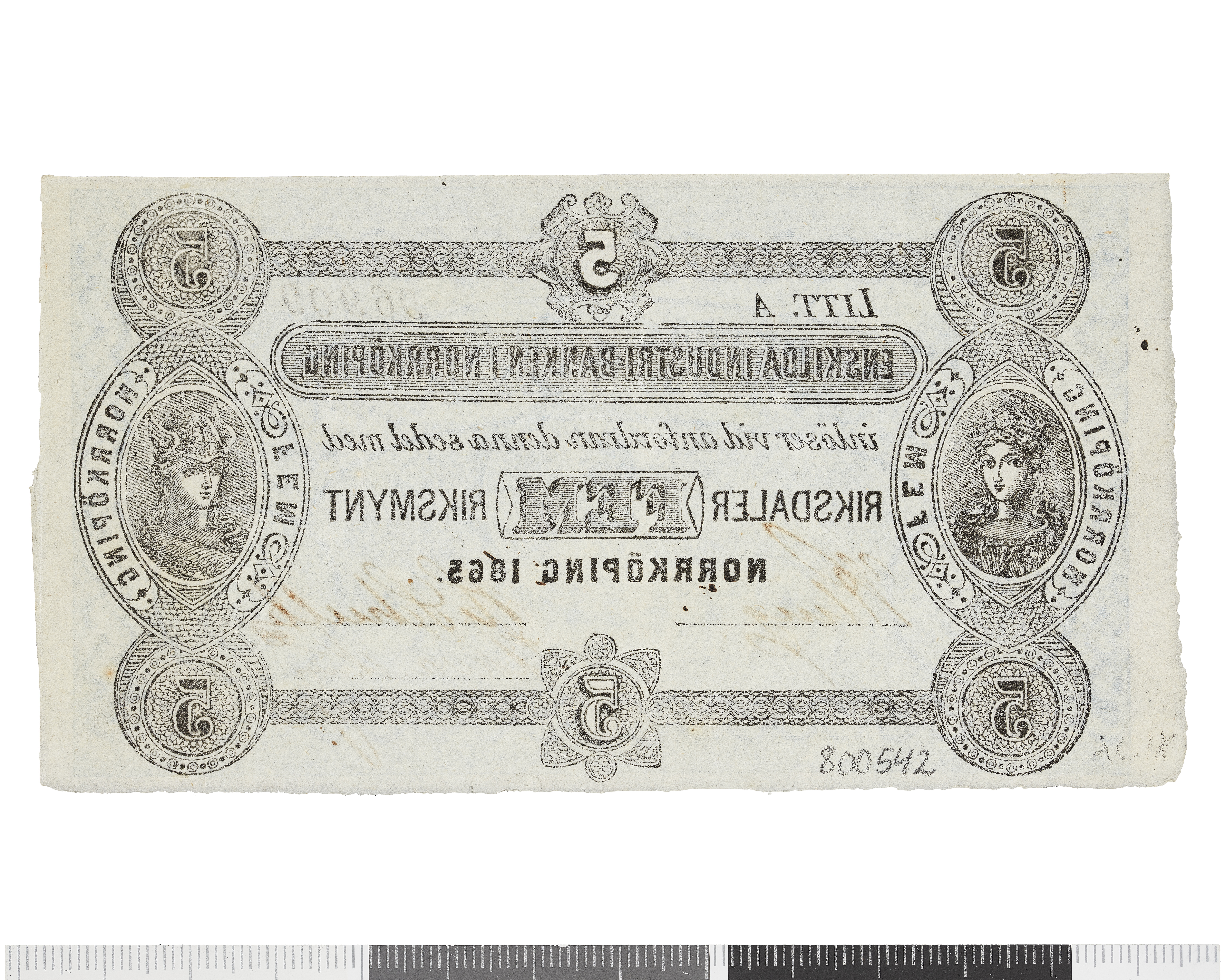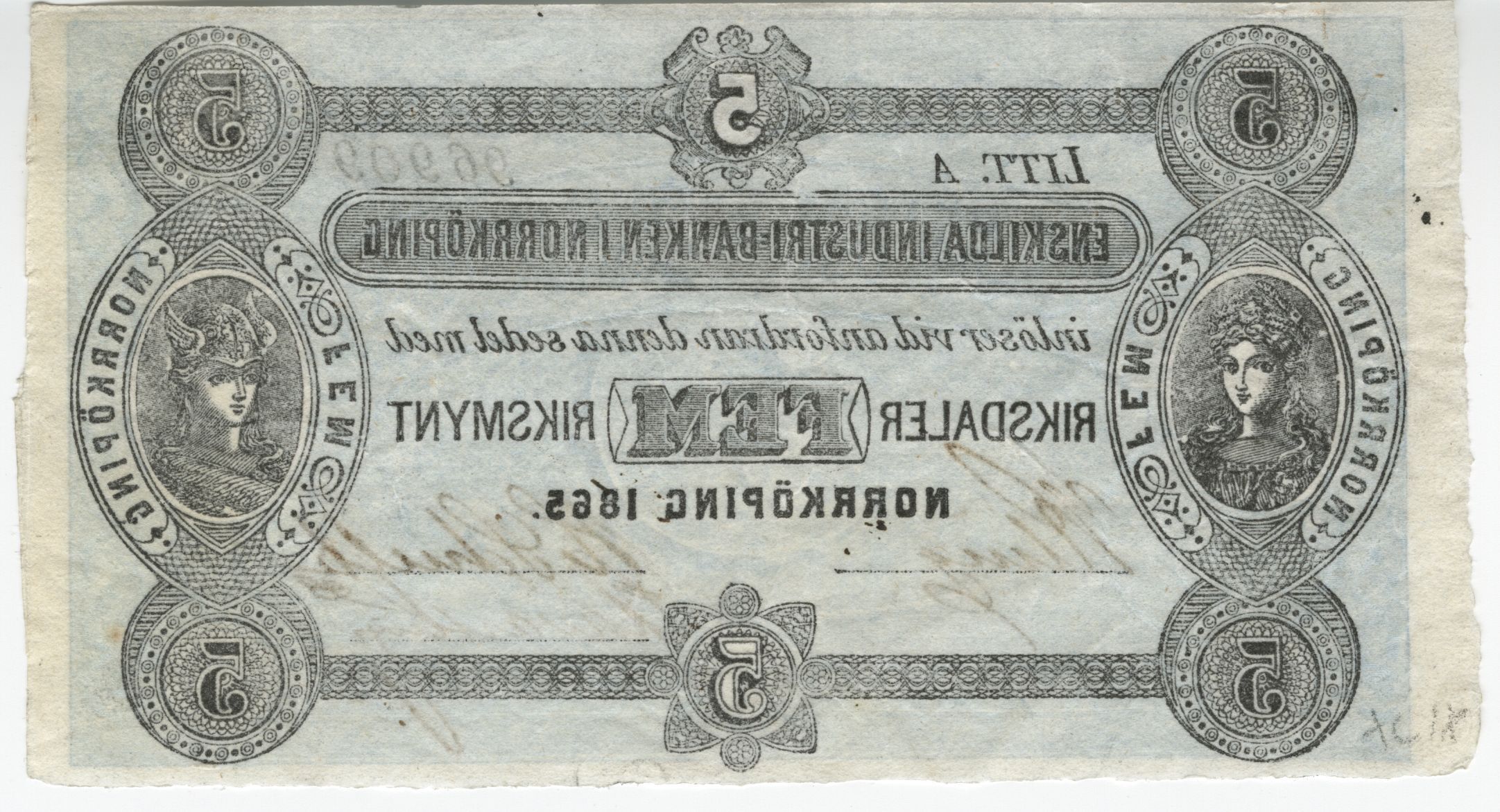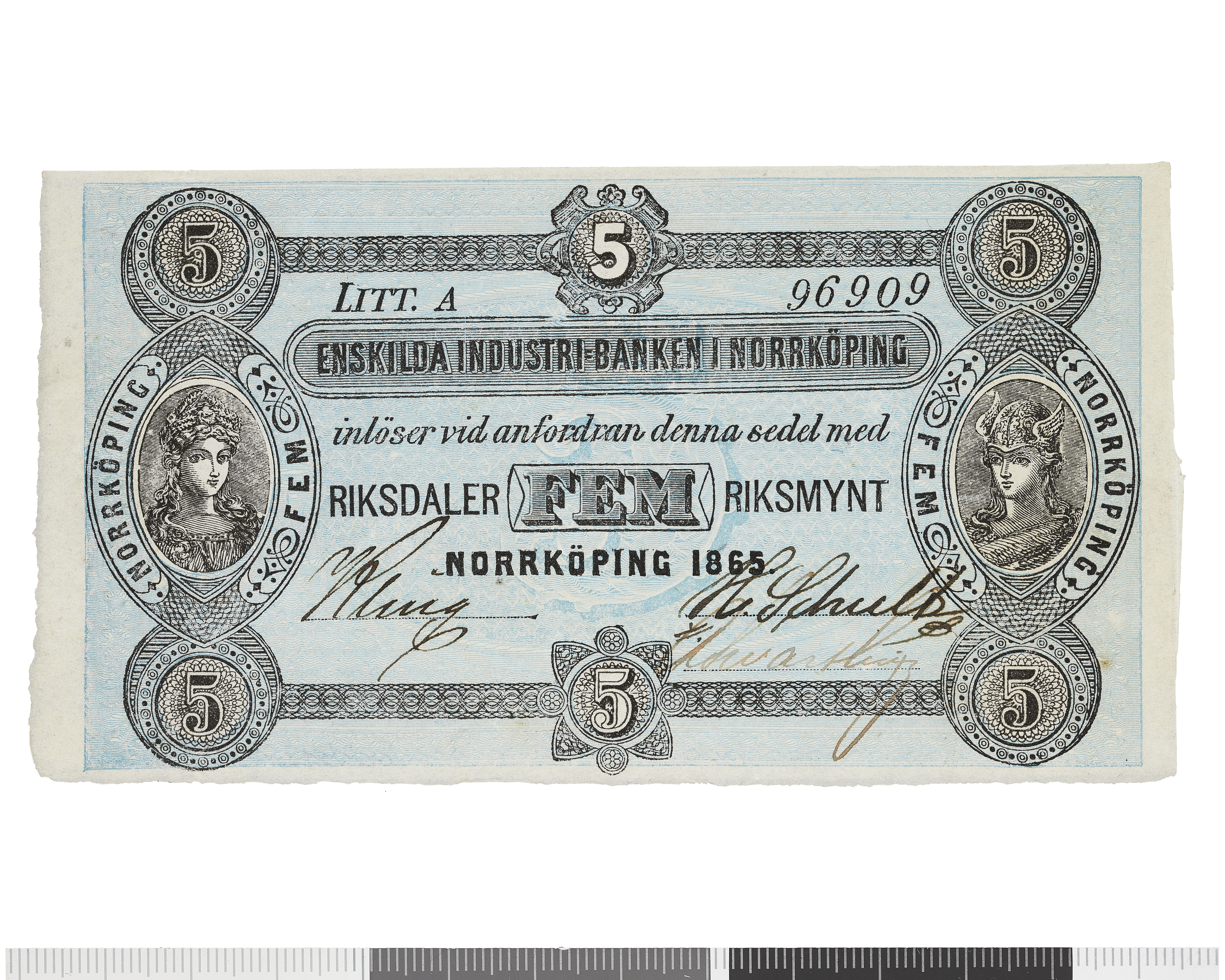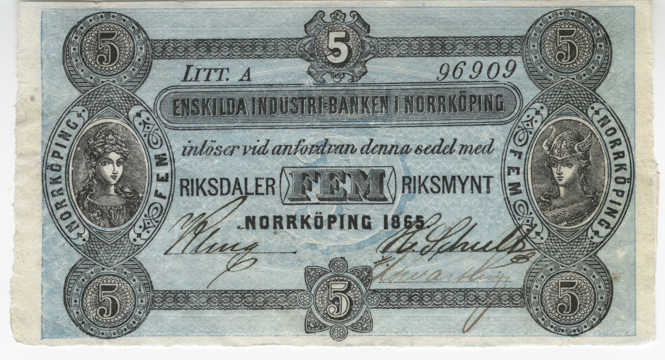 Enskilda Industribanken i Norrköping - Fem riksdaler riksmynt
