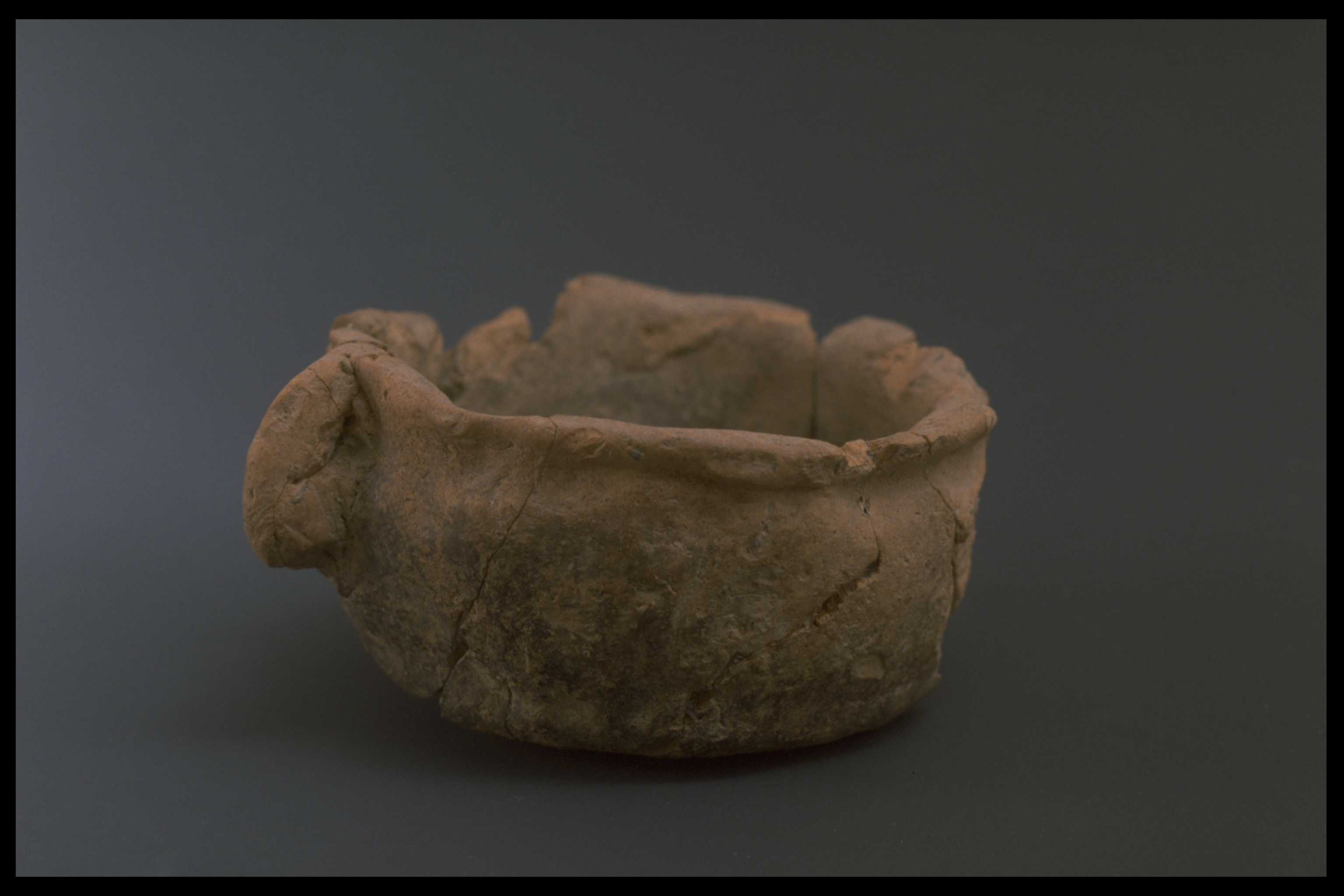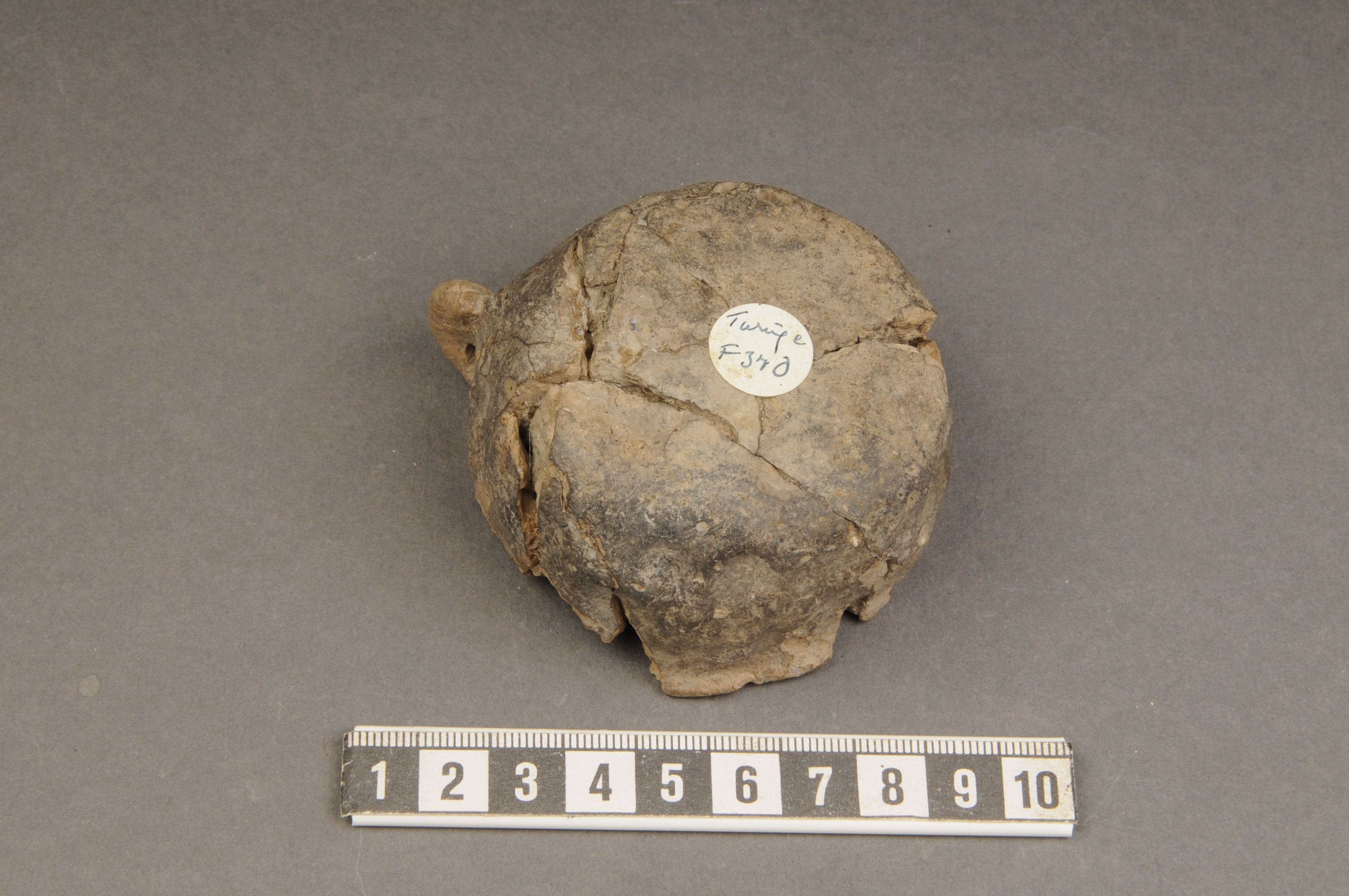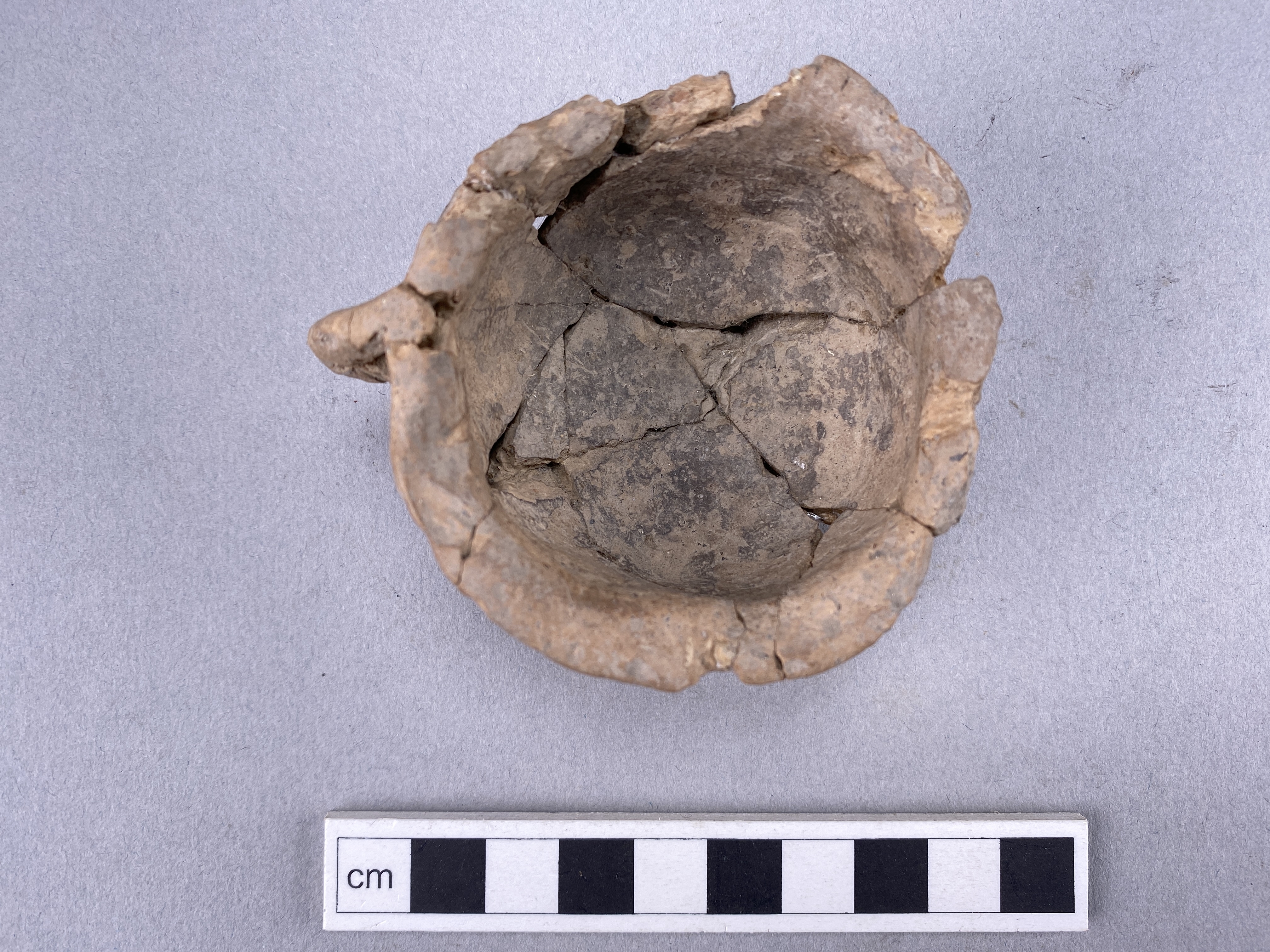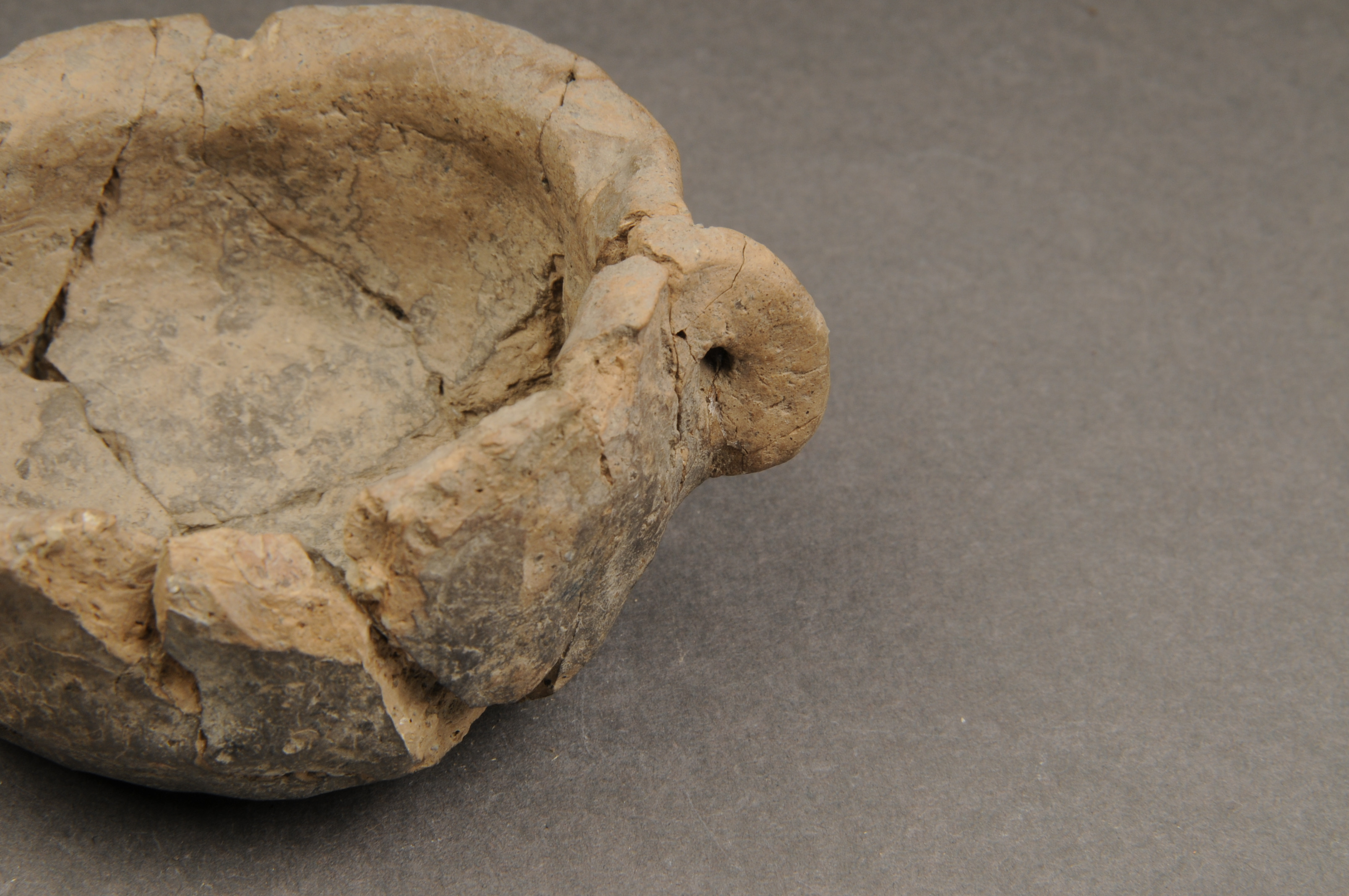 en lerkopp, rekonstruerad; med en hänkel/öra (genombruten)