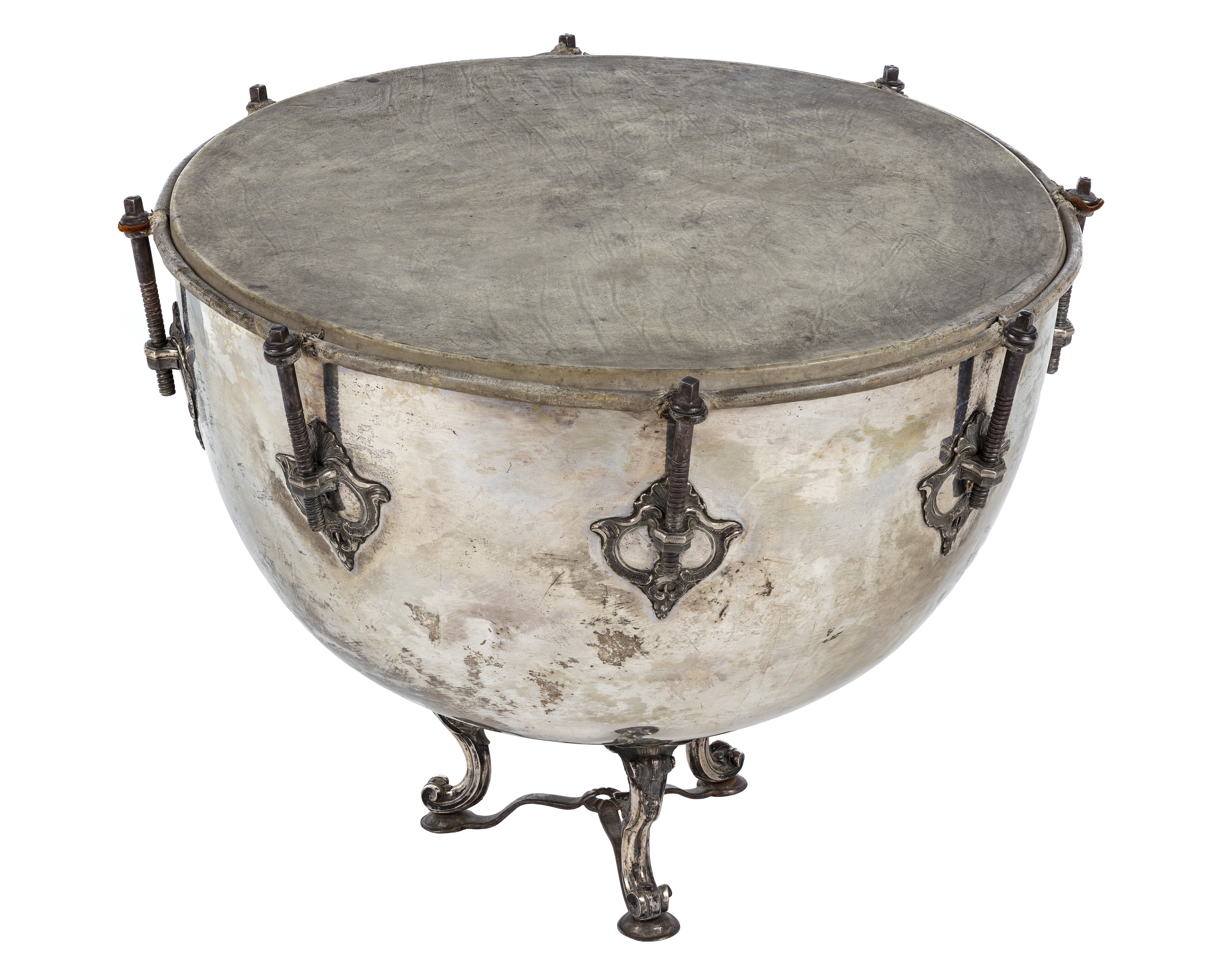 Halvsfärisk puka av silver med trumskinn av sämskat kalvskinn. Skinnet fäst med list runt om samt nio spännskruvar ca 155 mm långa varav gängning 95 mm. Skruvarna fästa vid listen genom runda byglar av stål och löper nedtill genom fasetterade byglar vars övre del är av silver och nedre av stål, dessa byglar fästa vid pukan med fastnitade rokokokartuscher. Spännskruvarnas huvuden med fyrsidigt tvärsnitt och vulstformig krage, mellan huvudena och byglarna packning av läder. Tre svängda ben, ca 167 mm höga i form av två svängda C-formade bågar. Fötterna sammanhållna nedtill av tre svängda ca 15 mm breda stålband som löper samman i mitten i en ring. På pukans undersida stämplar: "LIENDENBERG, STOCKHOLM" samt medskrivstil: 47 m, 15 och en åttondel lo. Tillverkad av Caspar Christian Liendenberg, Stockholm 1756. (Använda vid ståndsriksdagens högtidliga utblåsande 1756-1866.)