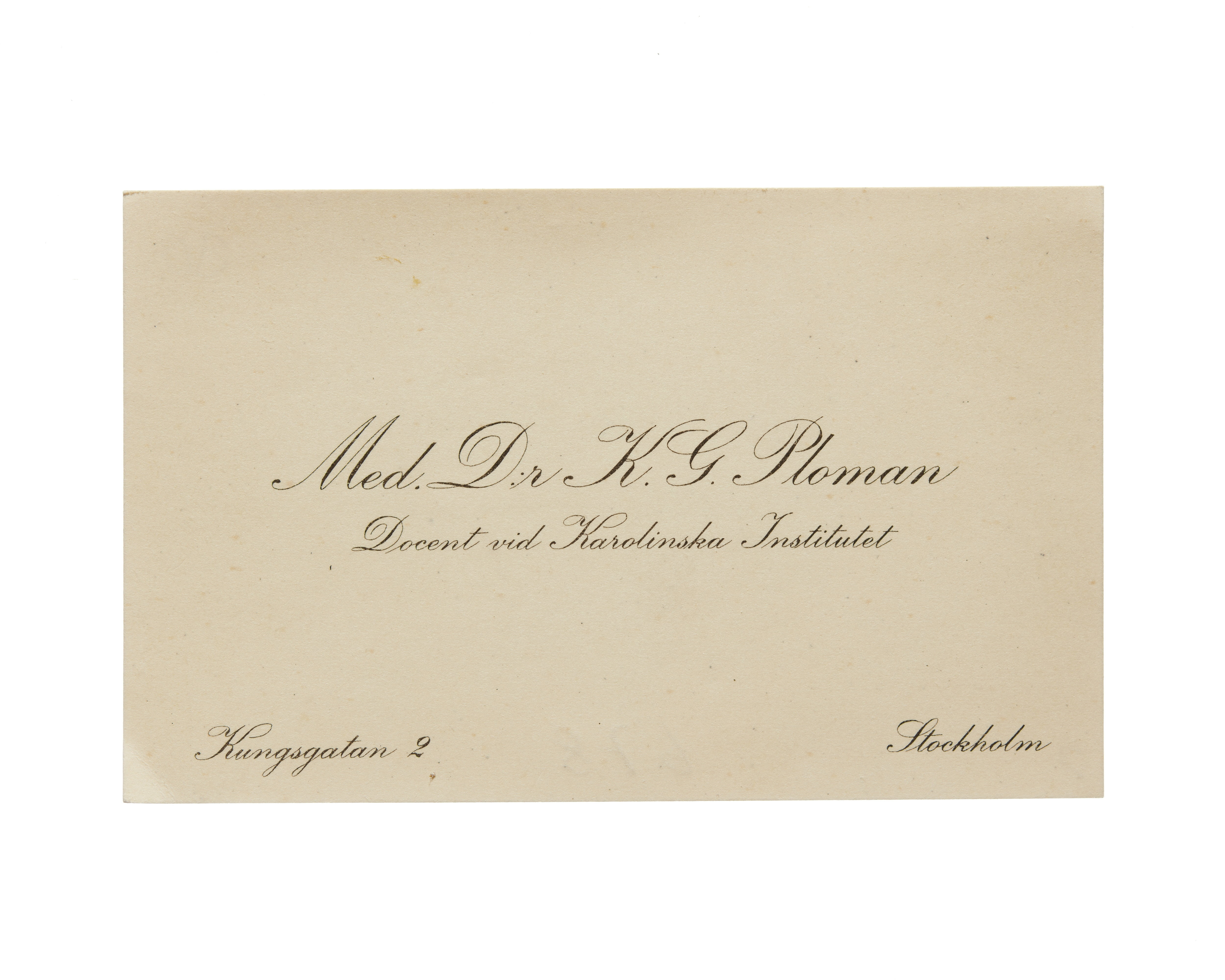 Visitkort från Med. D:r K. G. Ploman, docent vid Karolinska institutet.