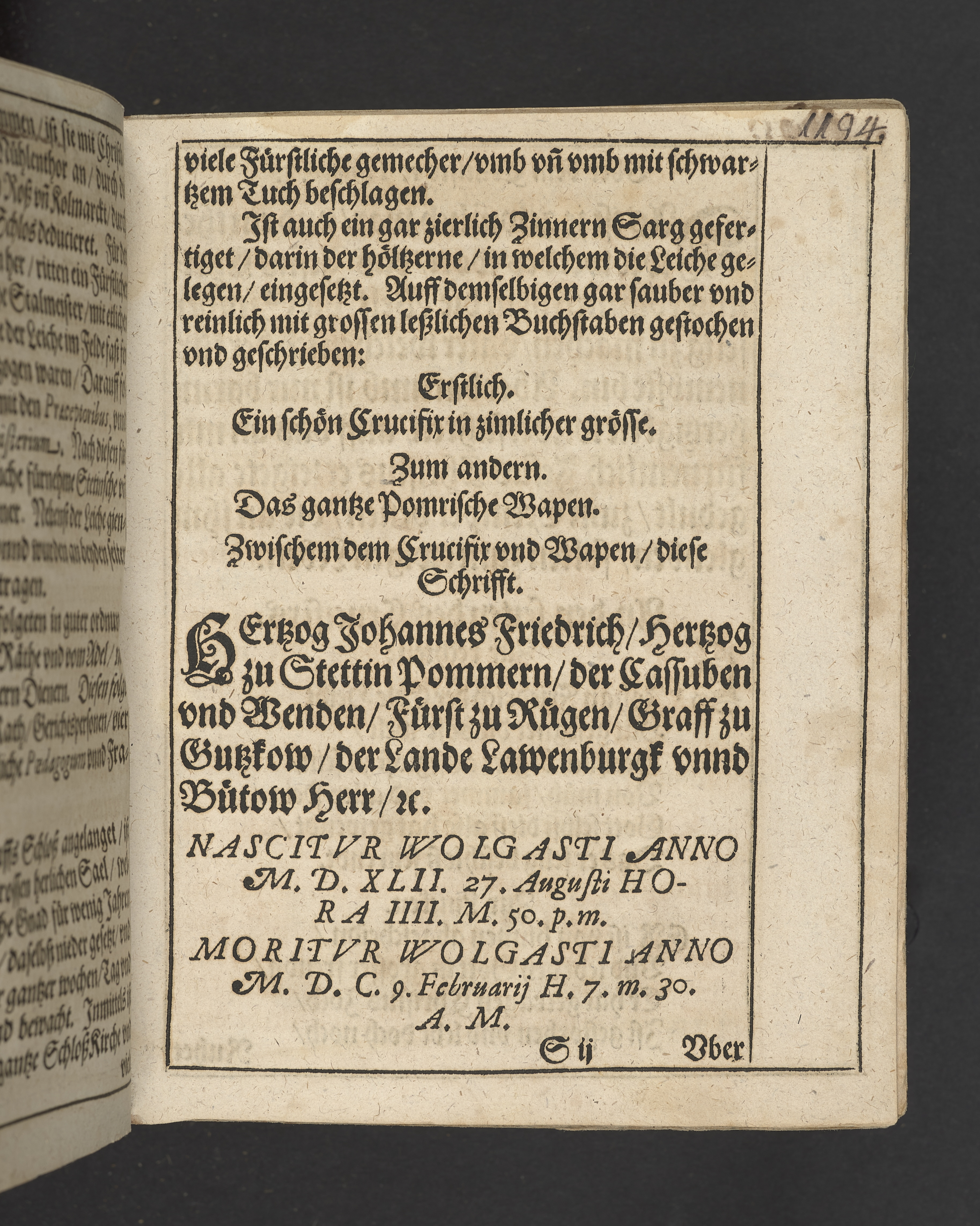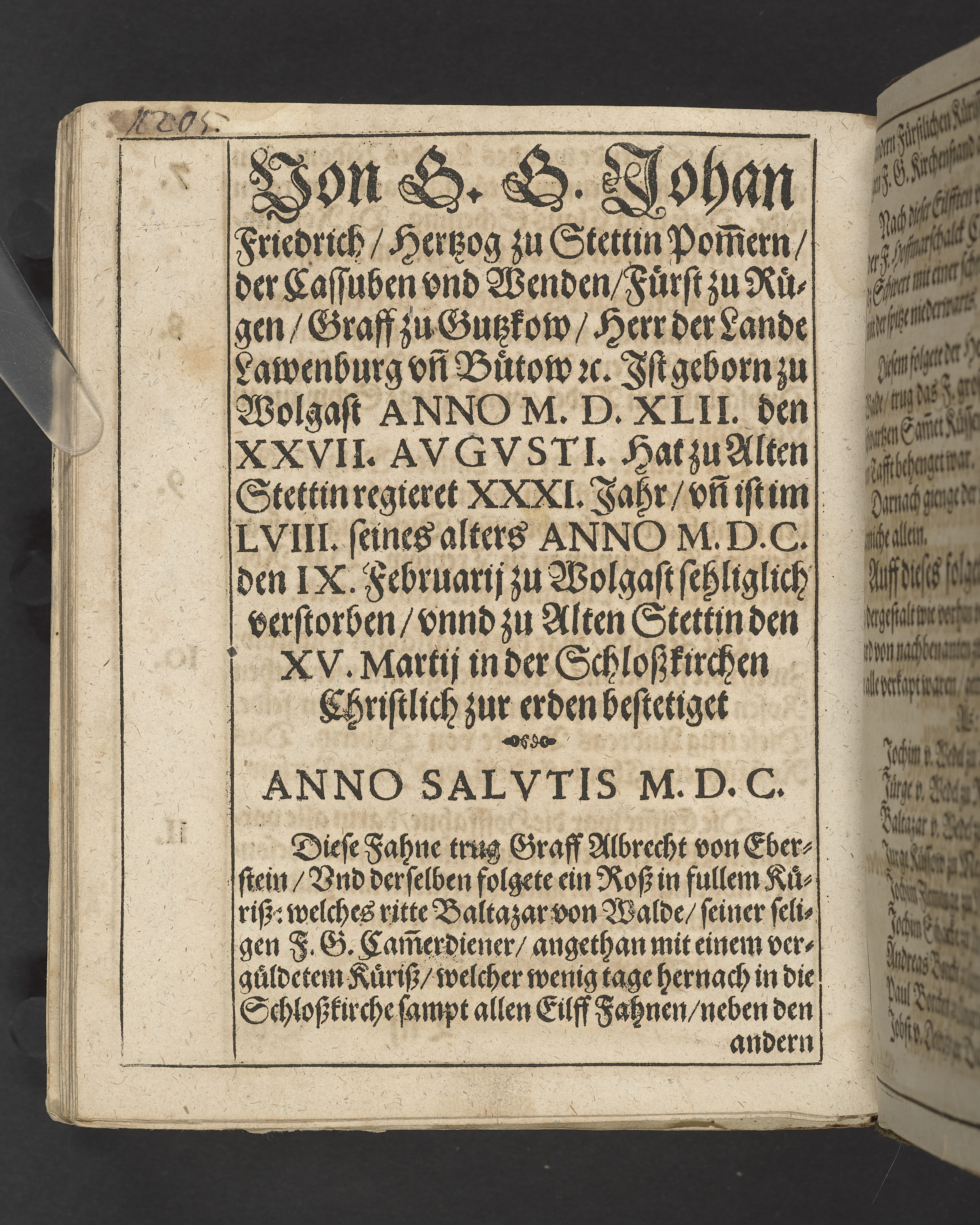 Leichpredigten, gehalten bey der fürstlichen Leiche vnnd Begrebnus des ... Herrn Johans Friedrichen, Hertzogen zu Stettin Pommern ... Durch Jacobum Fabrum ... Item oratio funebris ... à Daniele Cramero ... Gedruckt zu Alten Stettin, bey Jochim Rheten. 1600.