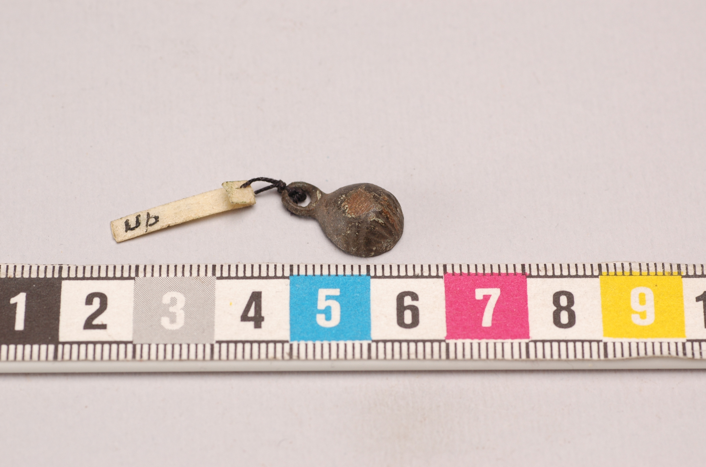 Är utvändigt en halv knapp - jmf Birka I. Taf. 93 - dock ihålig och ensidig. Kan möjligen ha tjänat som modermodell vid formtillverkning