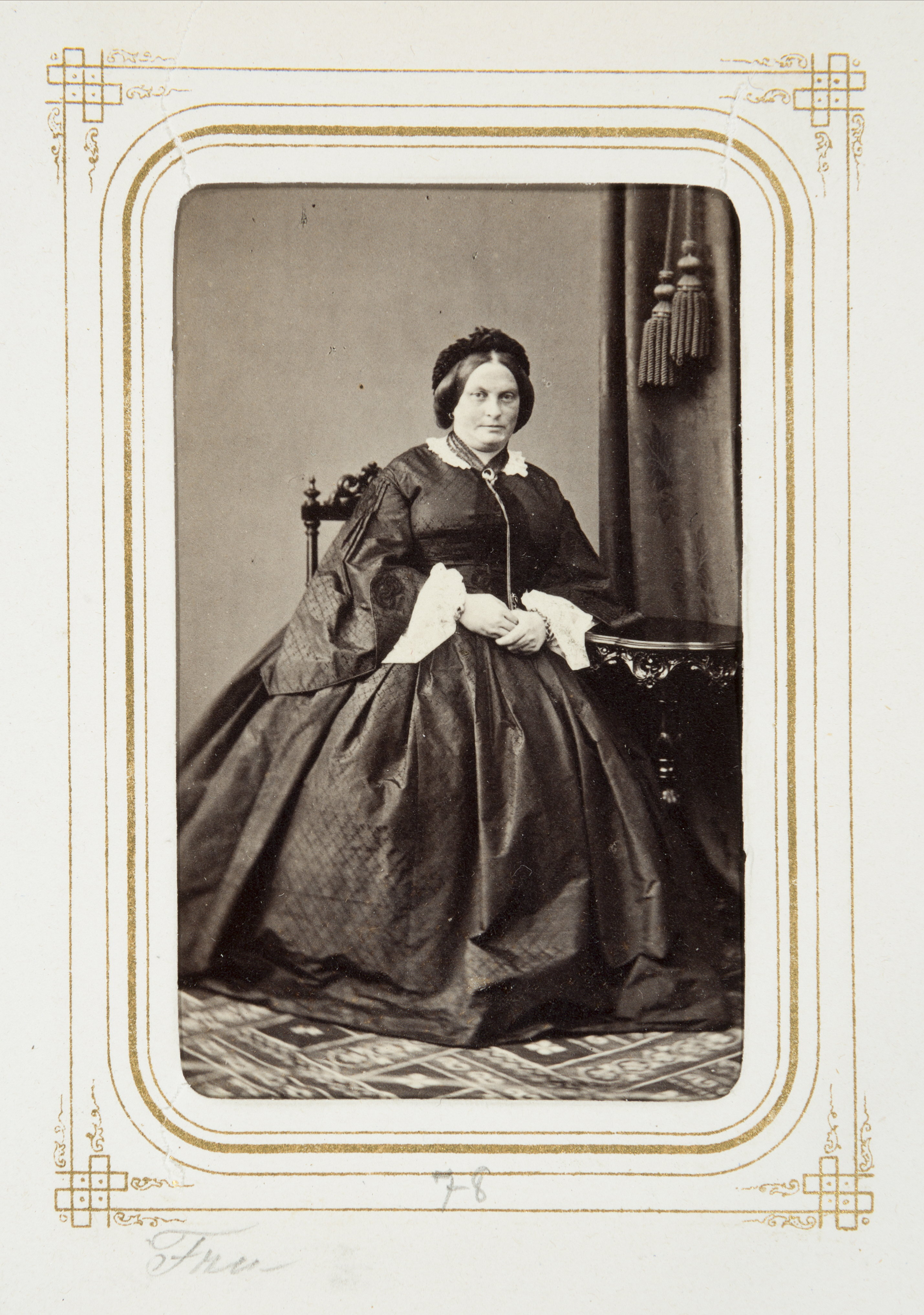 Biografi. Fotografiporträtt. 101 porträtt i album. Äldre Dam. Erhållet av Johanna Kempe, f. Wallis på 1860-talet. 26,5x20,7x4 cm.