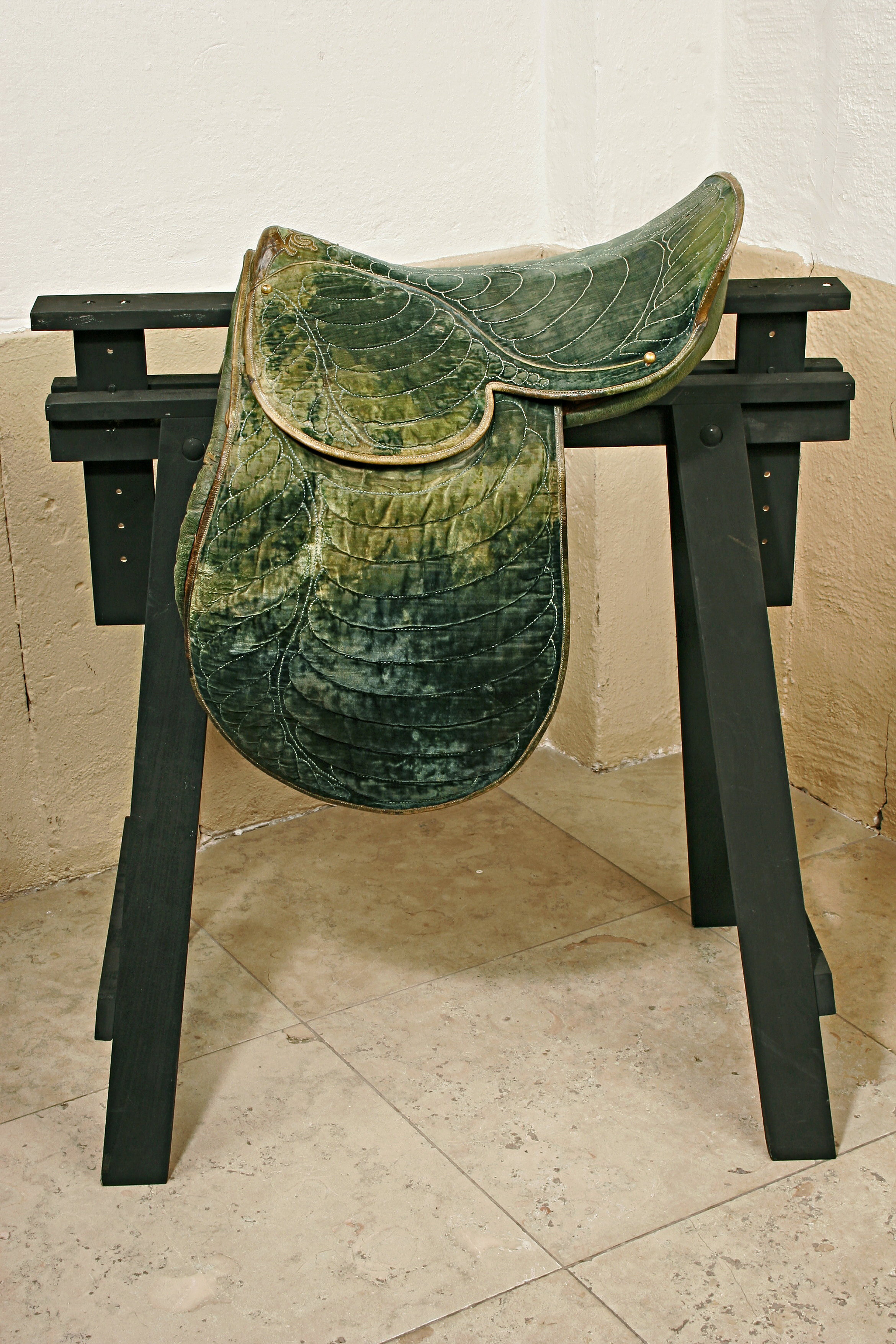 Sadel, grön sammet.