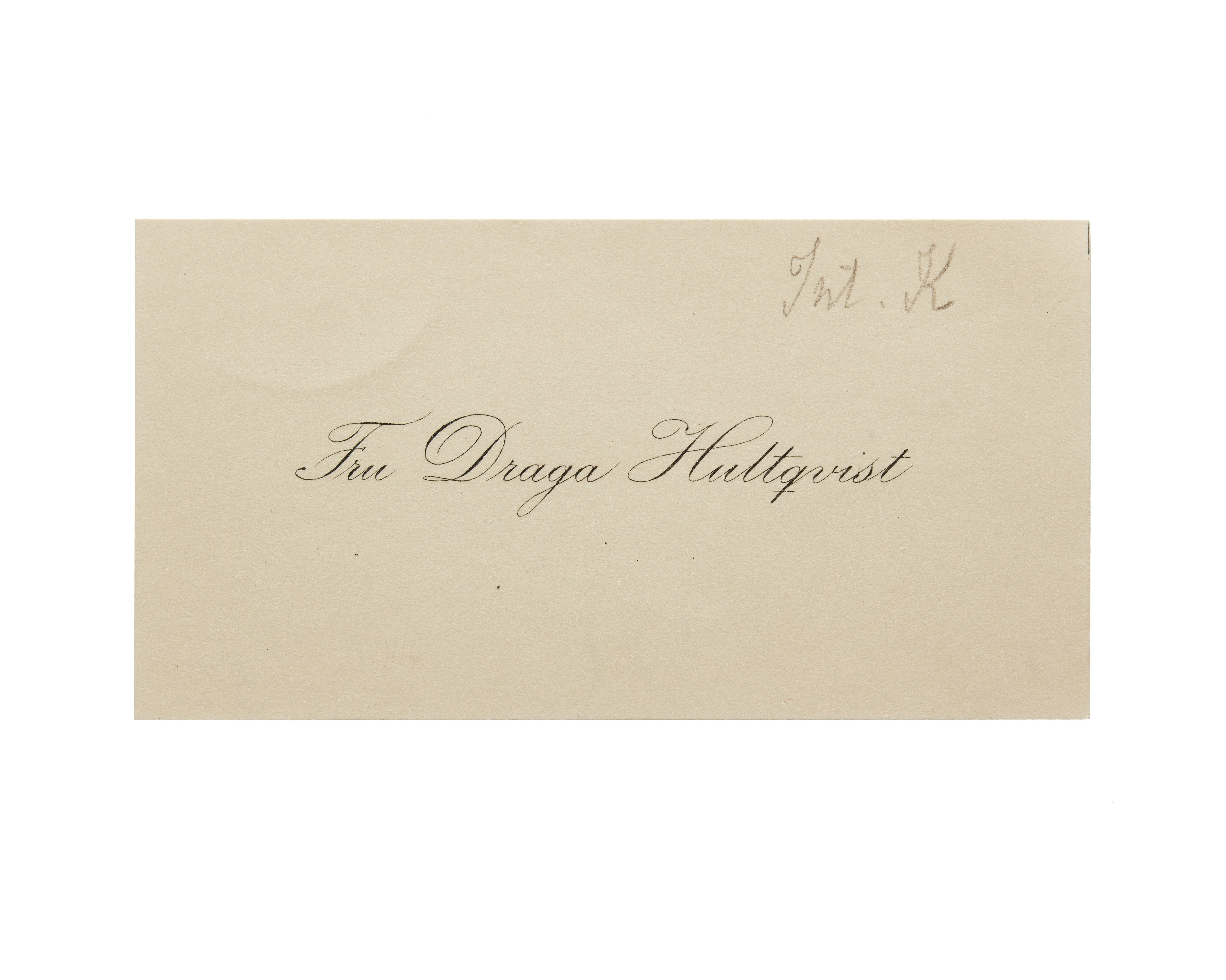 Visitkort från Fru Draga Hultqvist.