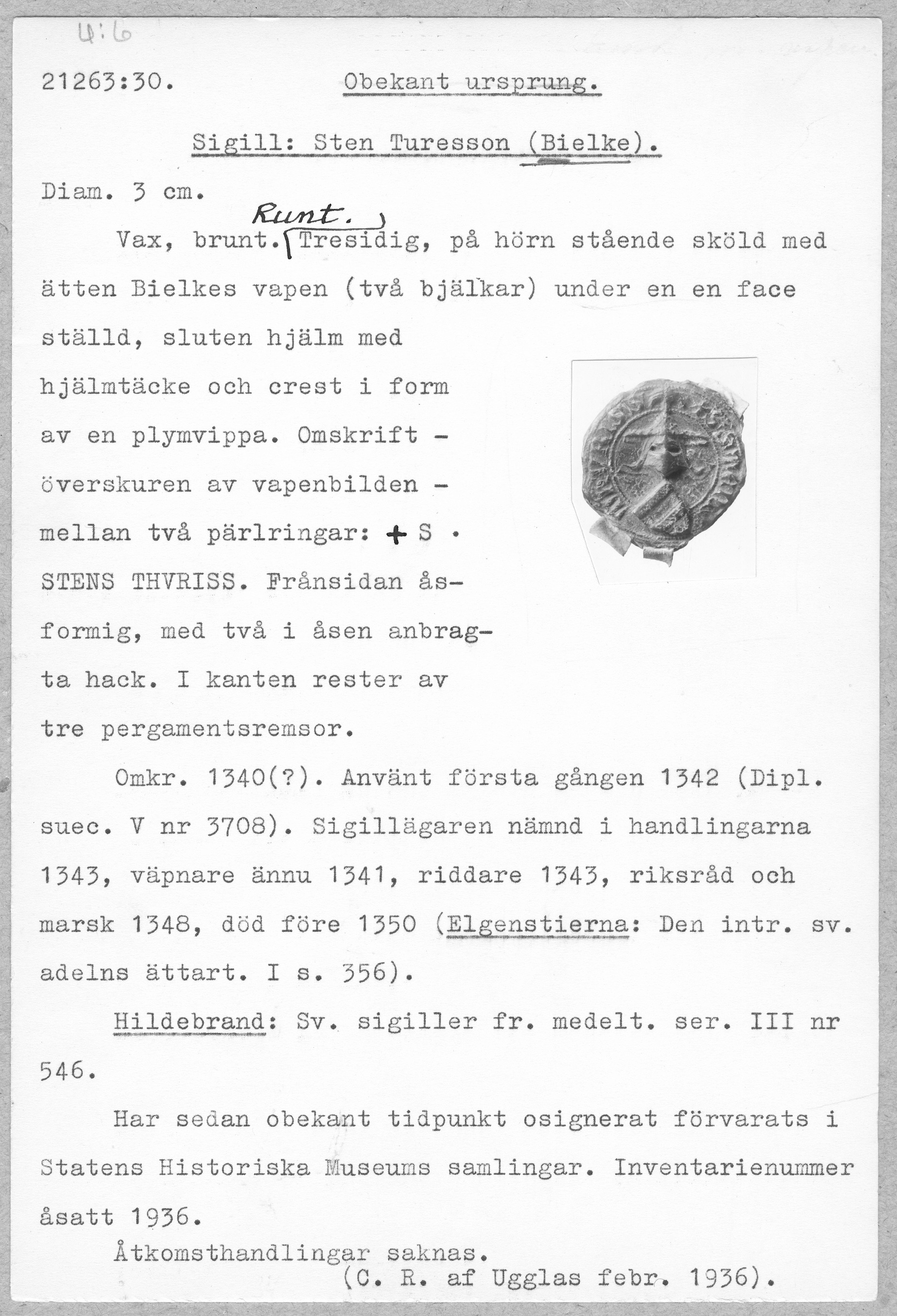 Sigill: Sten Turesson (Bielke)
