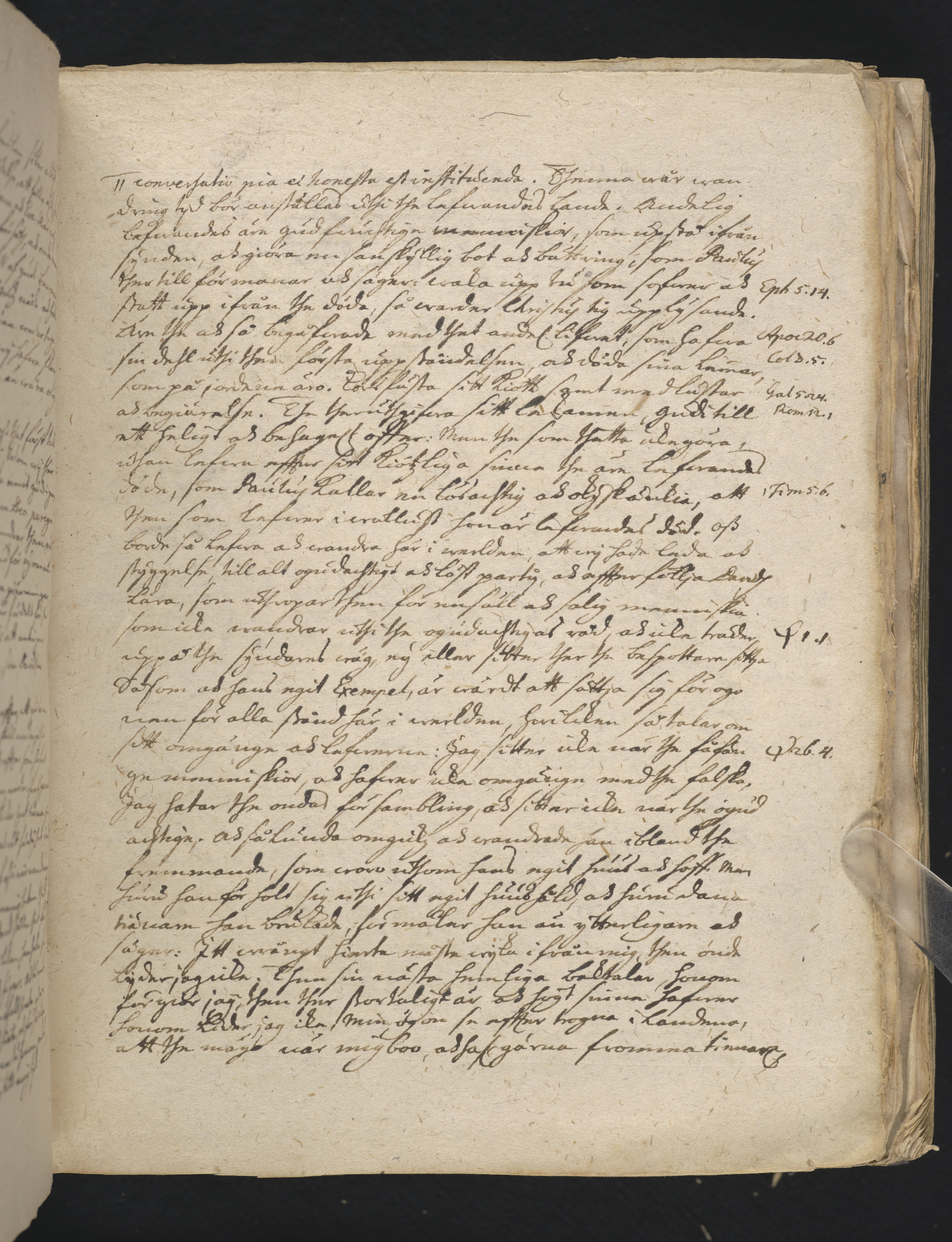 Svärtat helskinnsband av kalv med fast rygg. Inlagan består av 18 skrifter i varierande papperskvalitet och storlek.