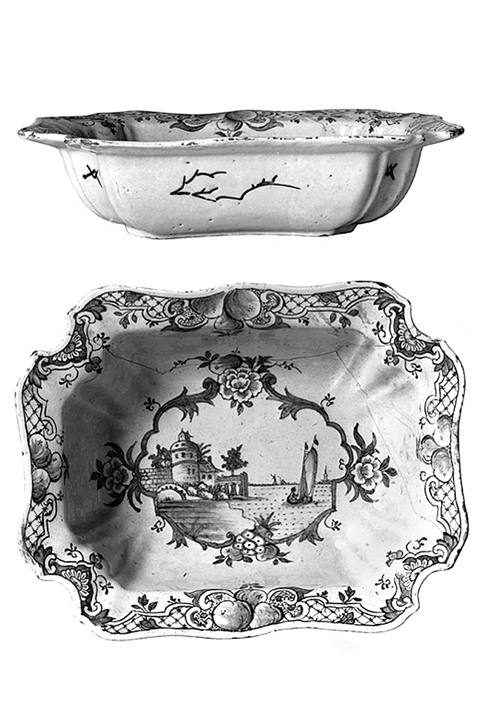 Signatur/Påskrift: På bottnens utsida ett märke i form av en stjärna. Märket användes vid fler tillfällen av verkstaden. "De witte Starre" (1660 - 1803), Delft, men var nästan utan undantag åtföljt av initialer e.d. Möjligen är märket in imitation härav.