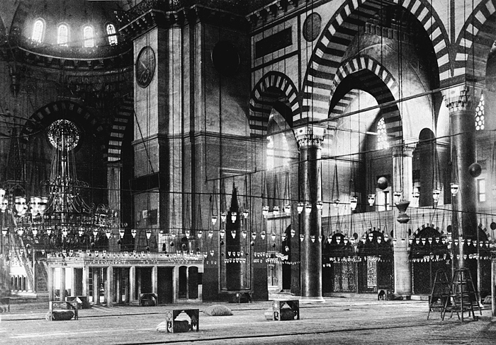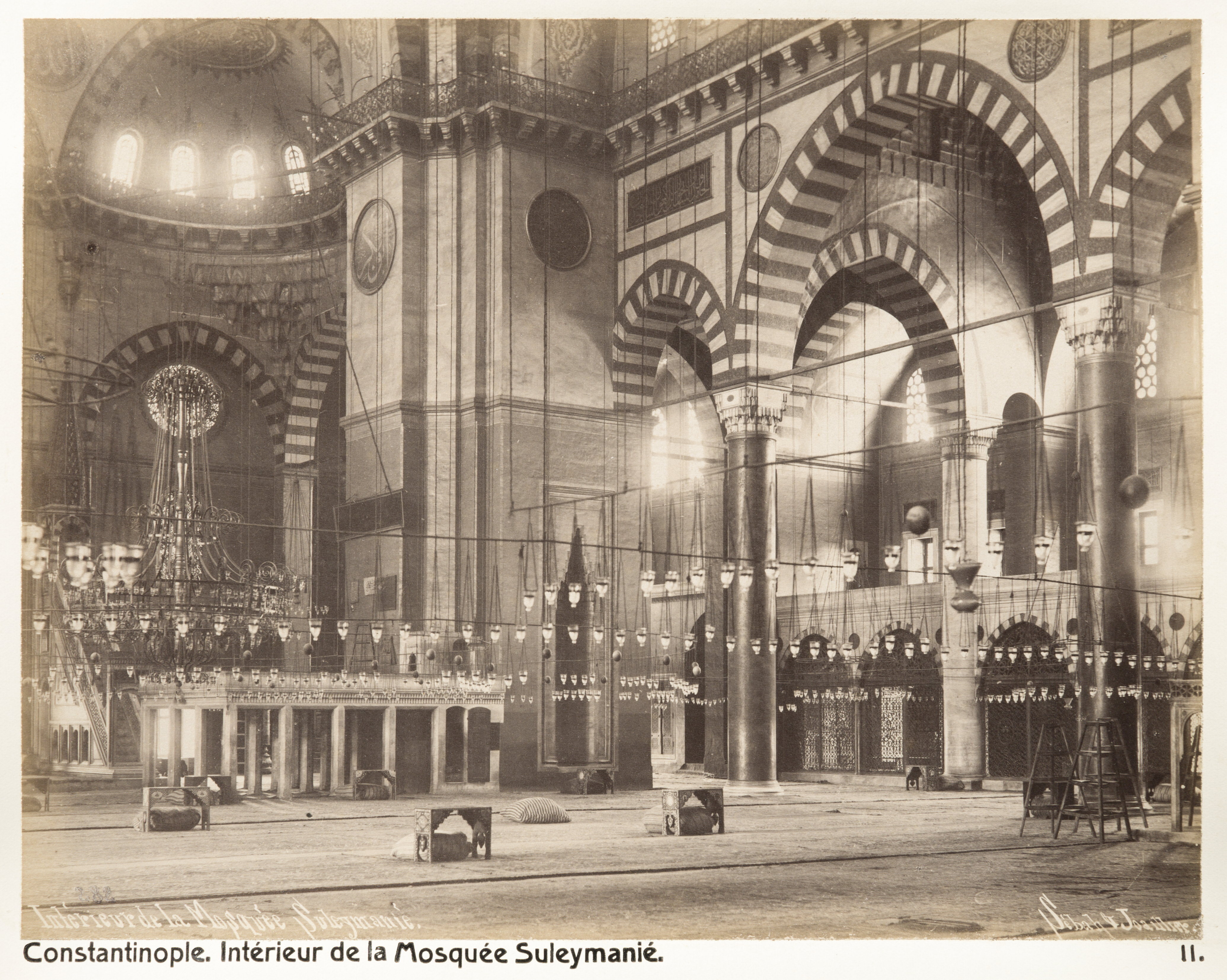 Interiör från Süleymaniyemoskén, Konstantinopel. Text på originalet: "Constantinople. Intérieur de la Mosquée Suleymanié." Fotografierna LXVI:O.01.-54. kommer från resan till Turkiet och Mindre Asien som Wilhelmina och Walther von Hallwyl gjorde den 27 april - 20 juni 1901. De lämnade Sverige den 5 november 1900 för Egypten, där de stannade till den 28 mars 1901, då de fortsatte till Palestina. Den 27 april fortsatte de till Turkiet och Mindre Asien. Med på resan var Wilhelminas sällskapsdam, fröken Ida Uhse. I Konstantinopel (Istanbul) anslöt sig Wilhelminas mor Johanna Kempe och kusindottern Elma Hök. Fotografierna är inköpta av Wilhelmina i Konstantinopel (Istanbul) och Brussa. Alla uppgifter kommer från Ida Uhses reseanteckningar.
