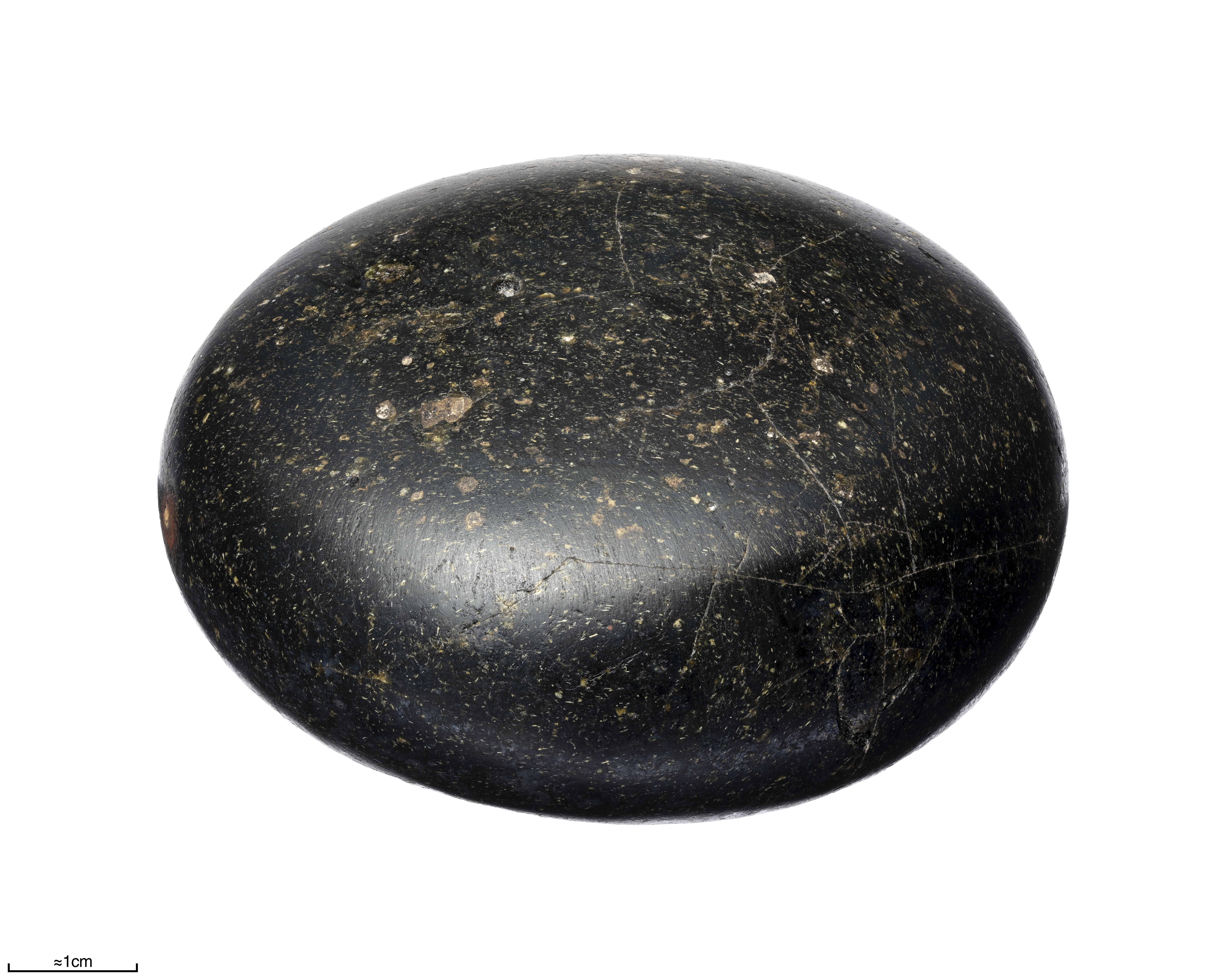 En glättsten av svart glas, hel.
