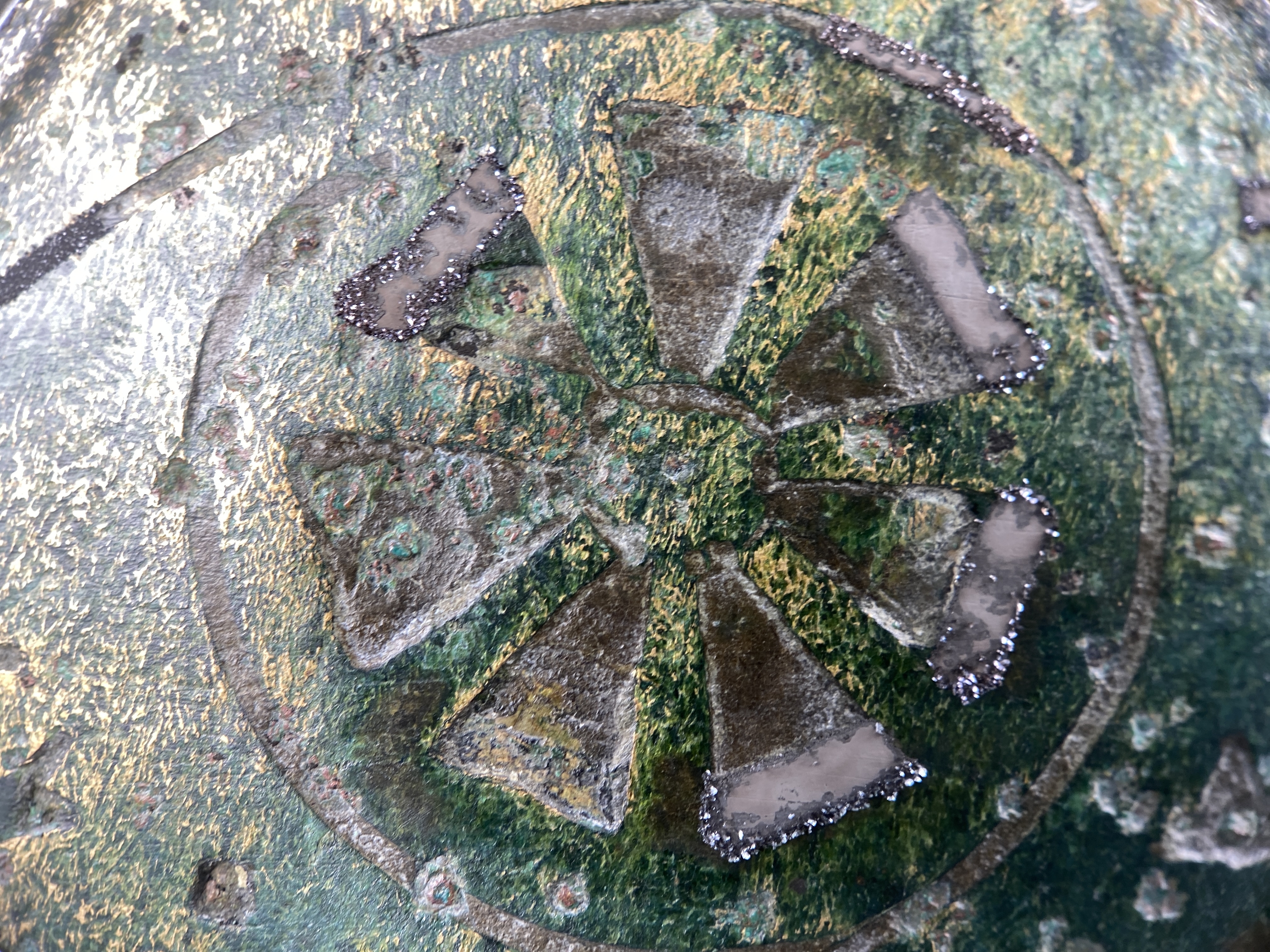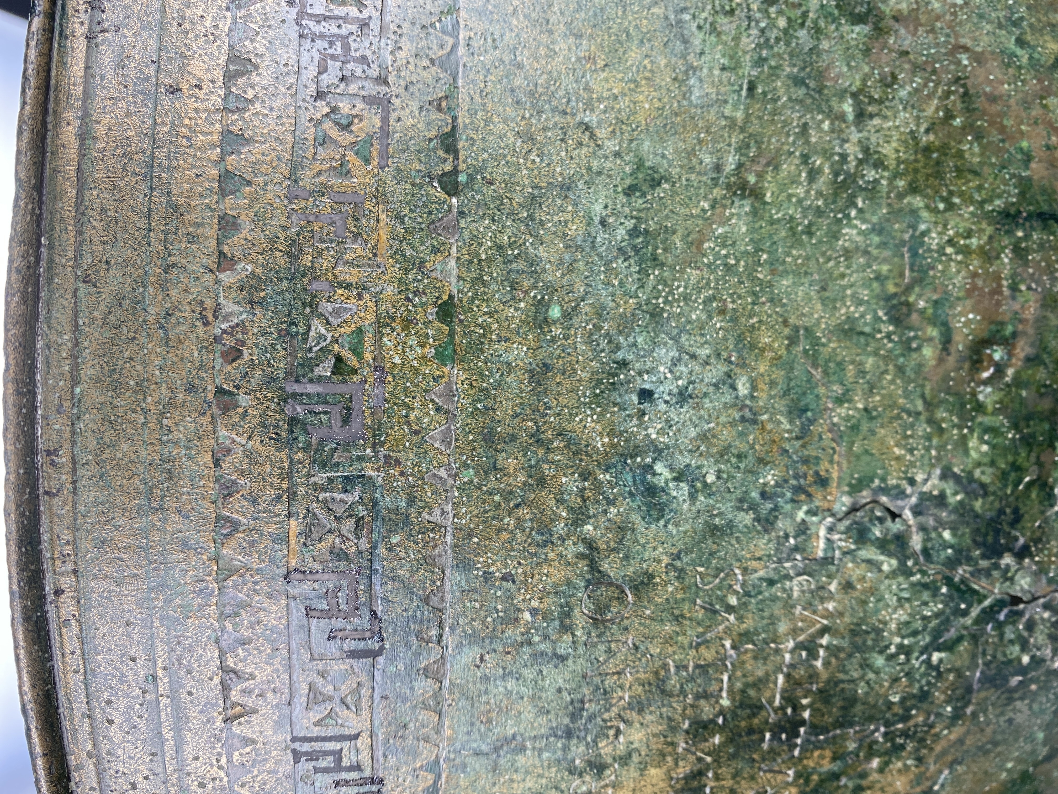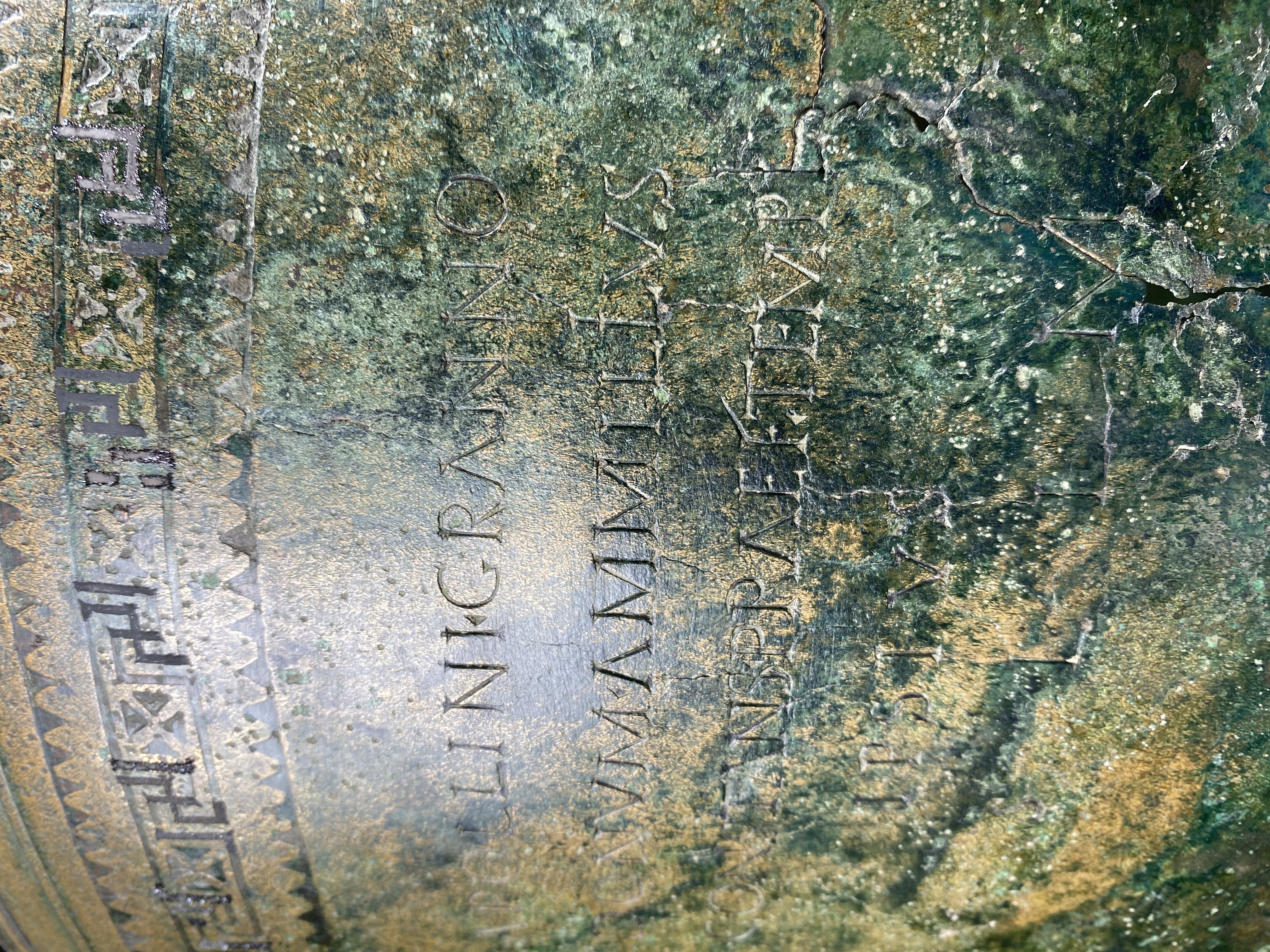 Vas av kopparlegering med inskriften APOLLINI GRANNO DONVM AMMILIVS CONSTANS PRAEF TEMPLI IPSIVS VSLLM (”Åt Apollo Grannus gav hans tempelföreståndare Ammilius Constans denna gåva”). Rik dekor med meanderband, bård med trianglar och växtornamentik. Inläggningar av annan metall/harts?. Romersk import eller plundring?