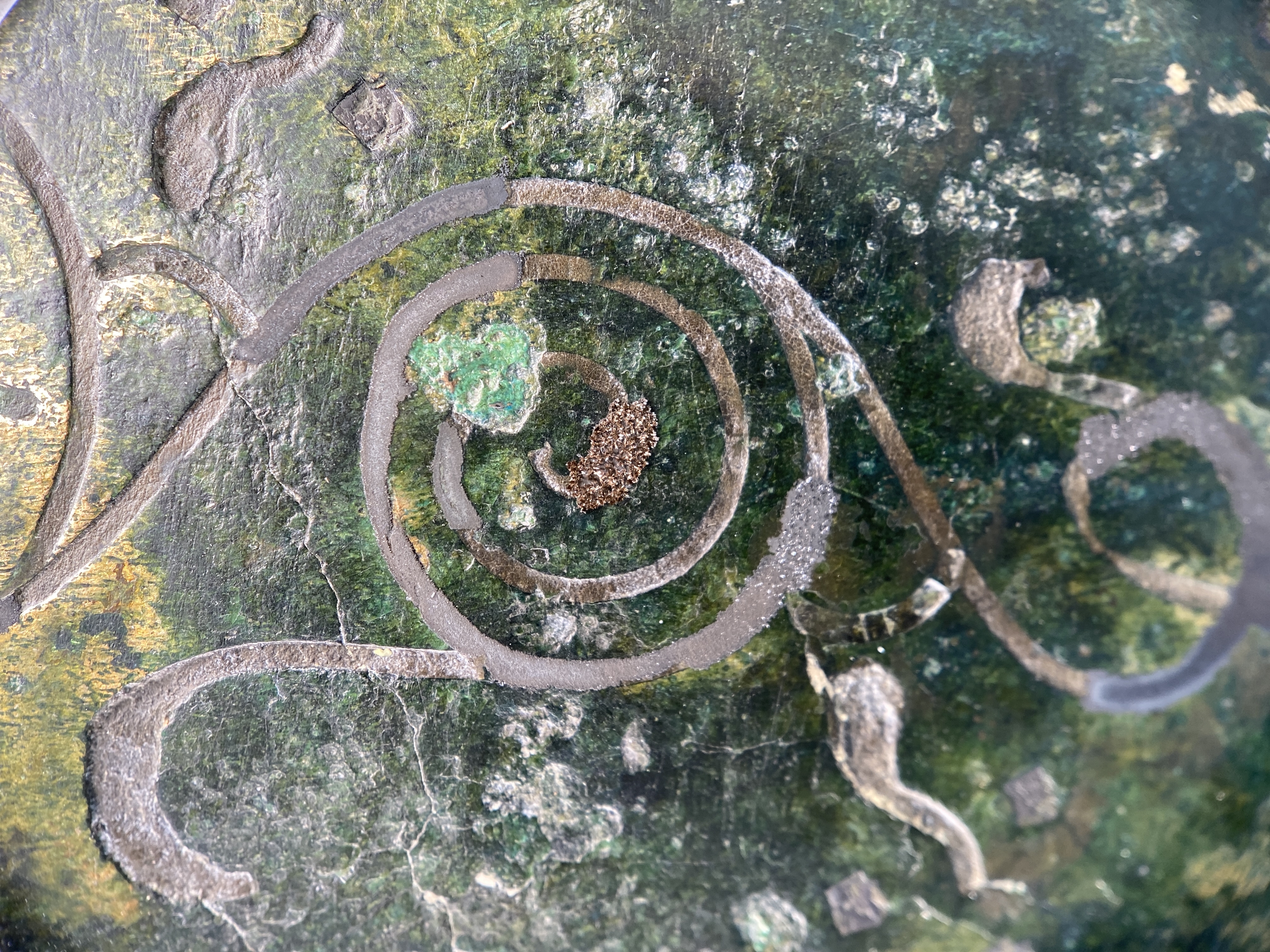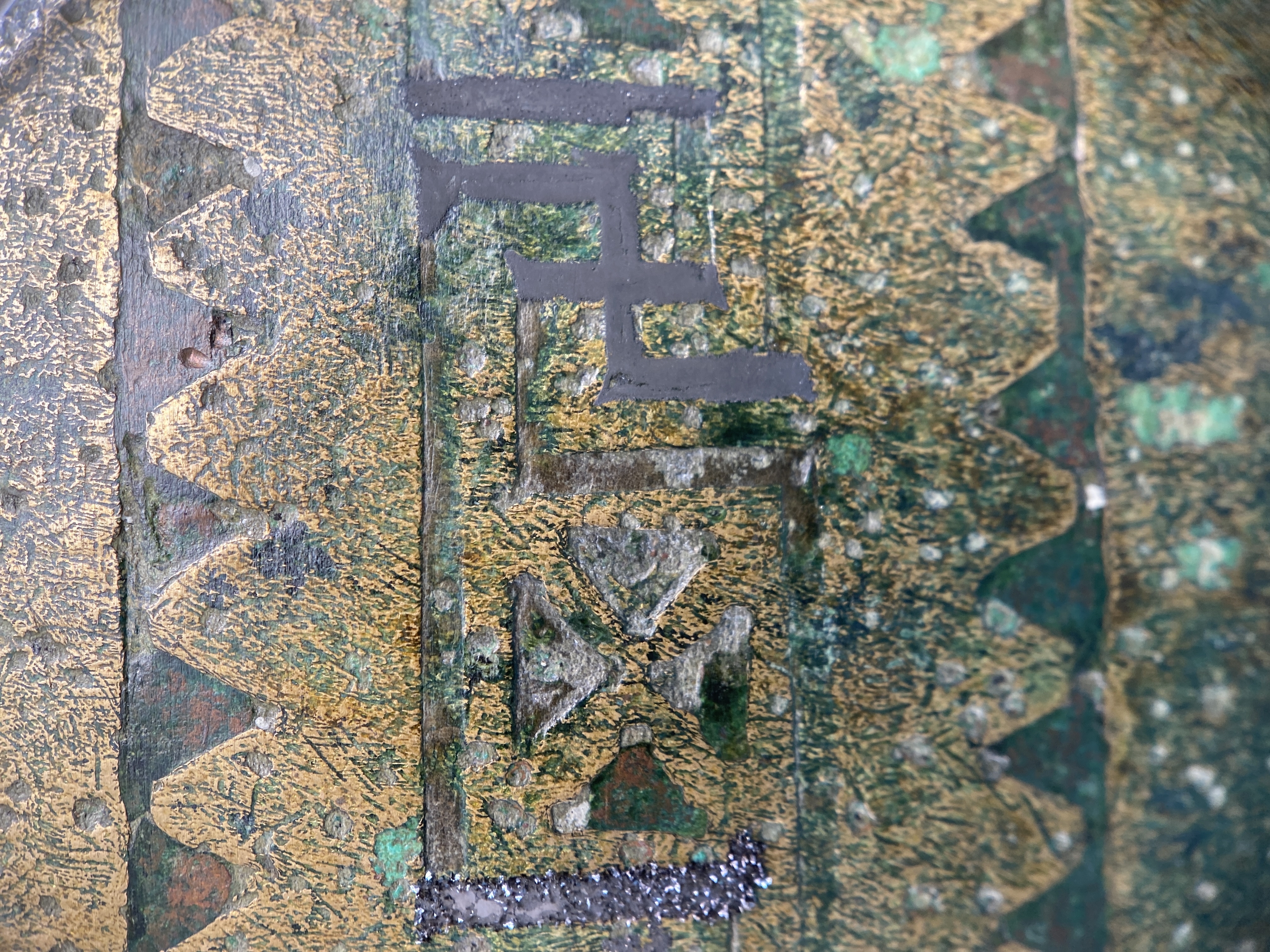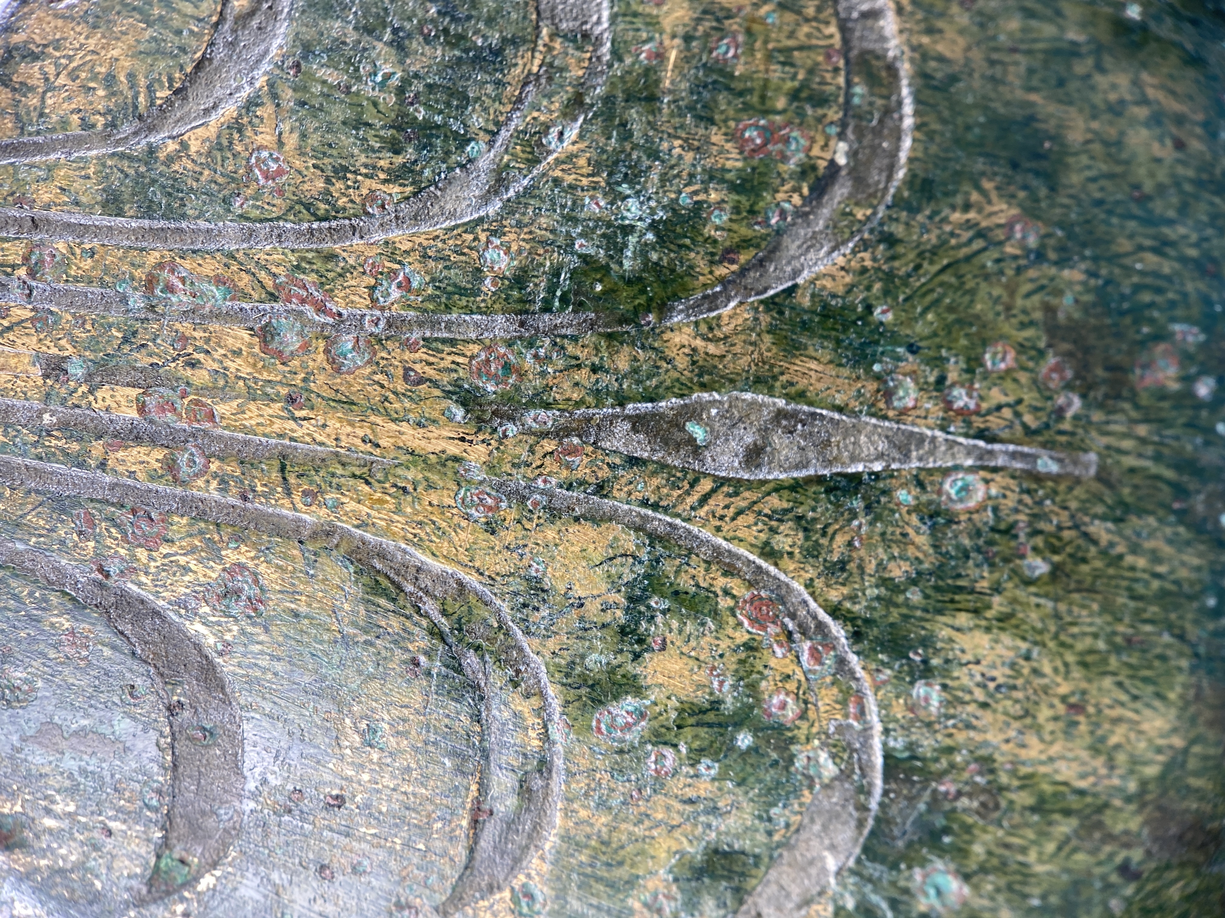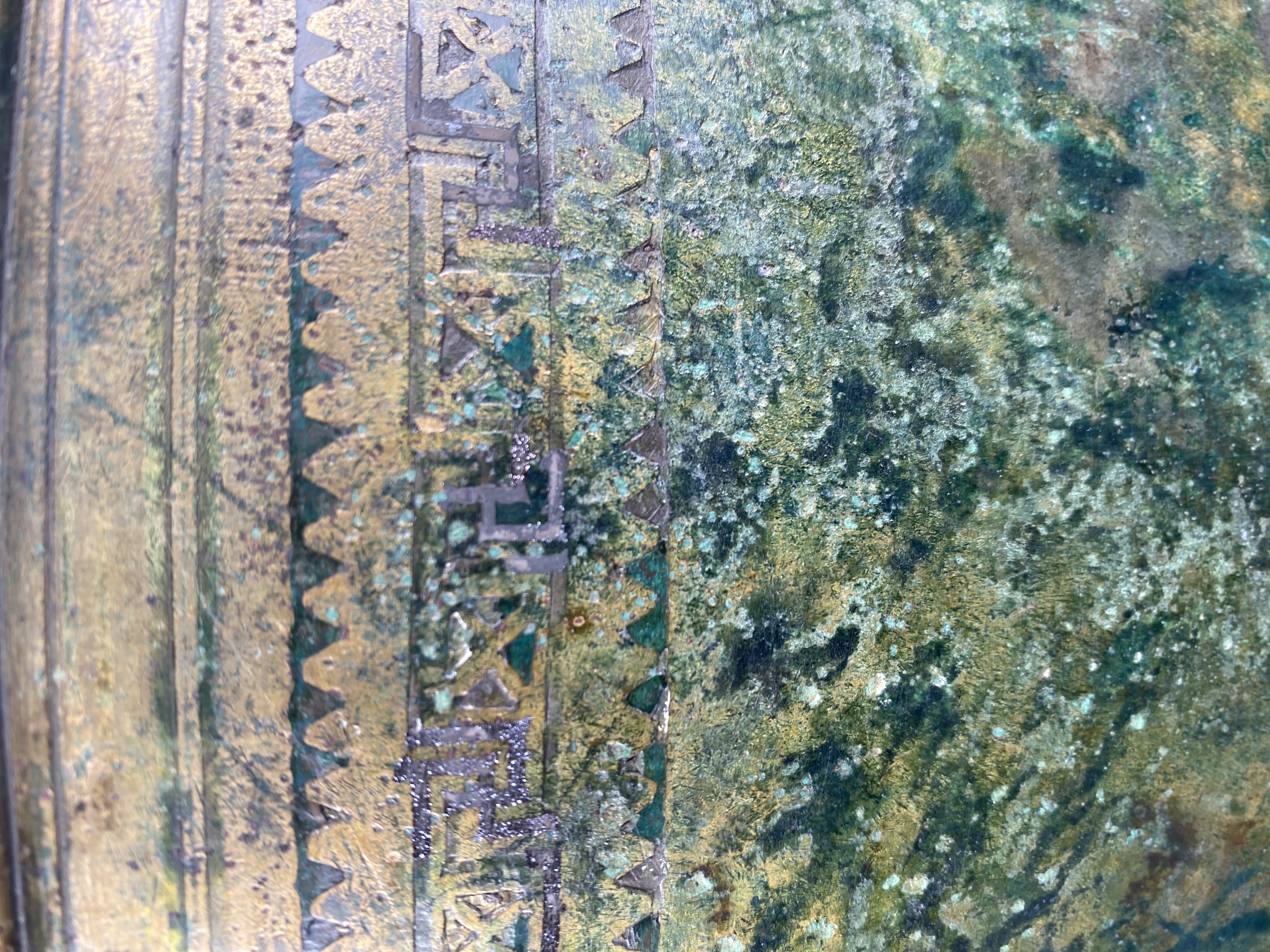 Vas av kopparlegering med inskriften APOLLINI GRANNO DONVM AMMILIVS CONSTANS PRAEF TEMPLI IPSIVS VSLLM (”Åt Apollo Grannus gav hans tempelföreståndare Ammilius Constans denna gåva”). Rik dekor med meanderband, bård med trianglar och växtornamentik. Inläggningar av annan metall/harts?. Romersk import eller plundring?