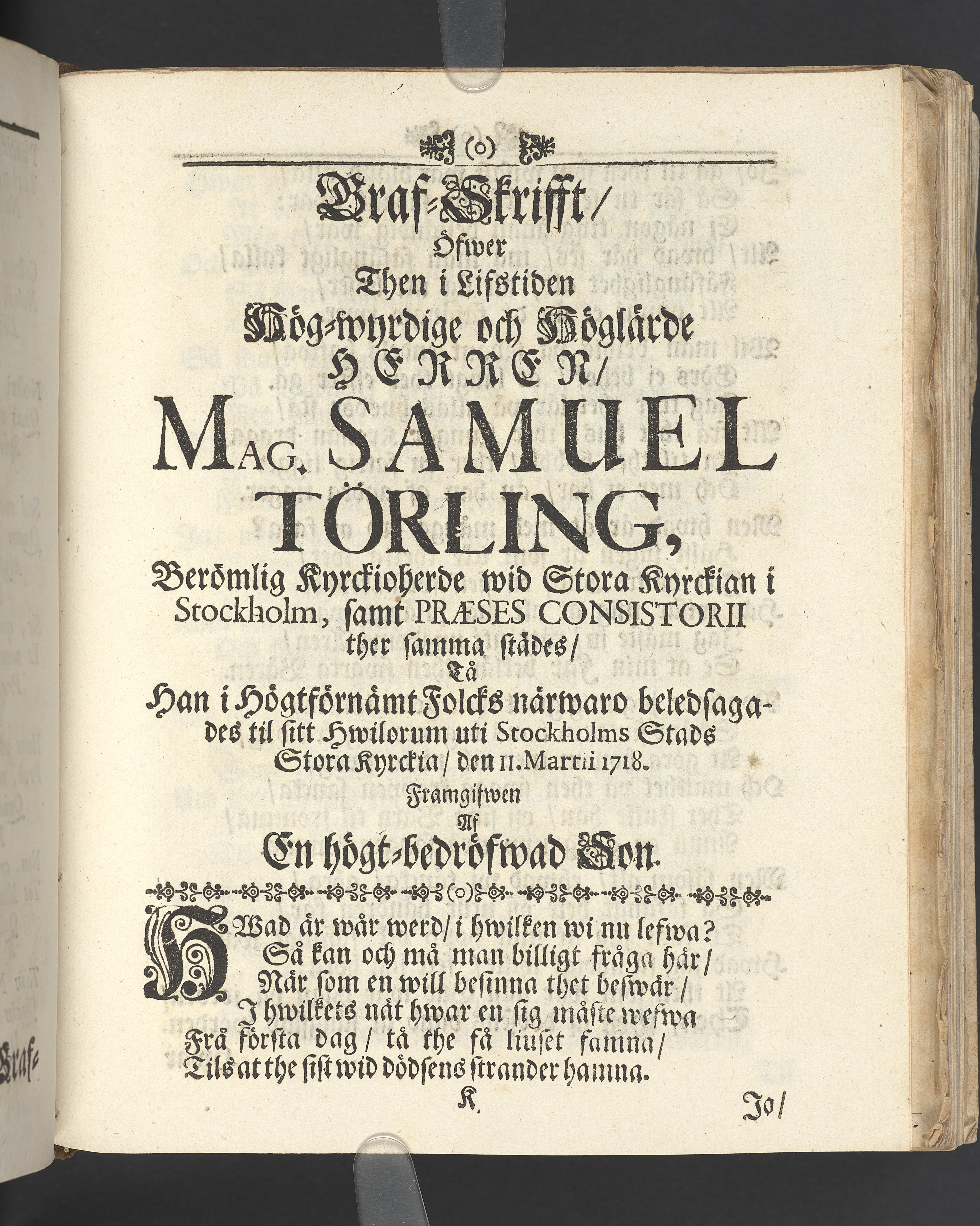 1718; (tryckår); 1700 (bandets tillverkning) |