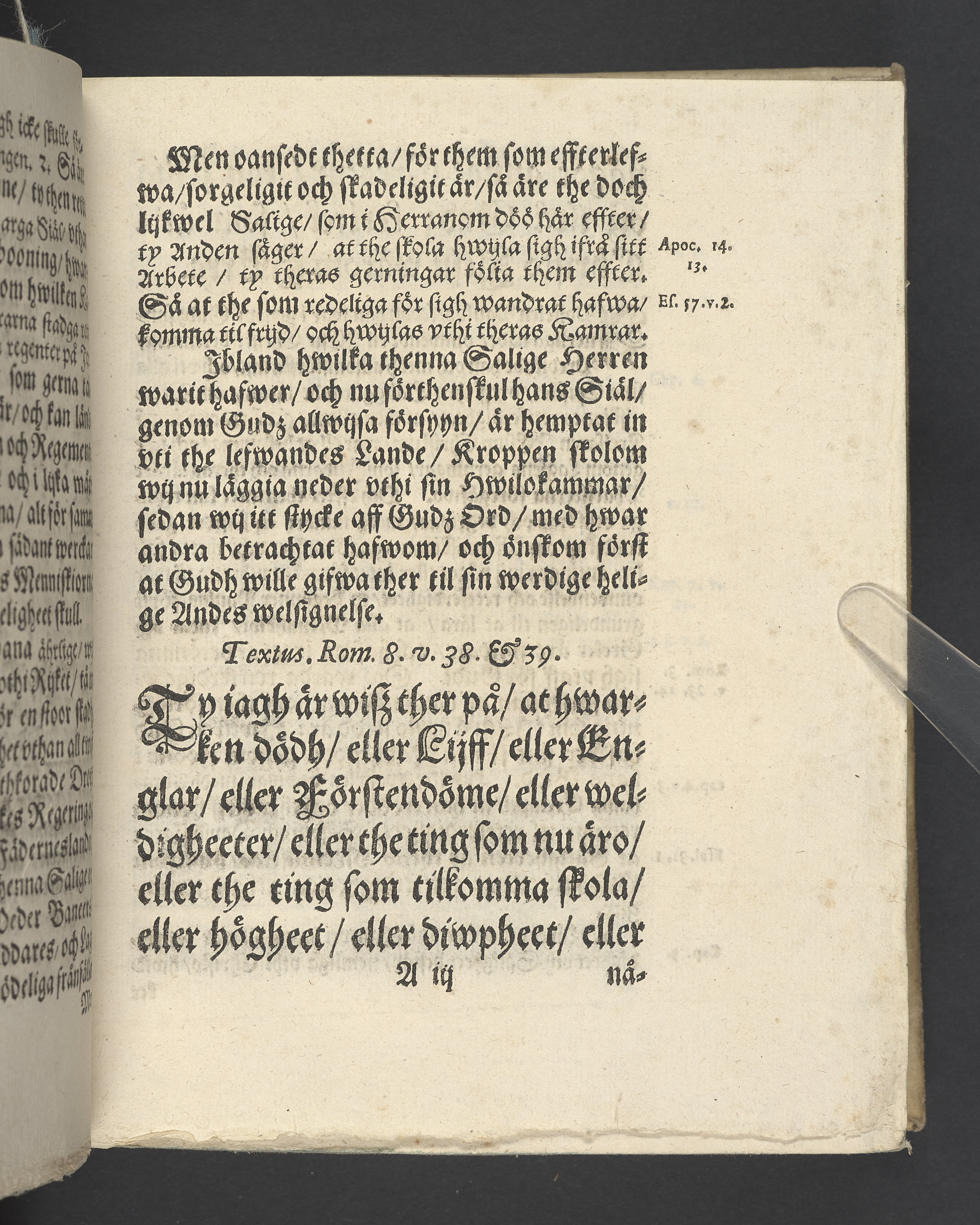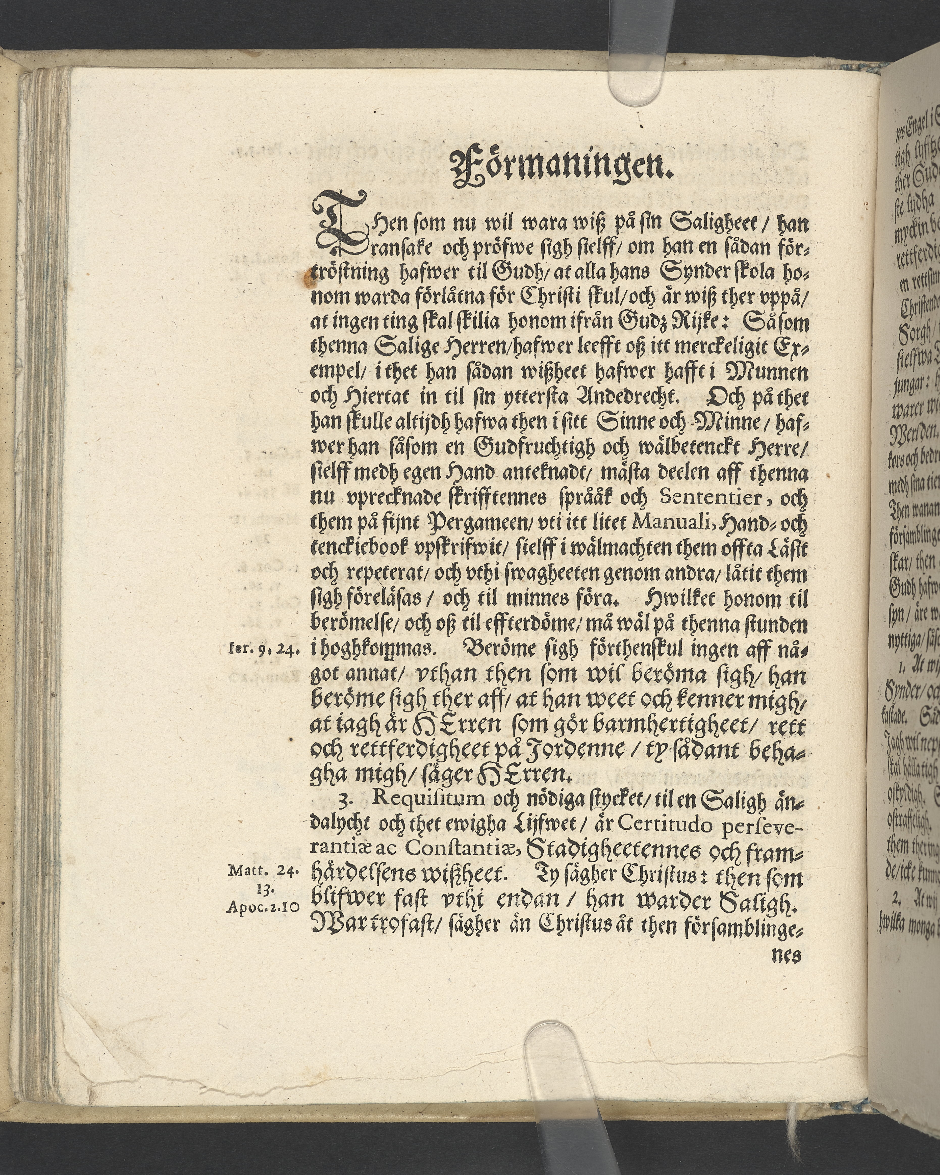 Pergamentband. Pärmfyllnad: papp. Blått snitt.