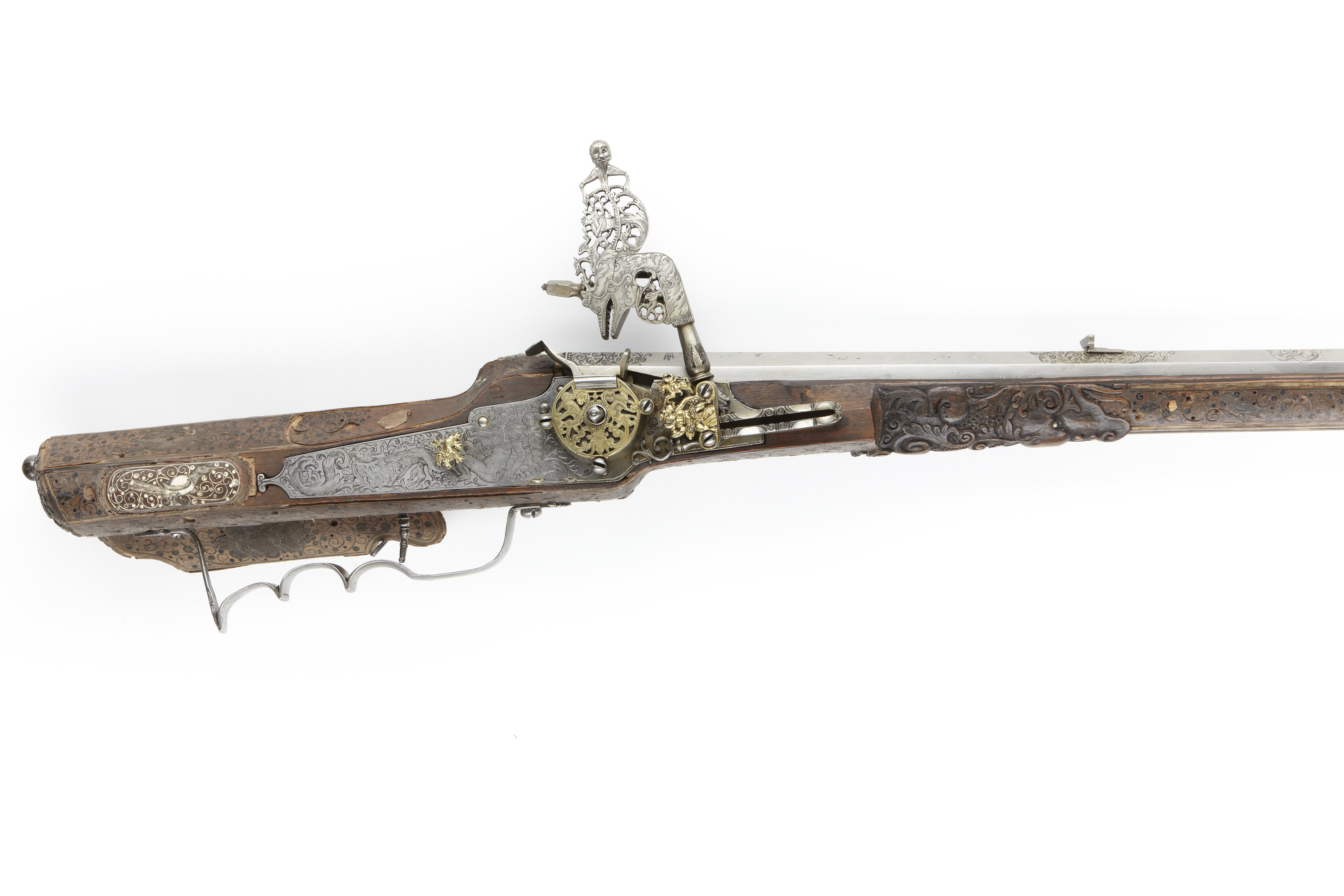 Hjullåsbössa, Polen. Har tillhört Johan Axelsson Oxenstierna 1643.