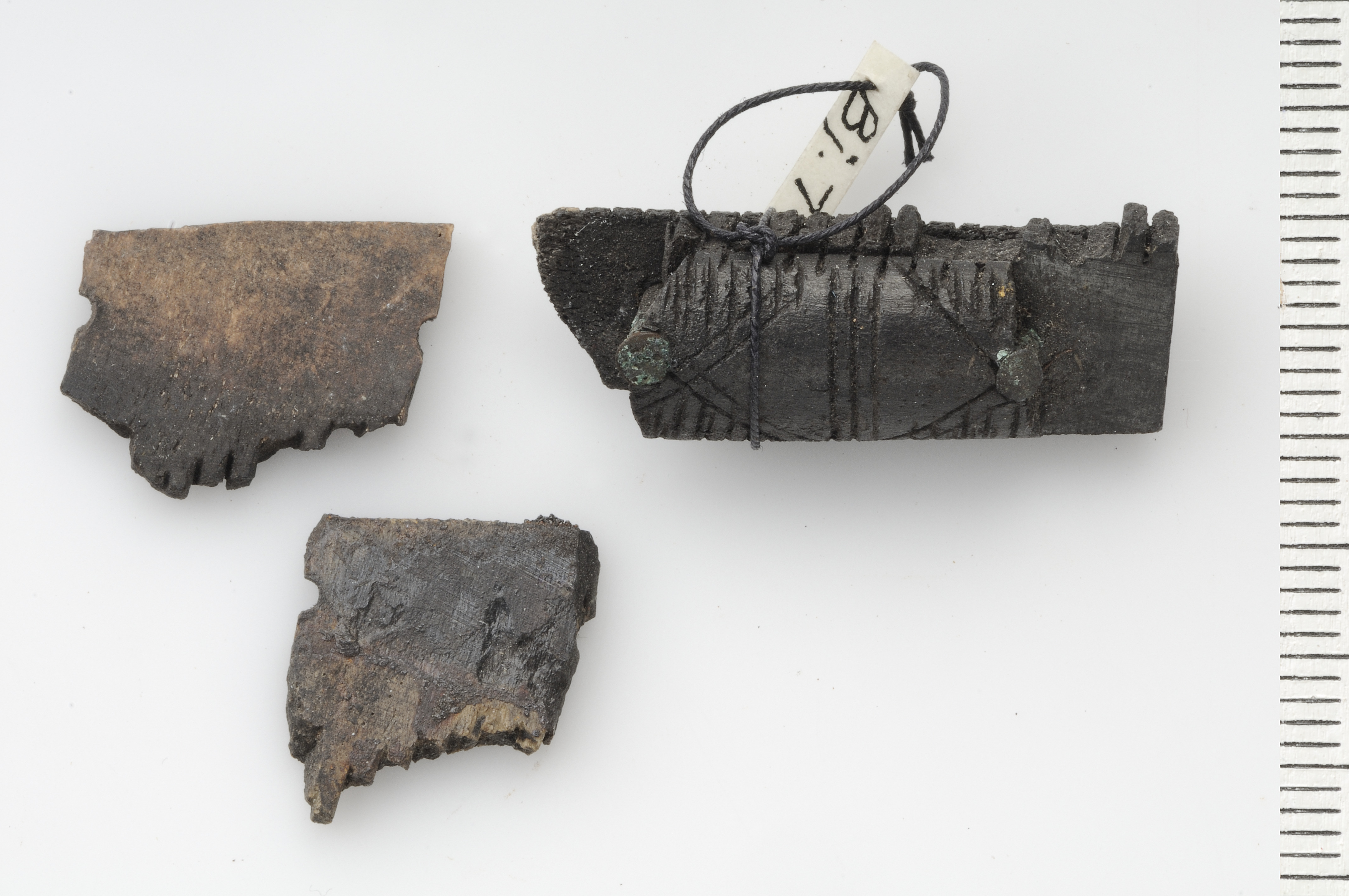 Delar av enkelkam sammanhållen av bronsnitar.