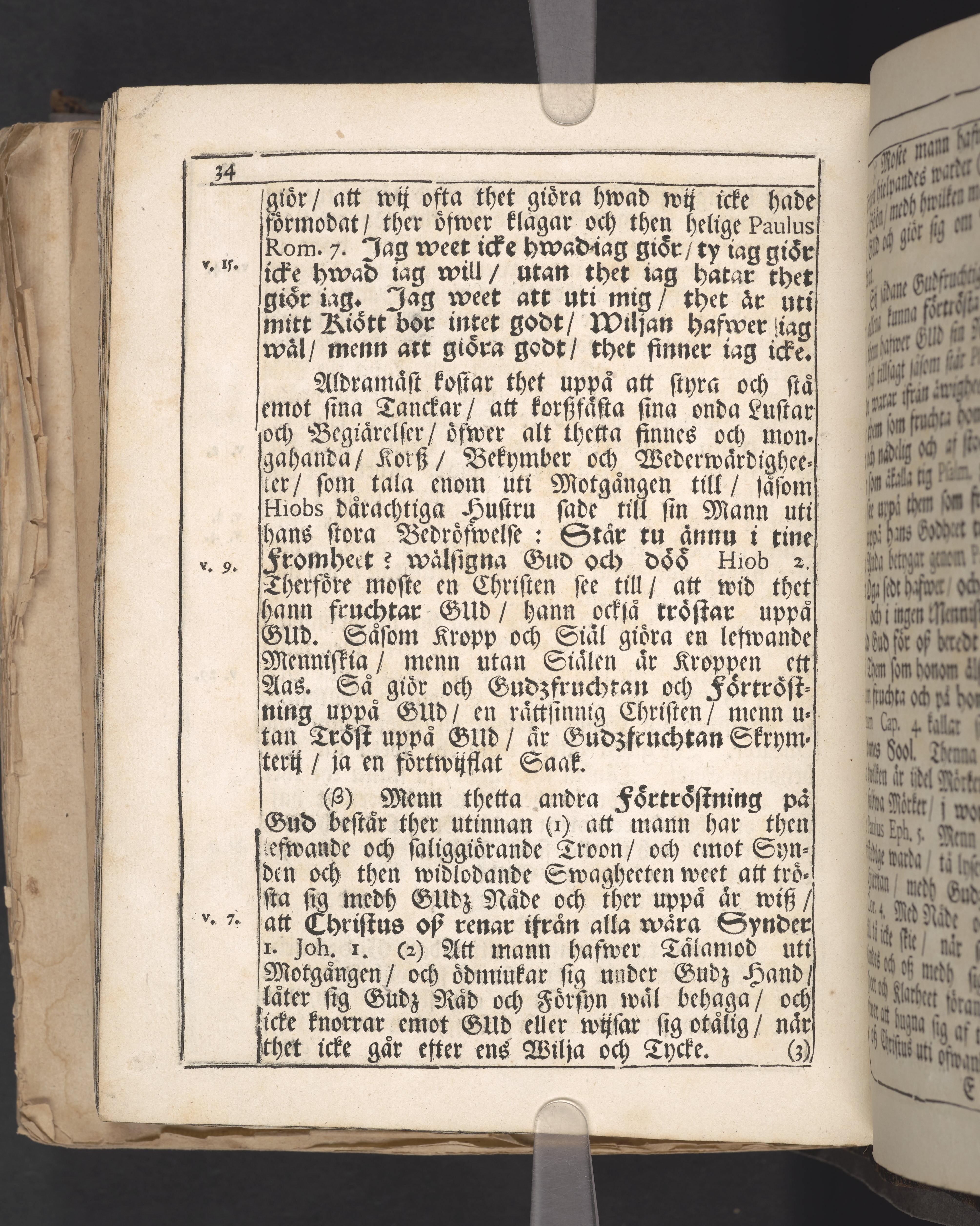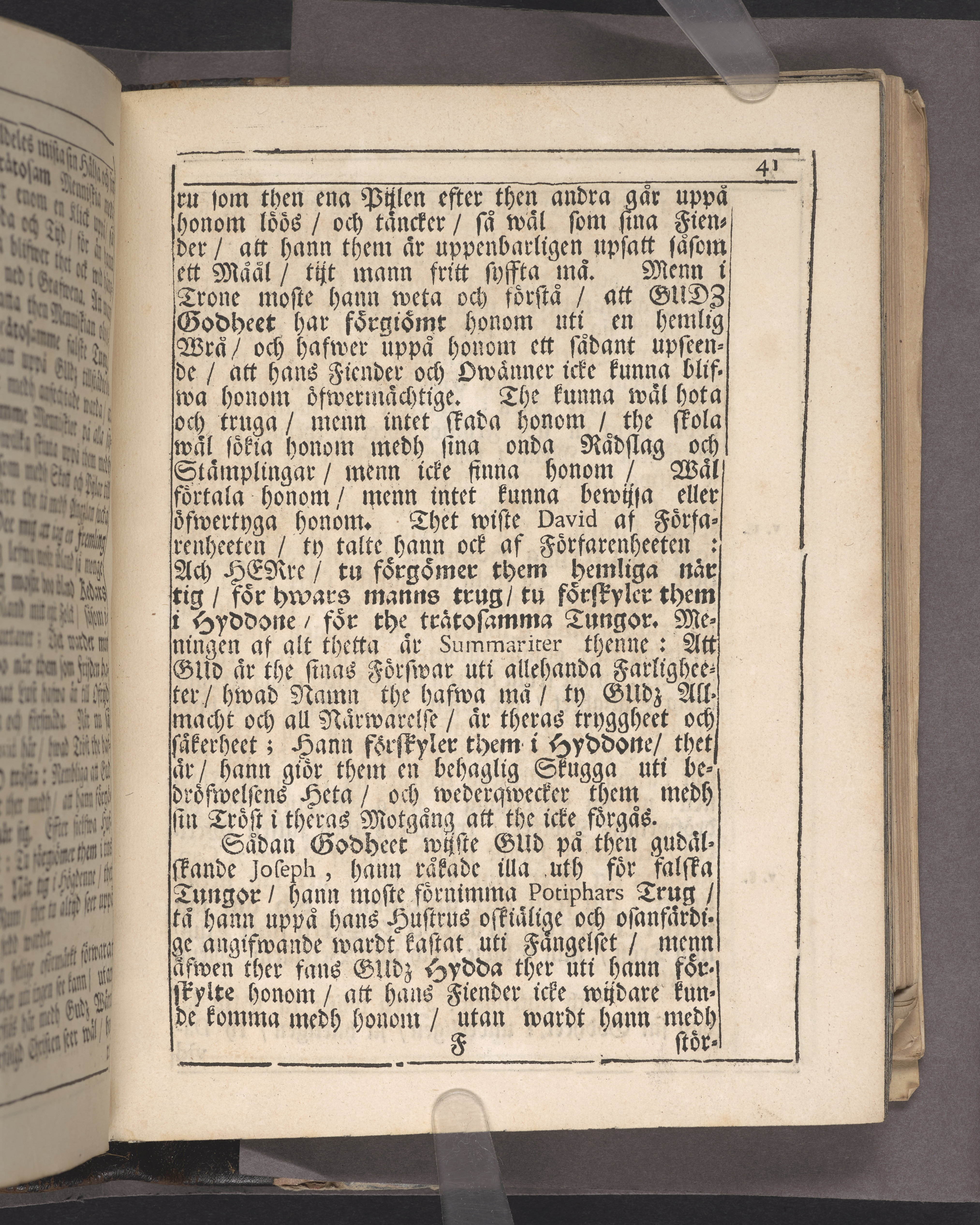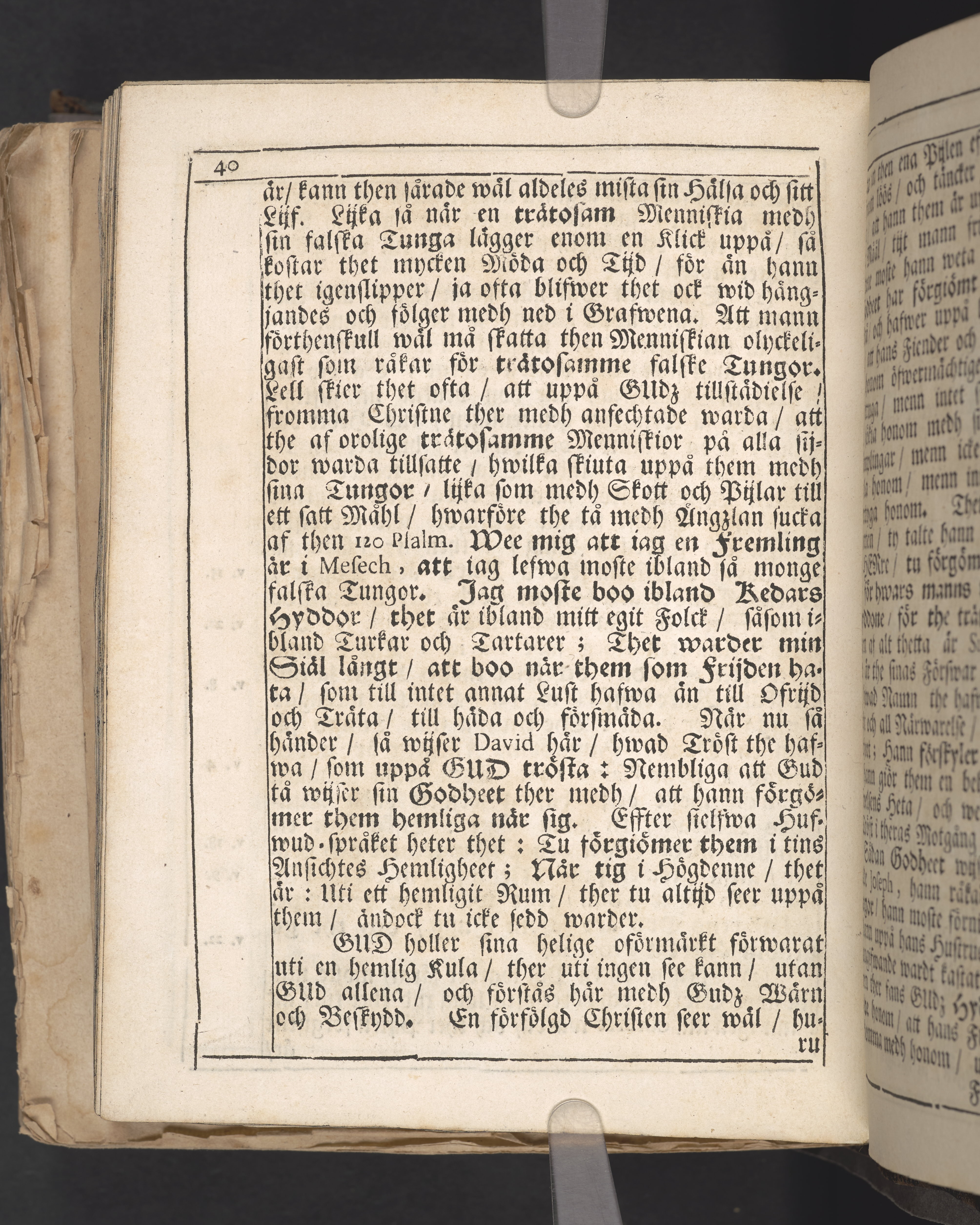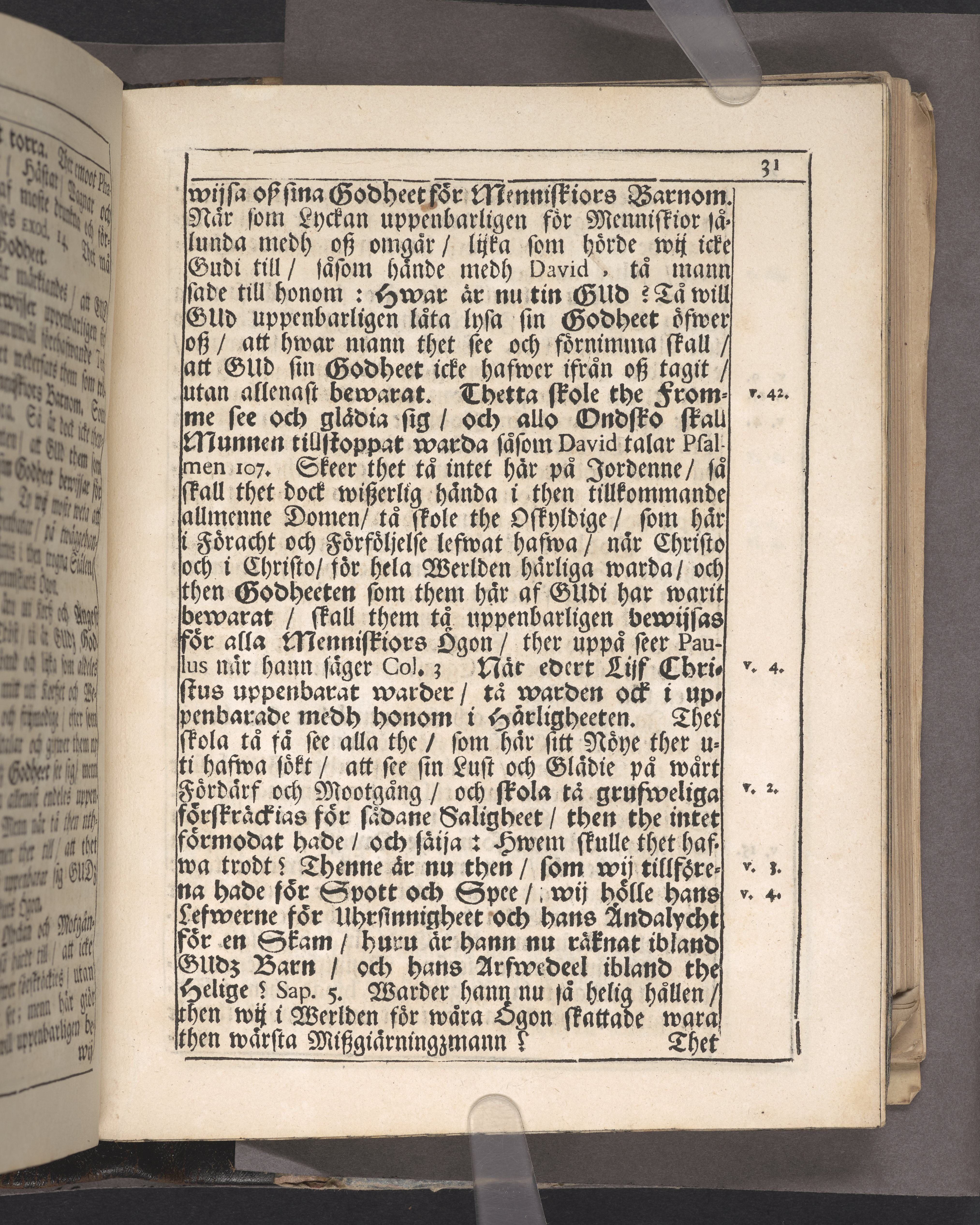 Del av band m. pärmar av marmorerat papper, rygg och hörn av getskinn. Pärmfyllnad: papp.