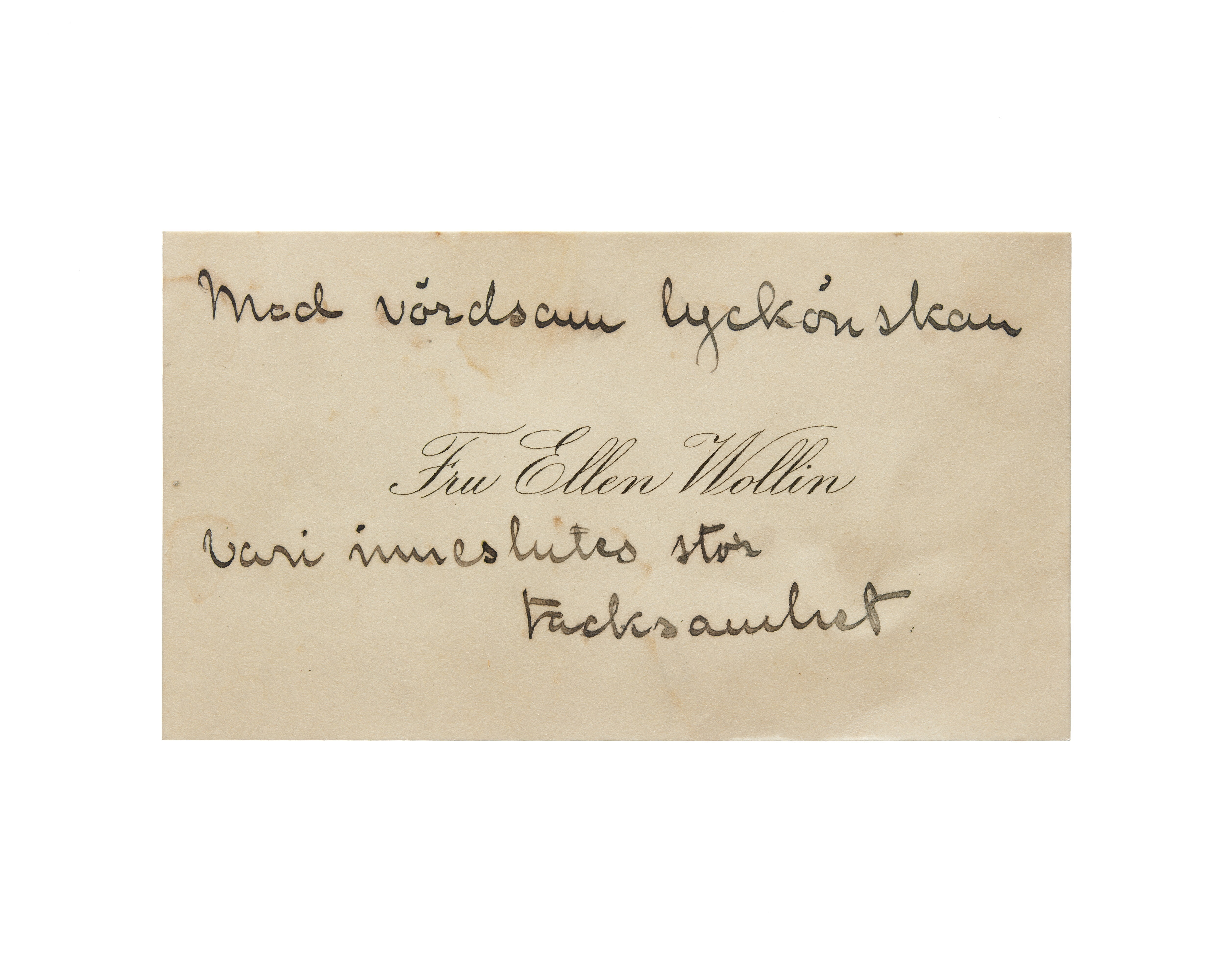 Visitkort från Fru Ellen Wollin, f. Nyström