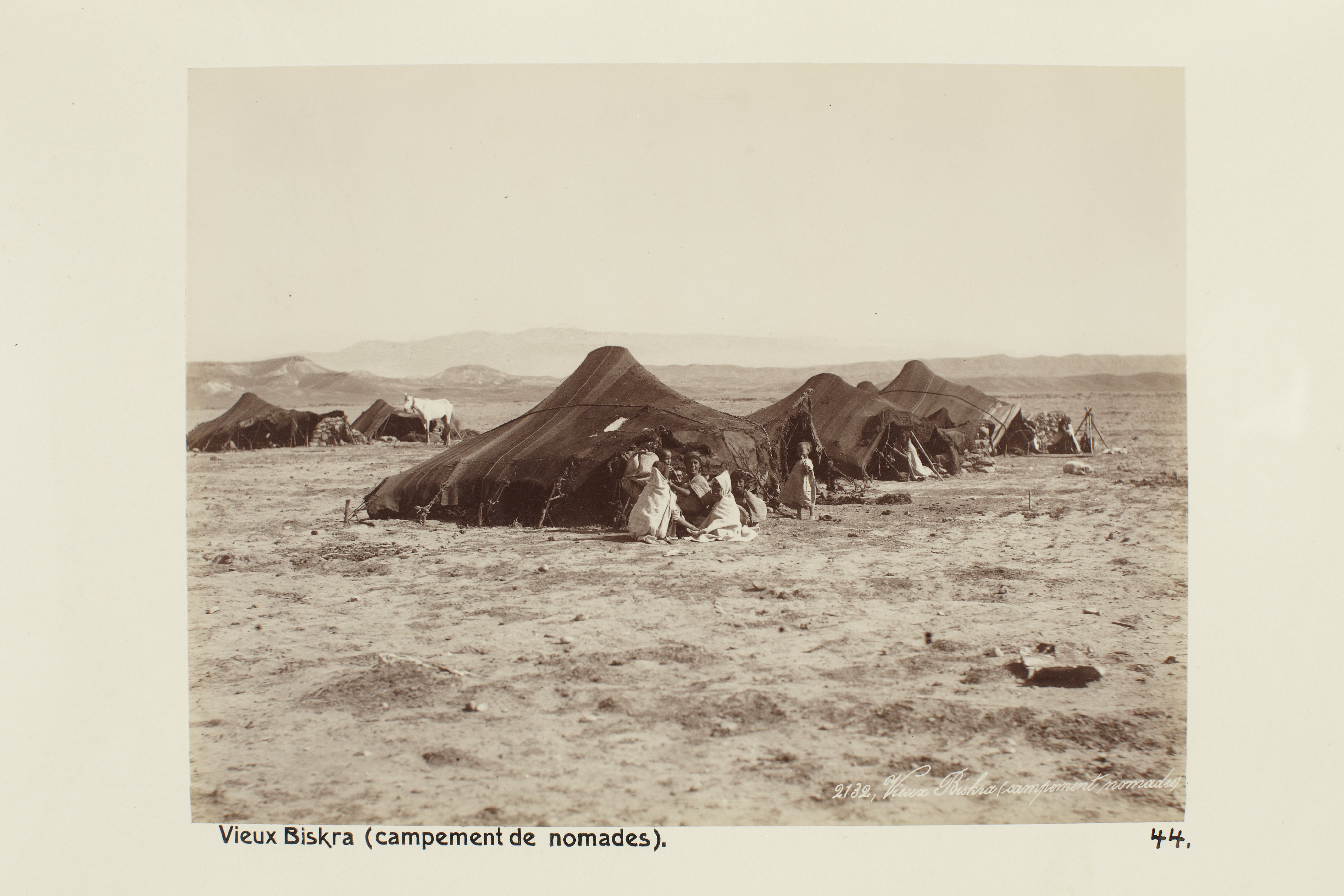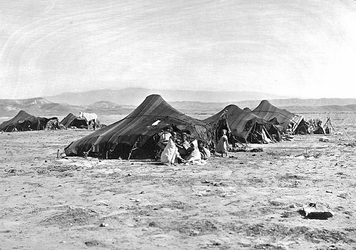 Gamla Biskra, Algeriet. Nomadläger. Foto från resa genom Algeriet och Tunisien samt åter över Schweiz, 11 februari - 19 maj 1889. Samtliga foton i gruppen LXVI:F. är inköpta av Wilhelmina von Hallwyl i Alger, Biskra, Tunis, Constantine, Oran och Blidah vid hennes vistelse i nämnda städer tillsammans med sin make, Walther von Hallwyl, sin mor, Johanna Kempe, f. Wallis, dottern Irma samt fröknarna Caroline Pflaum och Ida Uhse. Uppgifterna kommer från fröken Ida Uhses reseanteckningar.