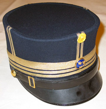 Mössa av mörkblått kläde, hakrem av svart läder med spänne av guld. Små knappar, d: 15 mm, för generalstaben. Blå, emaljerad knapp med tre kronor samt gul silkeskokard. Guldgaloner för överstelöjtnant i generalstaben. Foder av svart siden. I kullen stämplat i guld "M.E.A.", samt under öppen krona "G. A.". Svettrem av gulbrunt läder. I övrigt modellenlig. Mössan sydd hos Militärekiperingsaktiebolaget. L: 230 mm, b: 195 mm, vikt: 250 g.