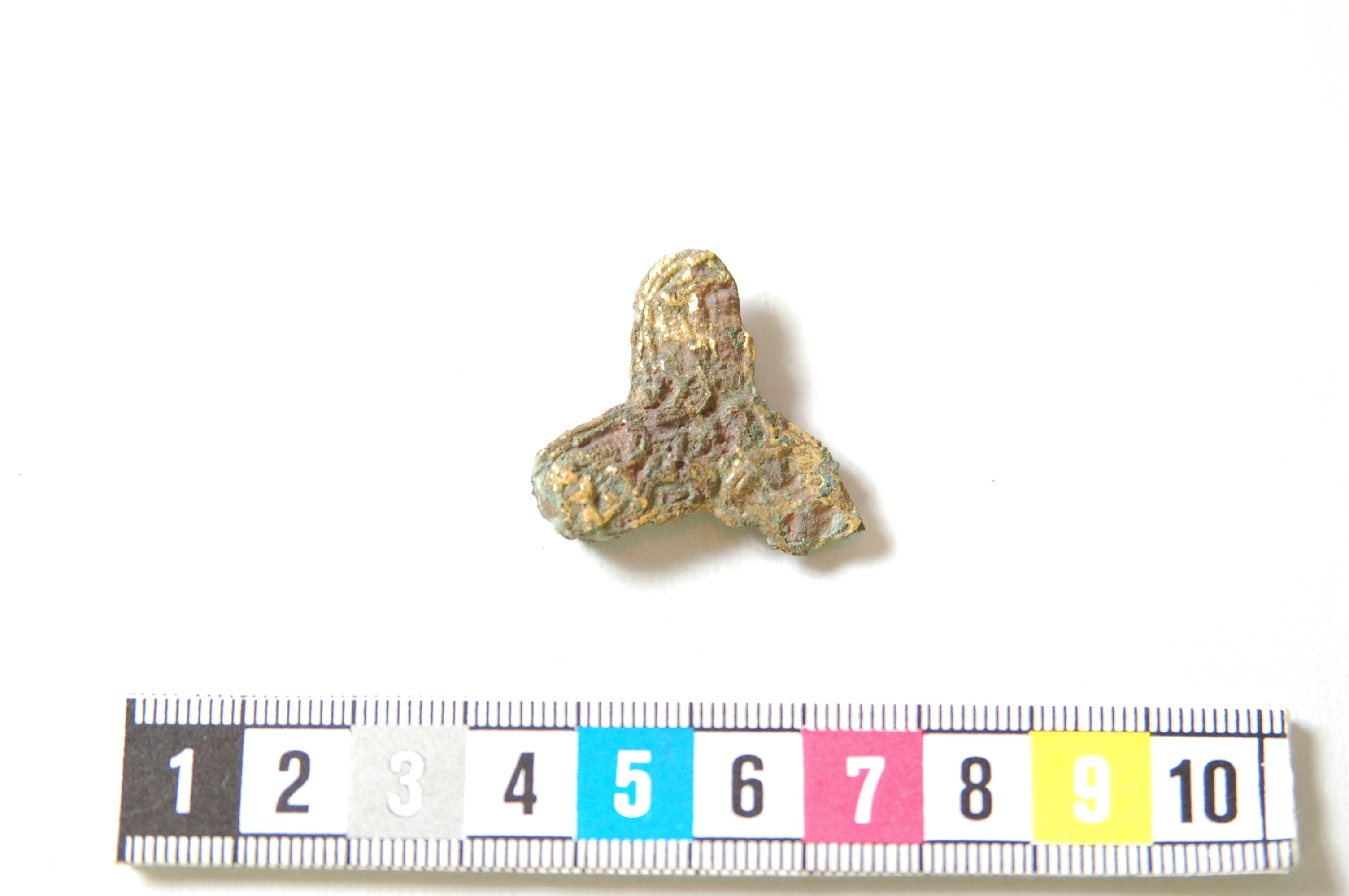 Mycket litet treflikigt spänne med rester av järnnål.