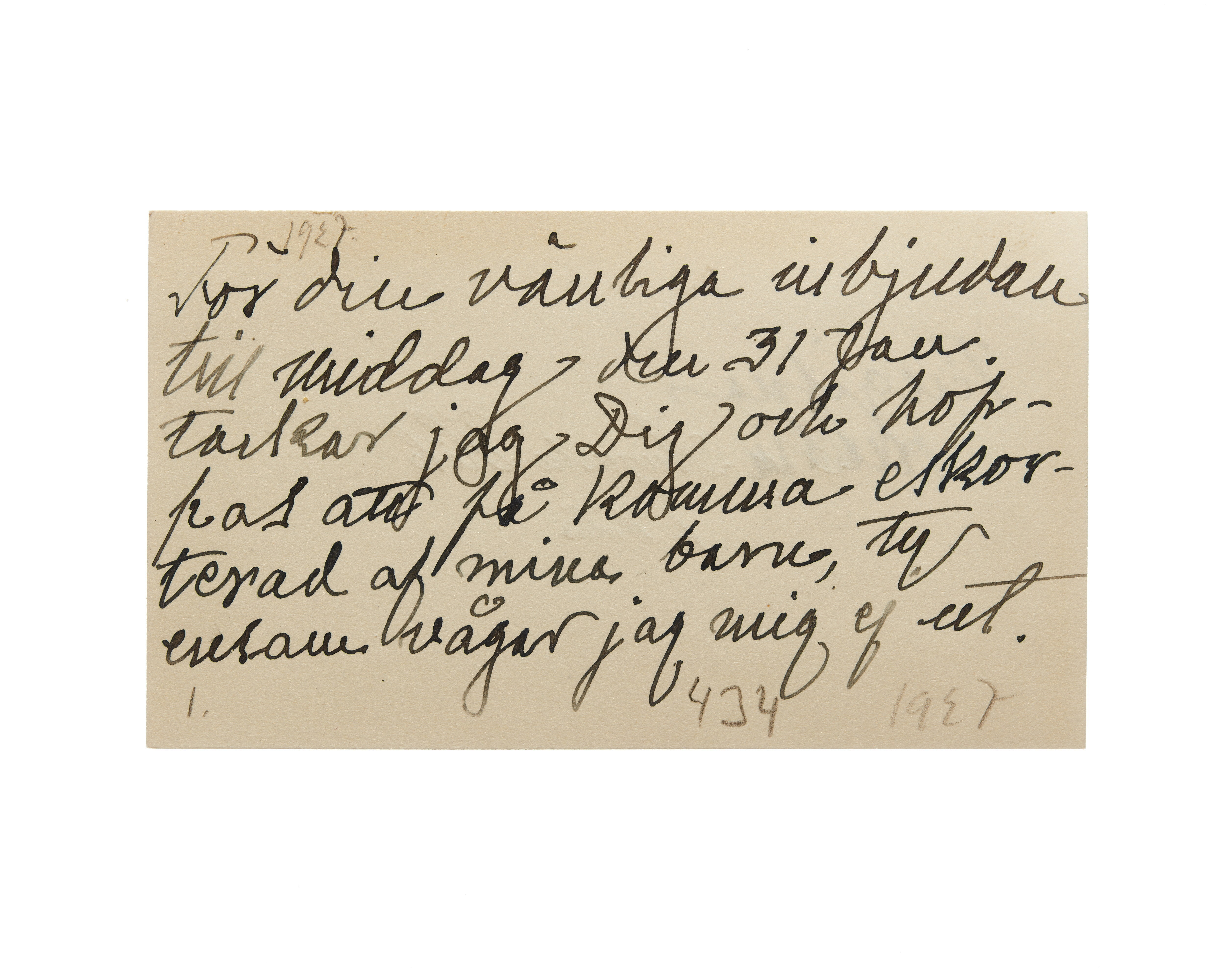 Ett visitkort från Augusta Hök, f. Wallis, daterat 1927. Handskrift "....".