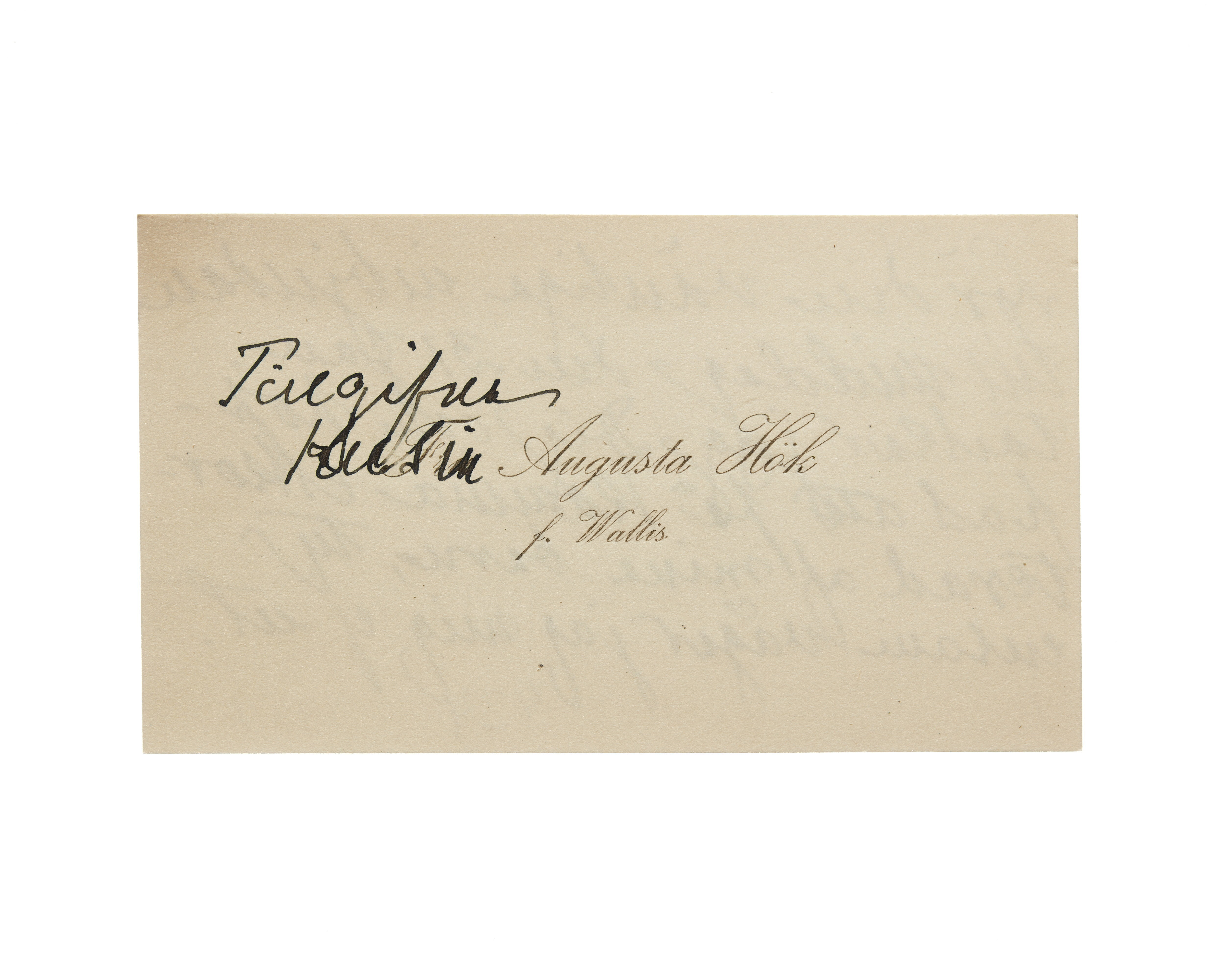 Visitkort från Augusta Hök, f. Wallis.