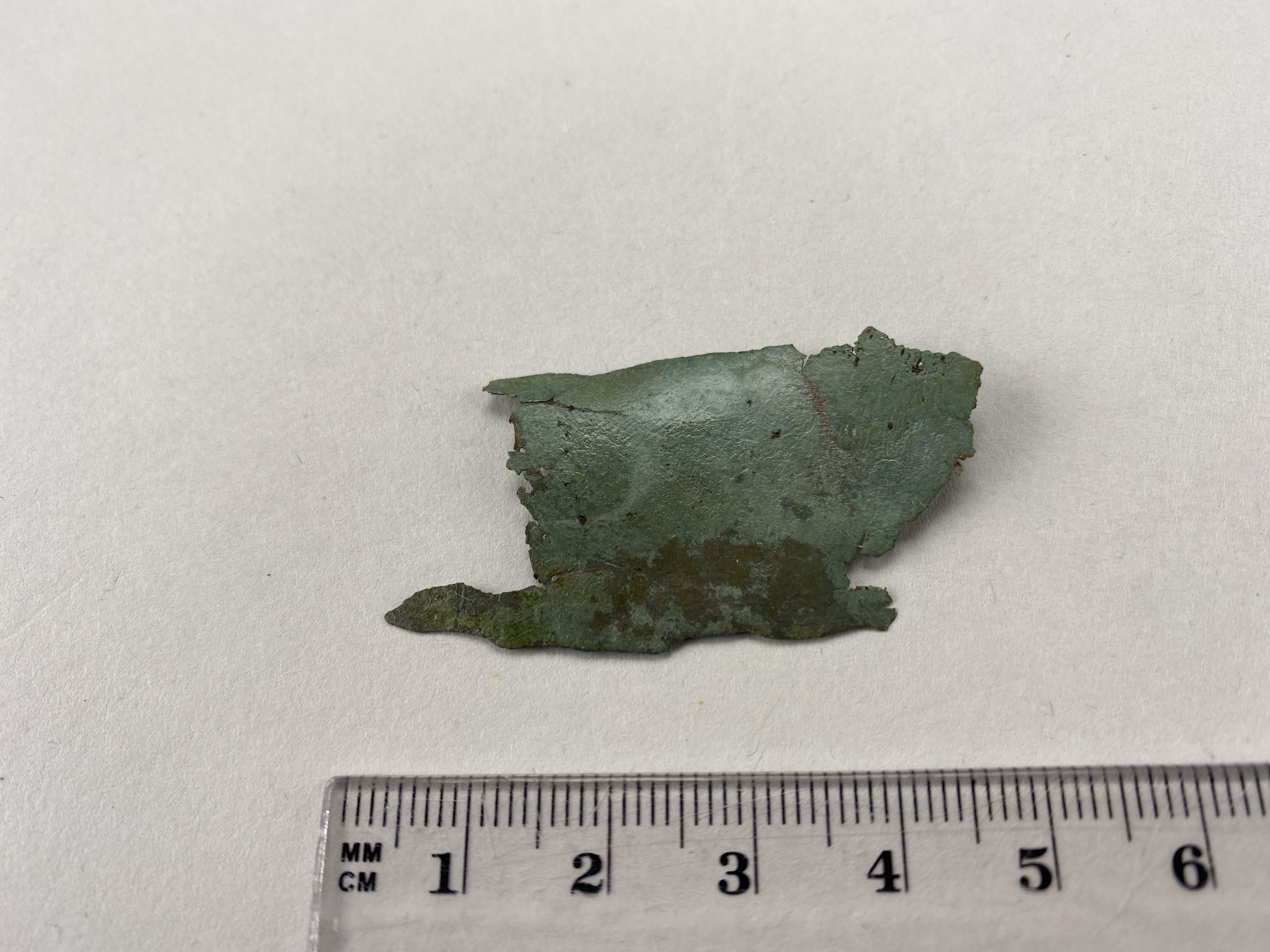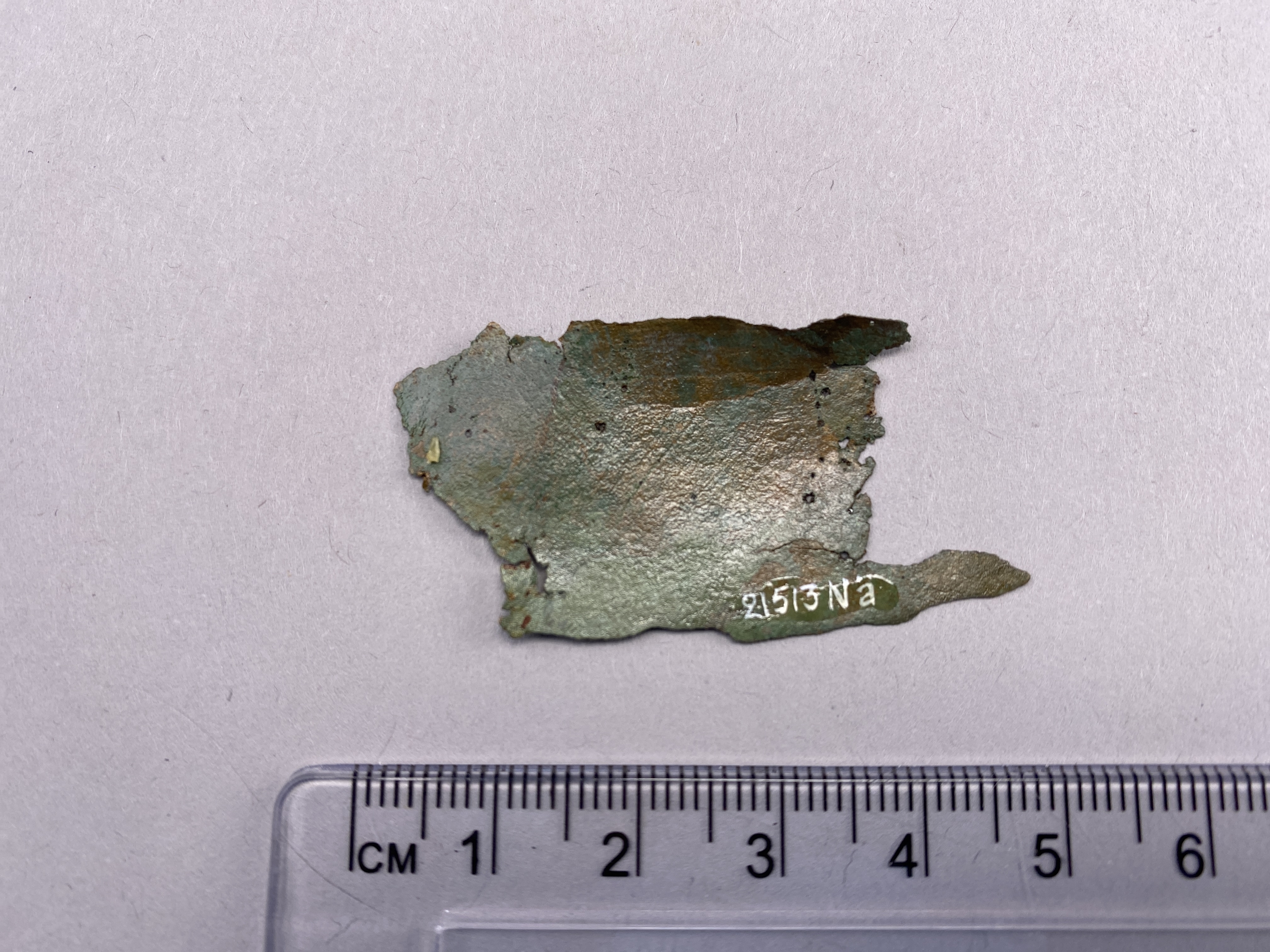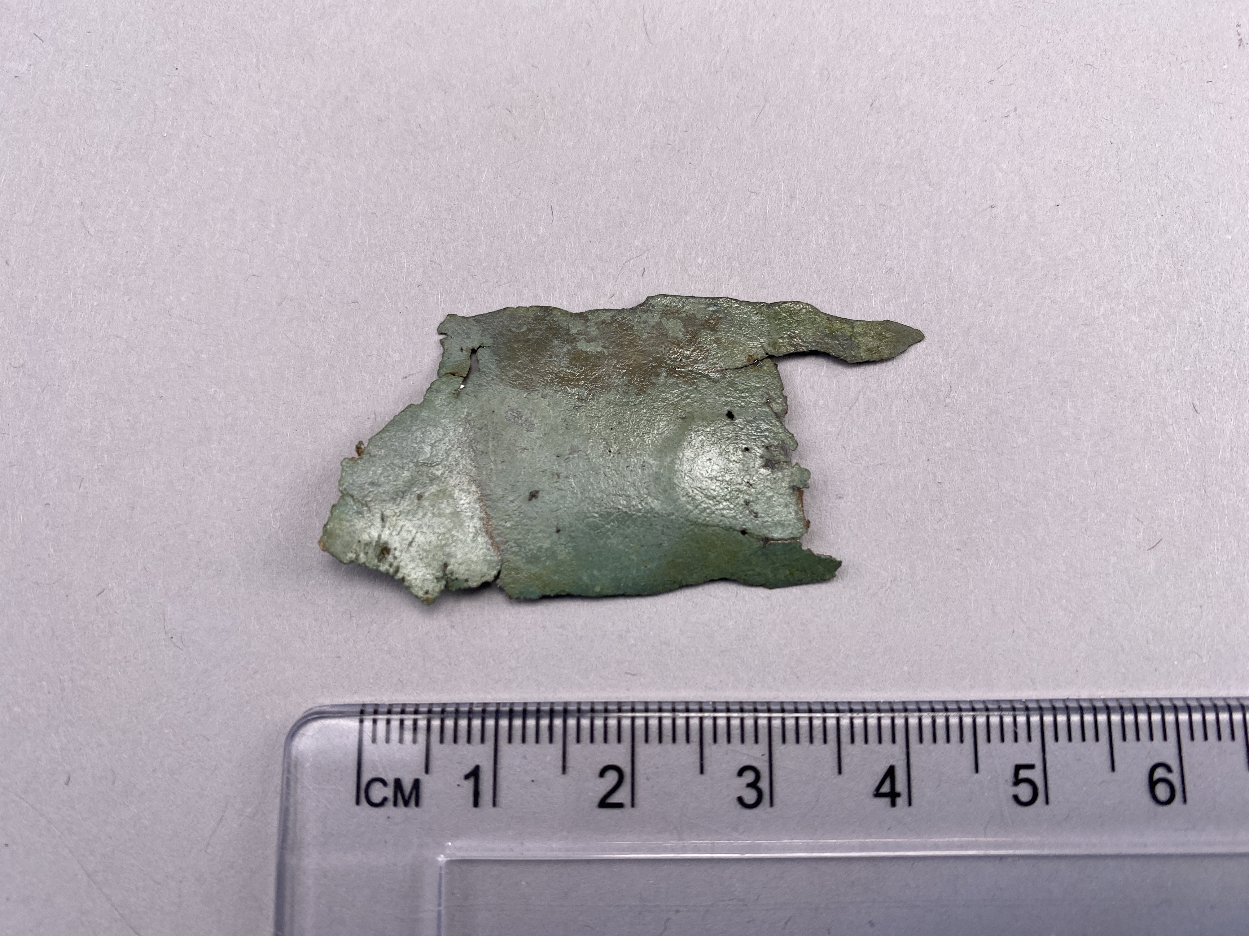 plåtfragment till kärl, sannolikt kitteln.